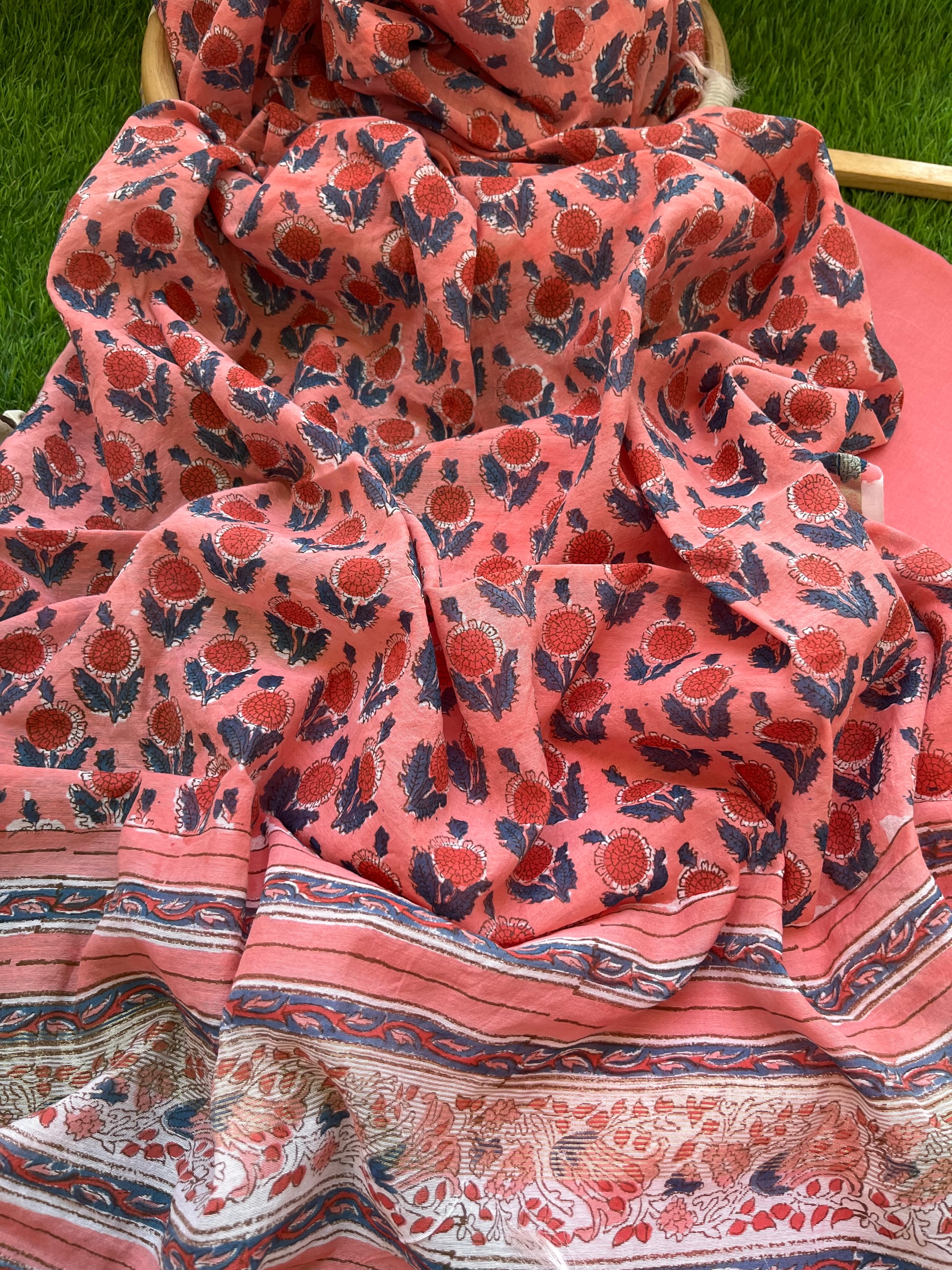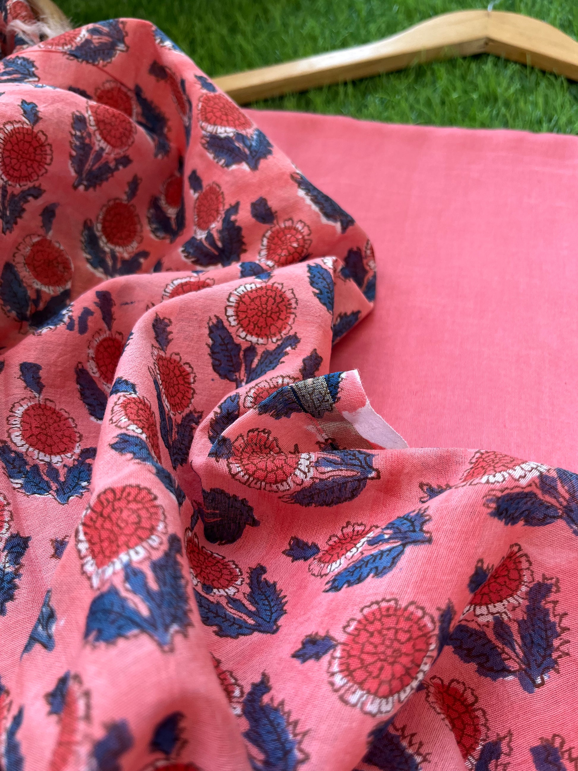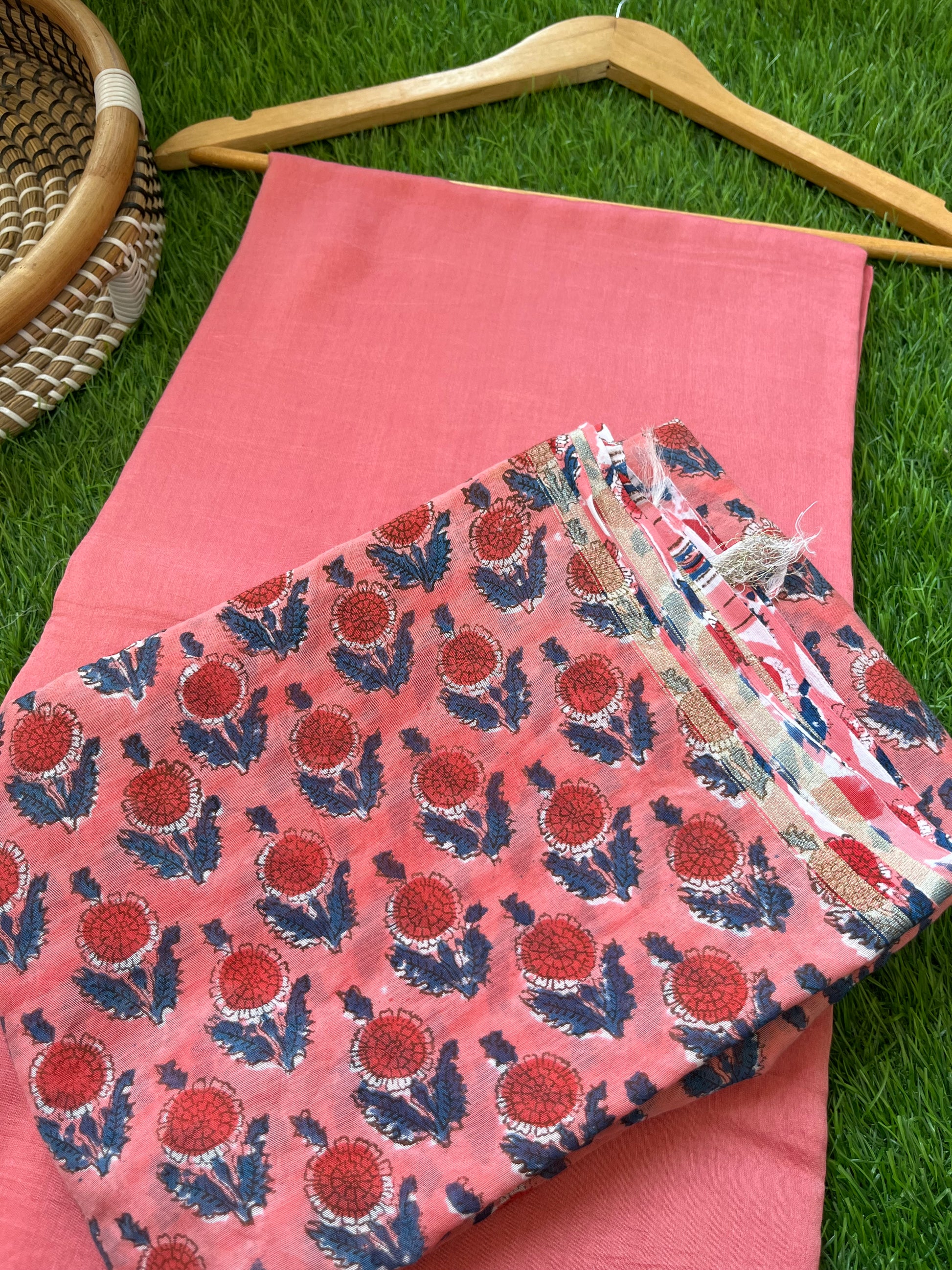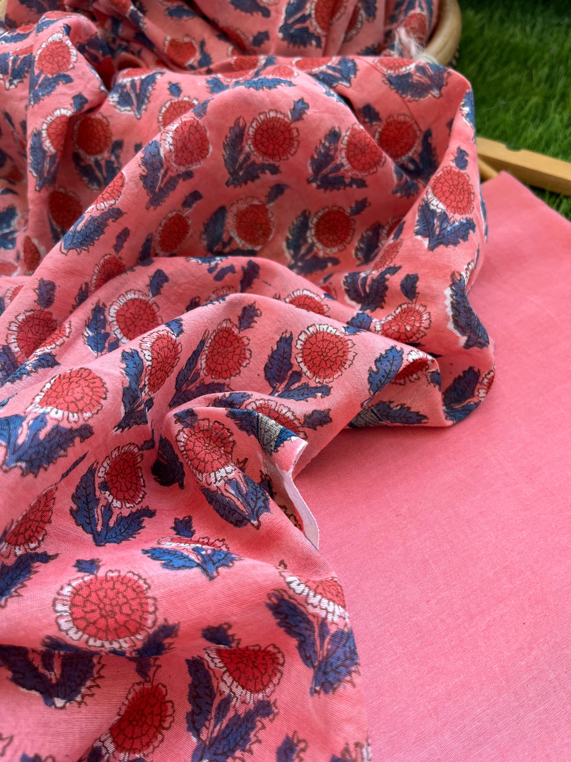 “Chanderi plain kurta fabric with a chanderi block print dupatta