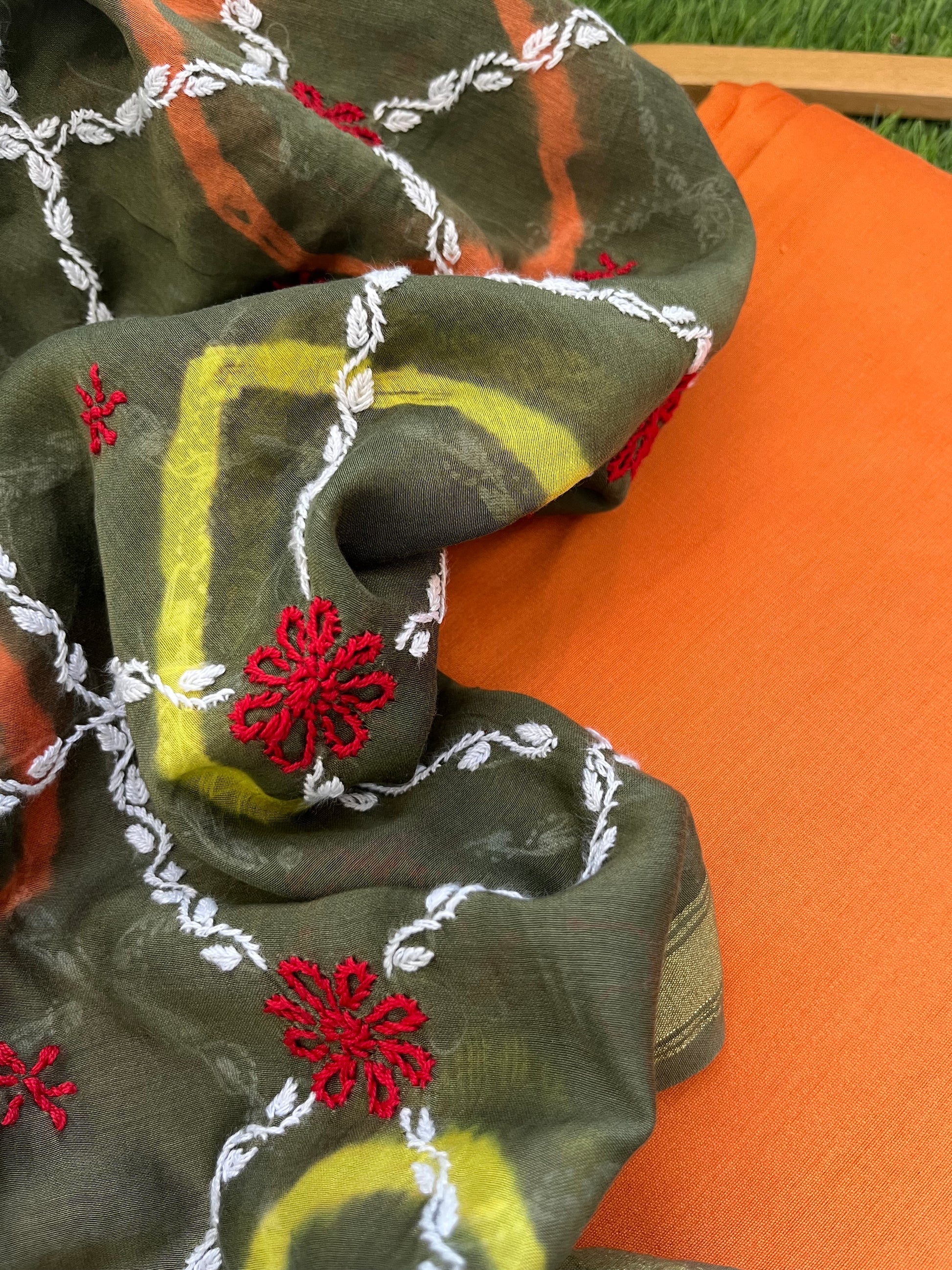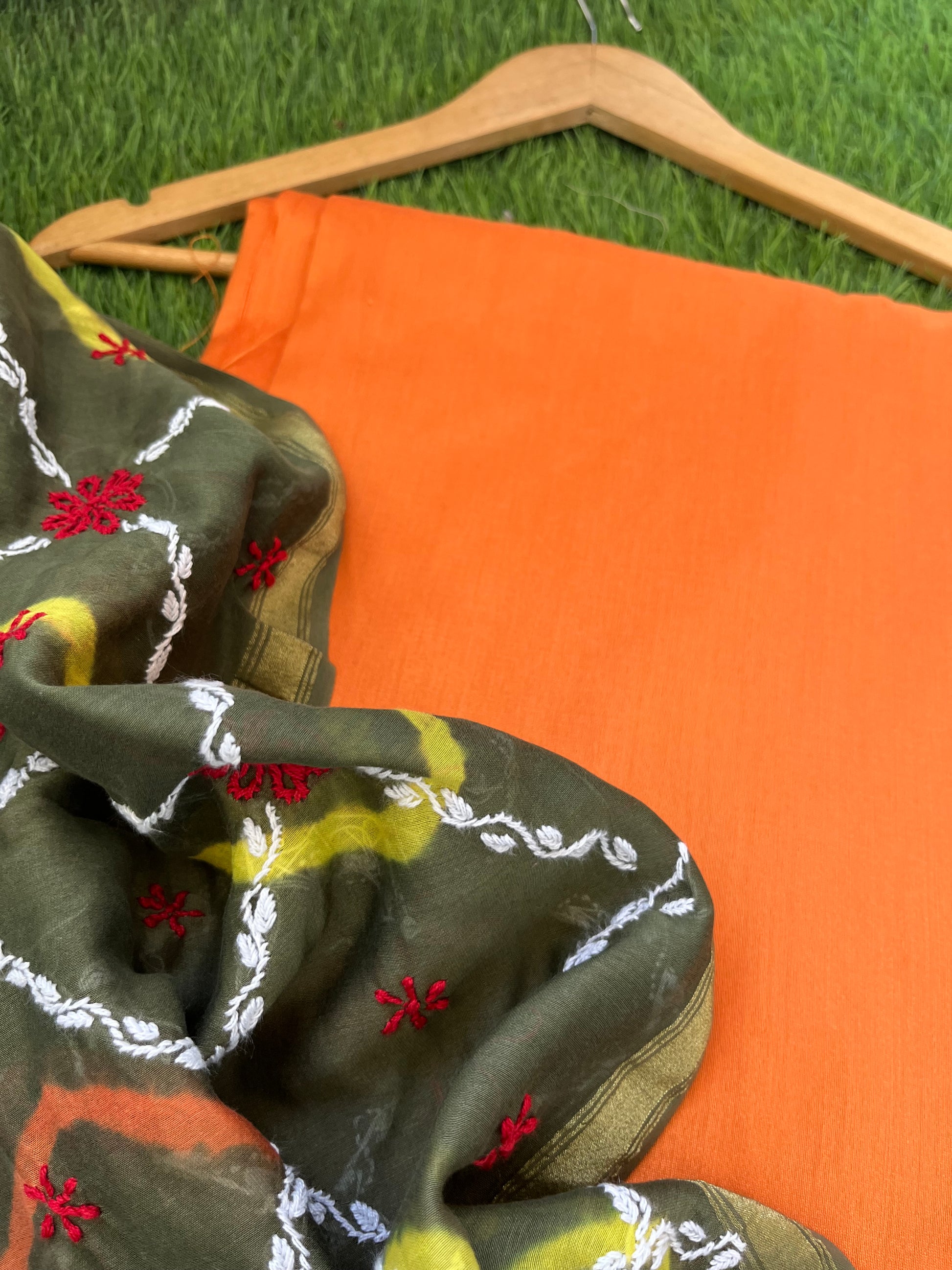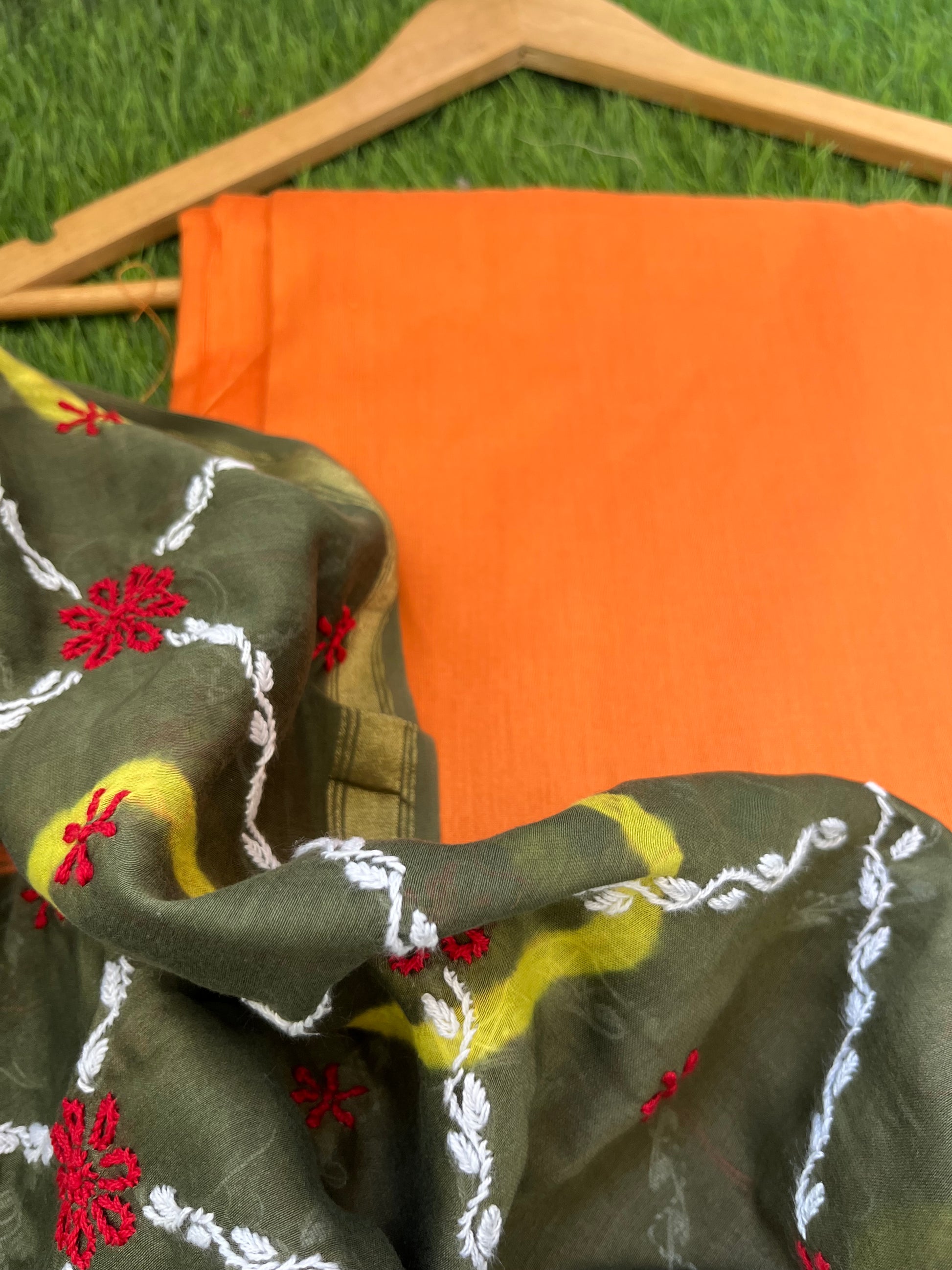 “Cotton silk plain kurta plain bottom fabric with a chanderi chikankari dupatta
