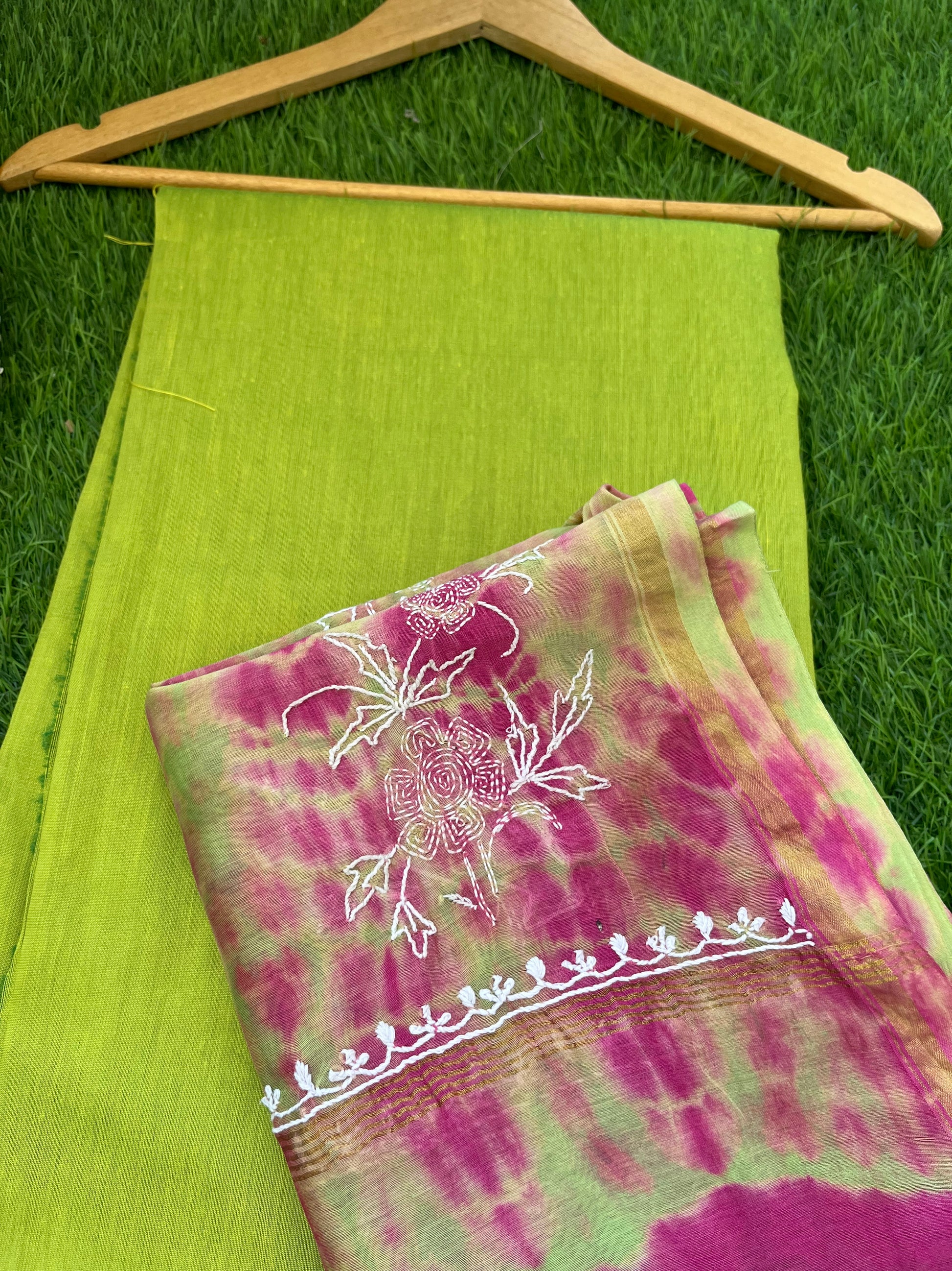 “Cotton silk plain kurta plain bottom fabric with a chanderi chikankari dupatta