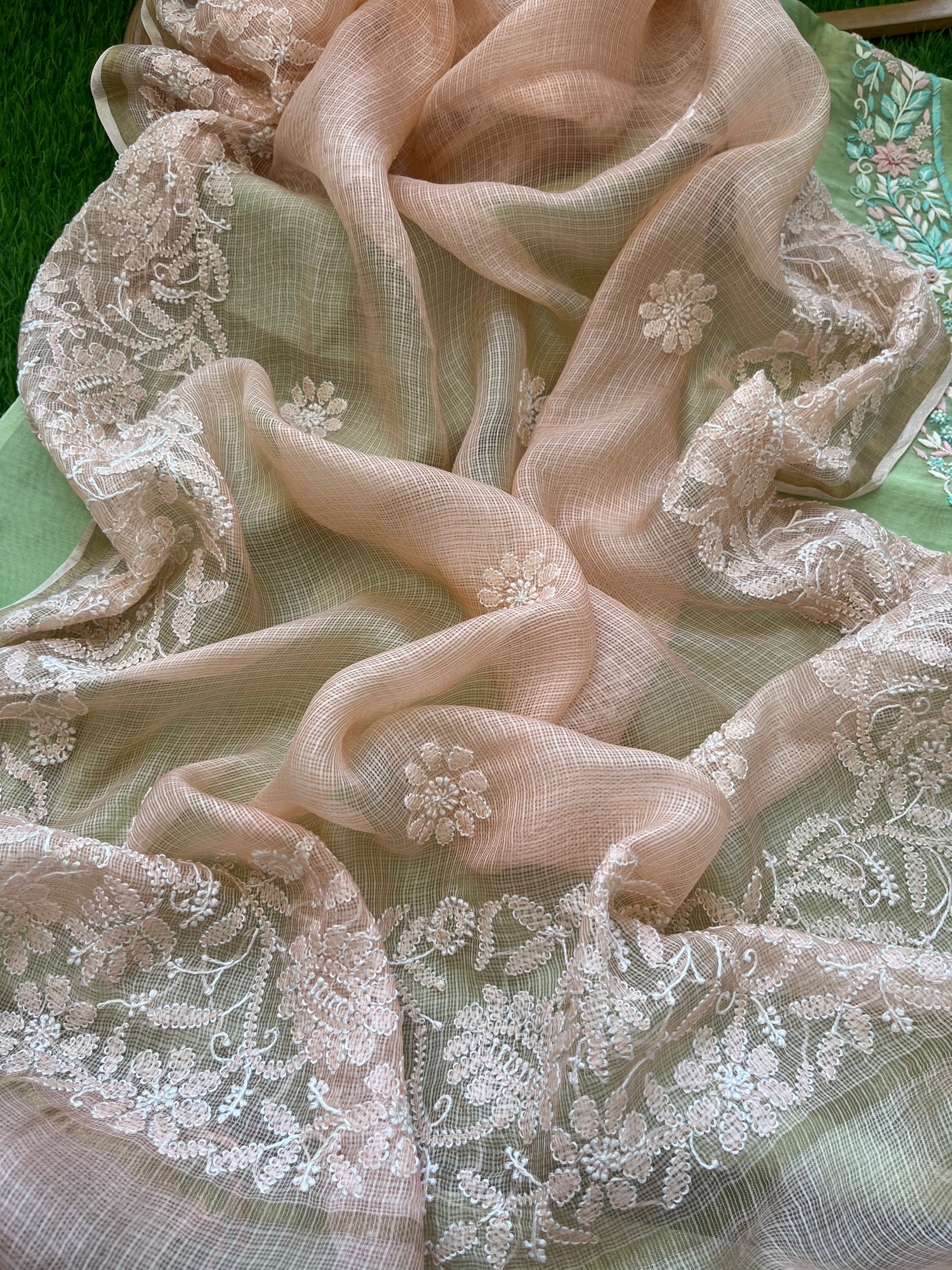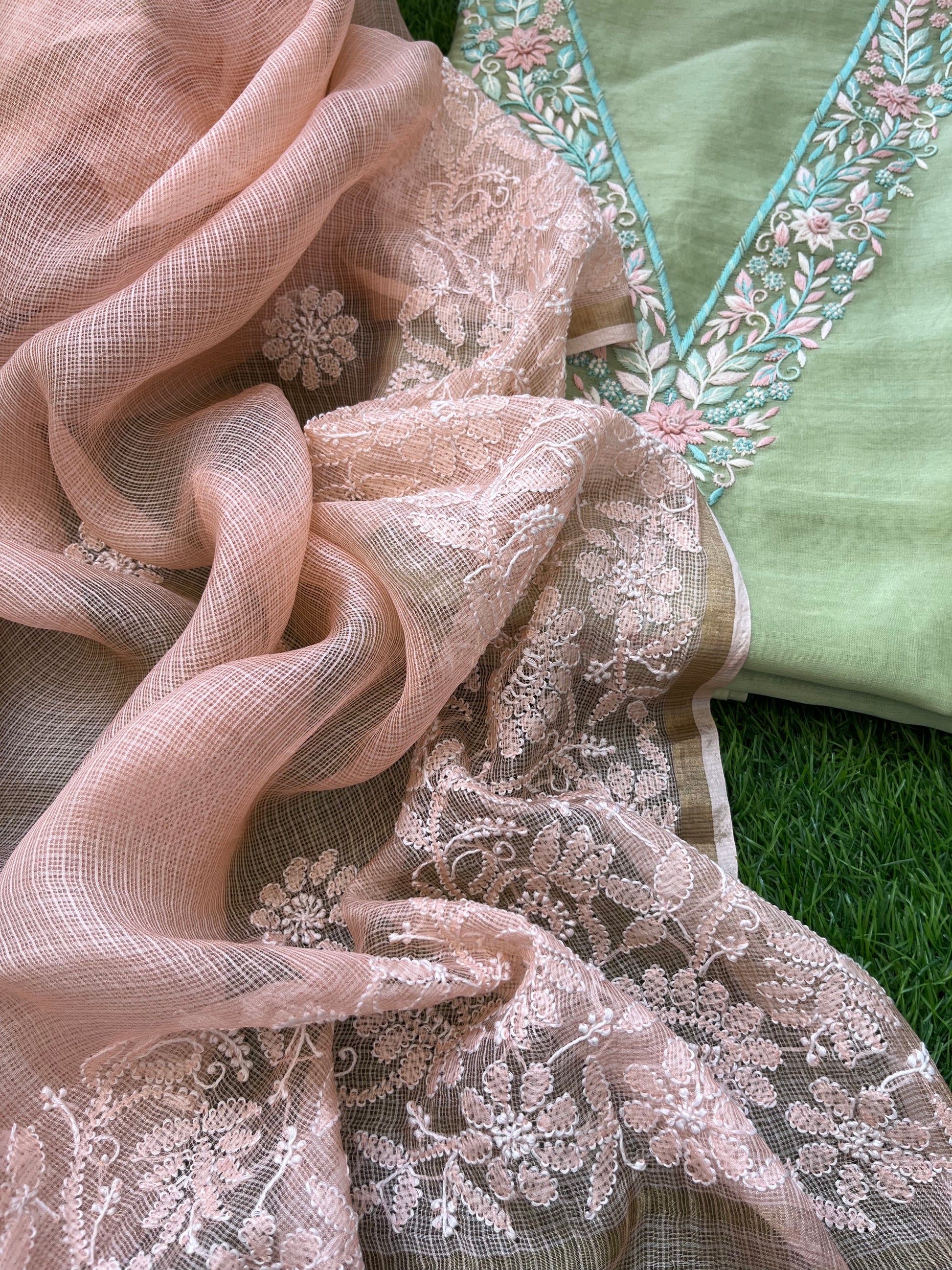 Hand embroidered chanderi kurta kota silk chikan work dupatta