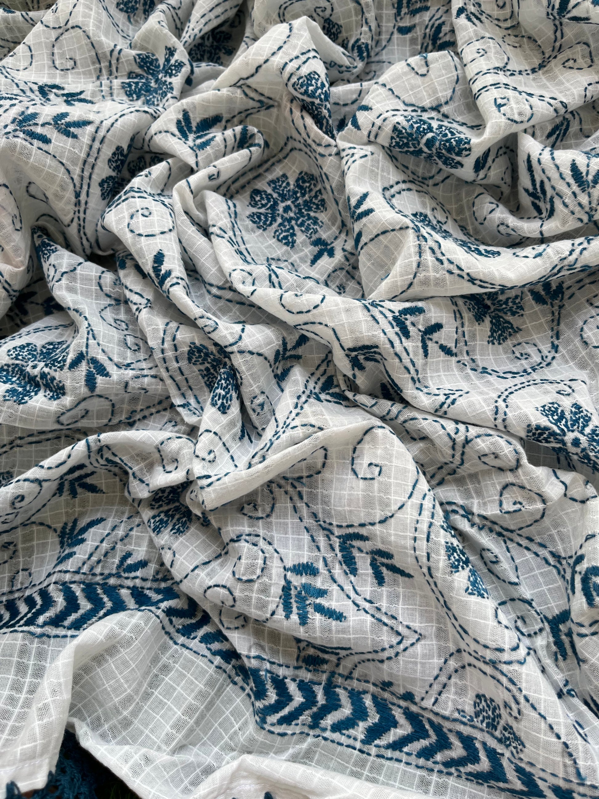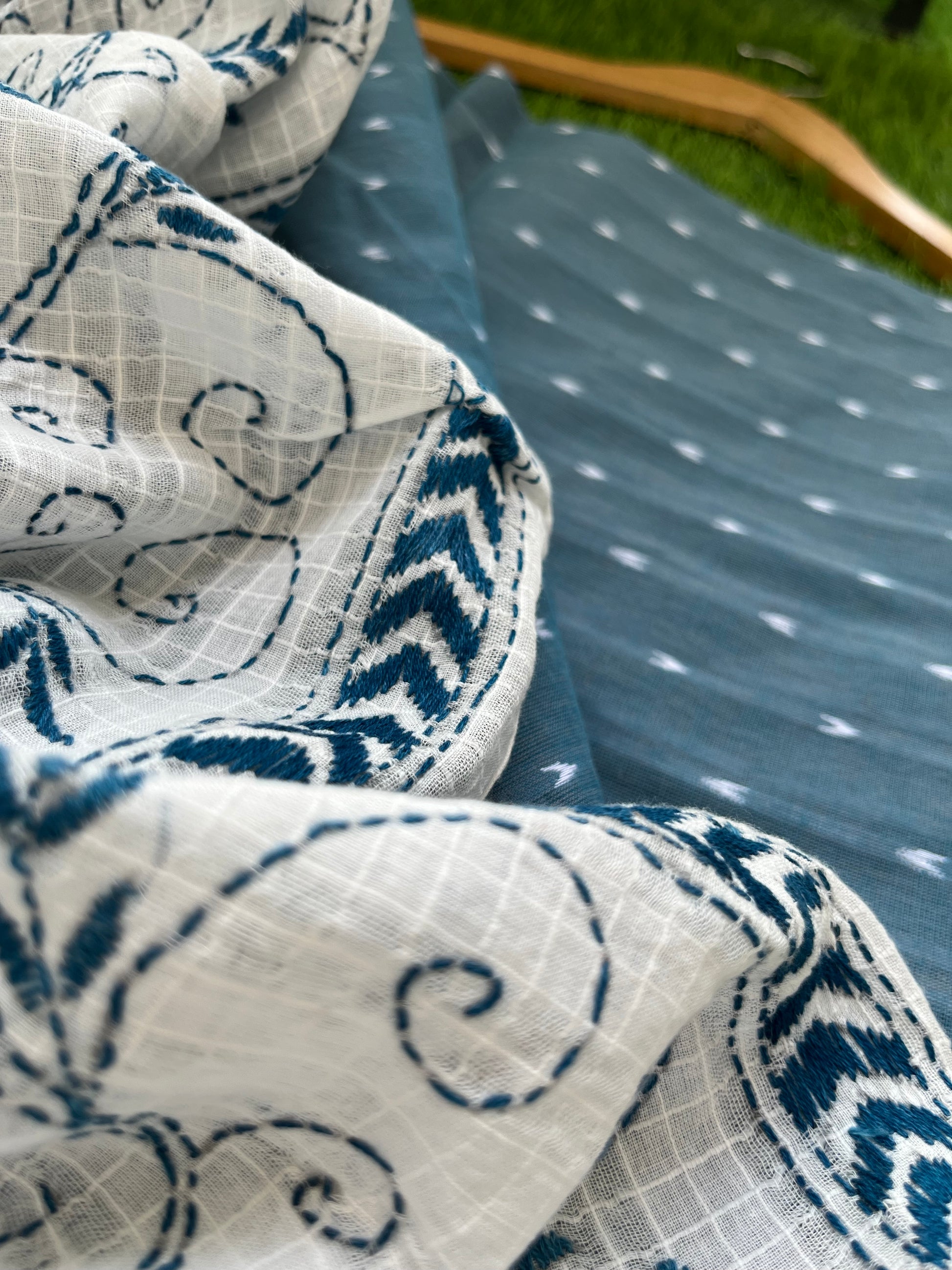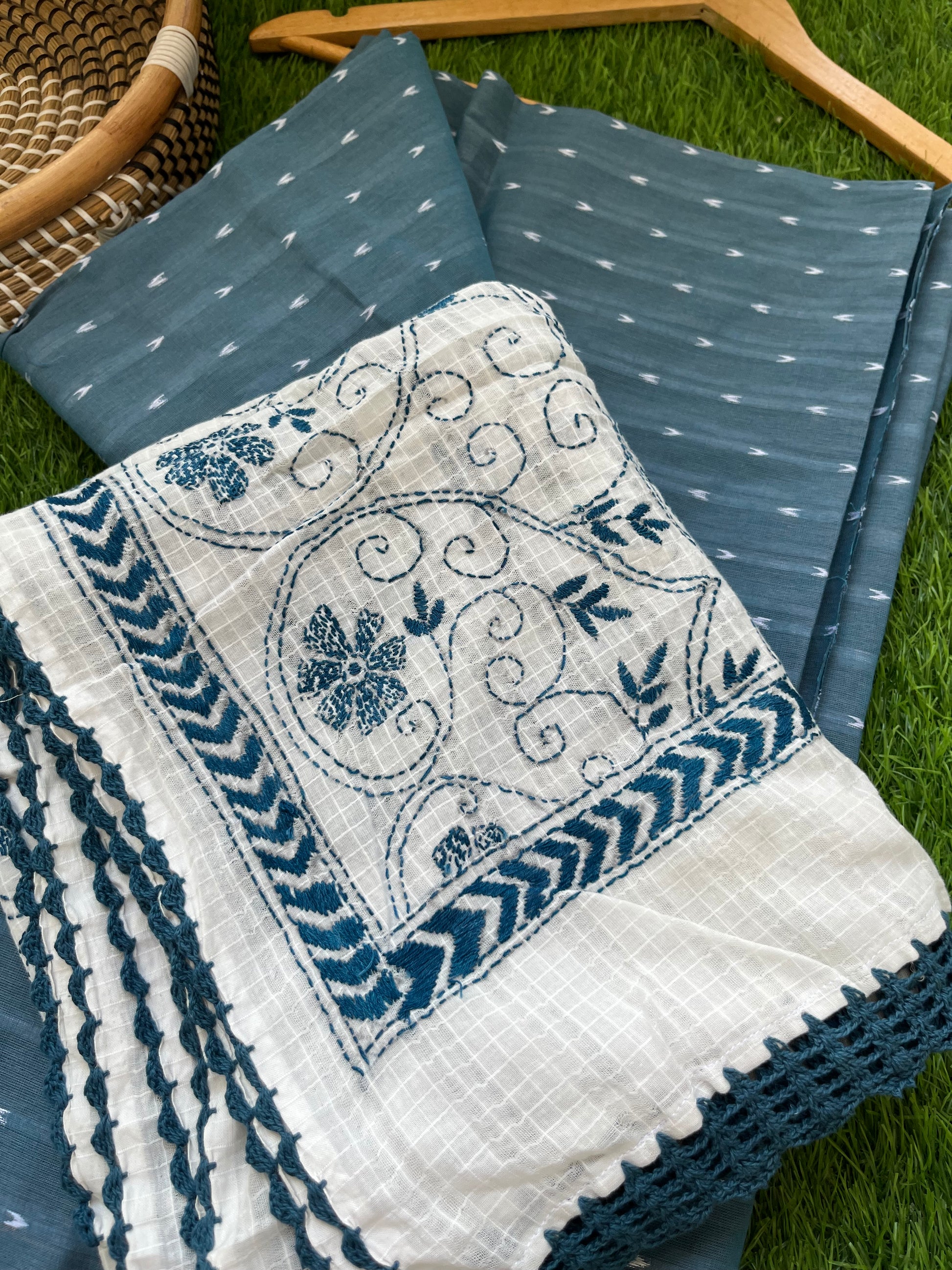 Handwoven cotton with kantha work Dupatta … with block peint kurta Bottom fabric
