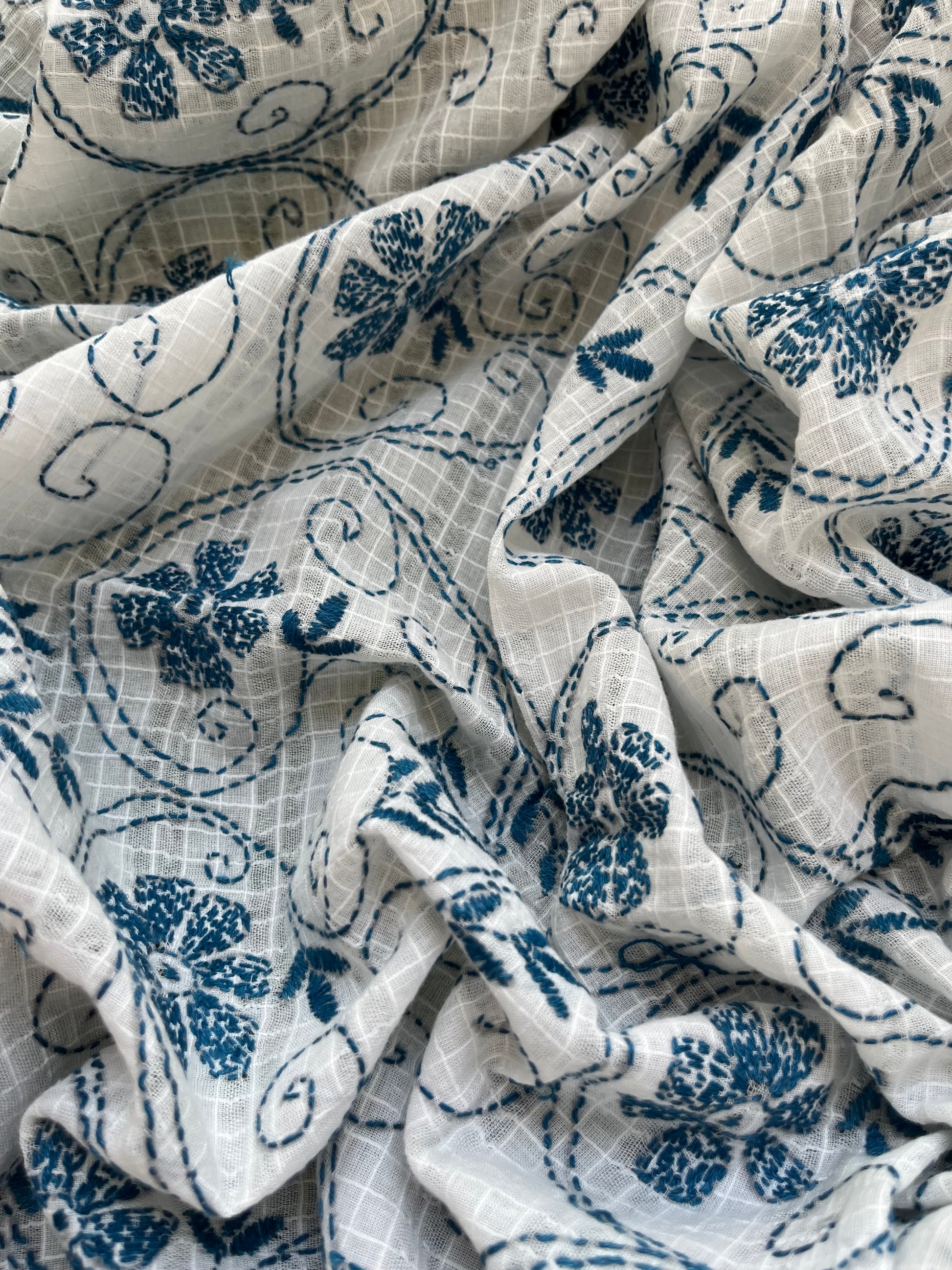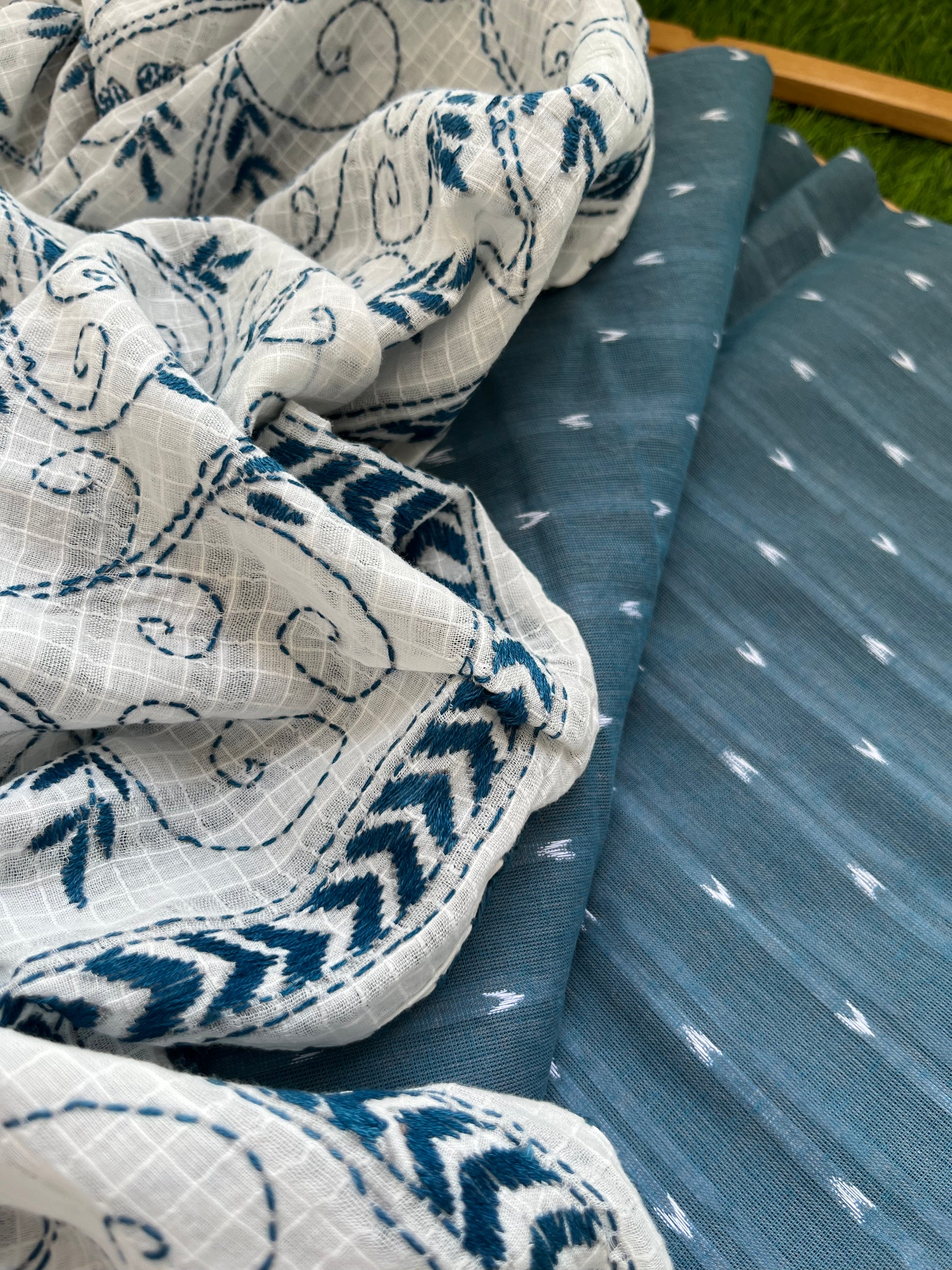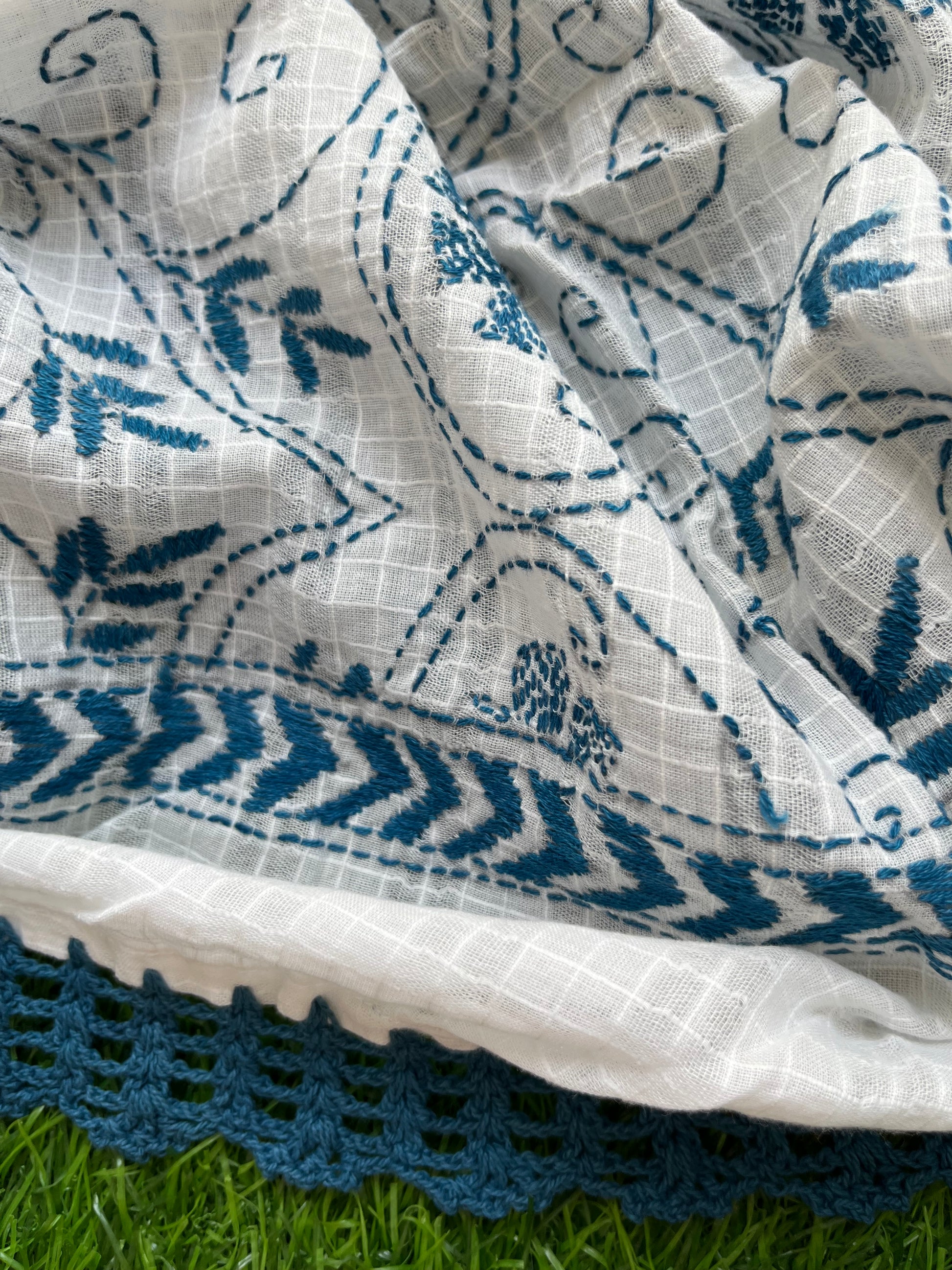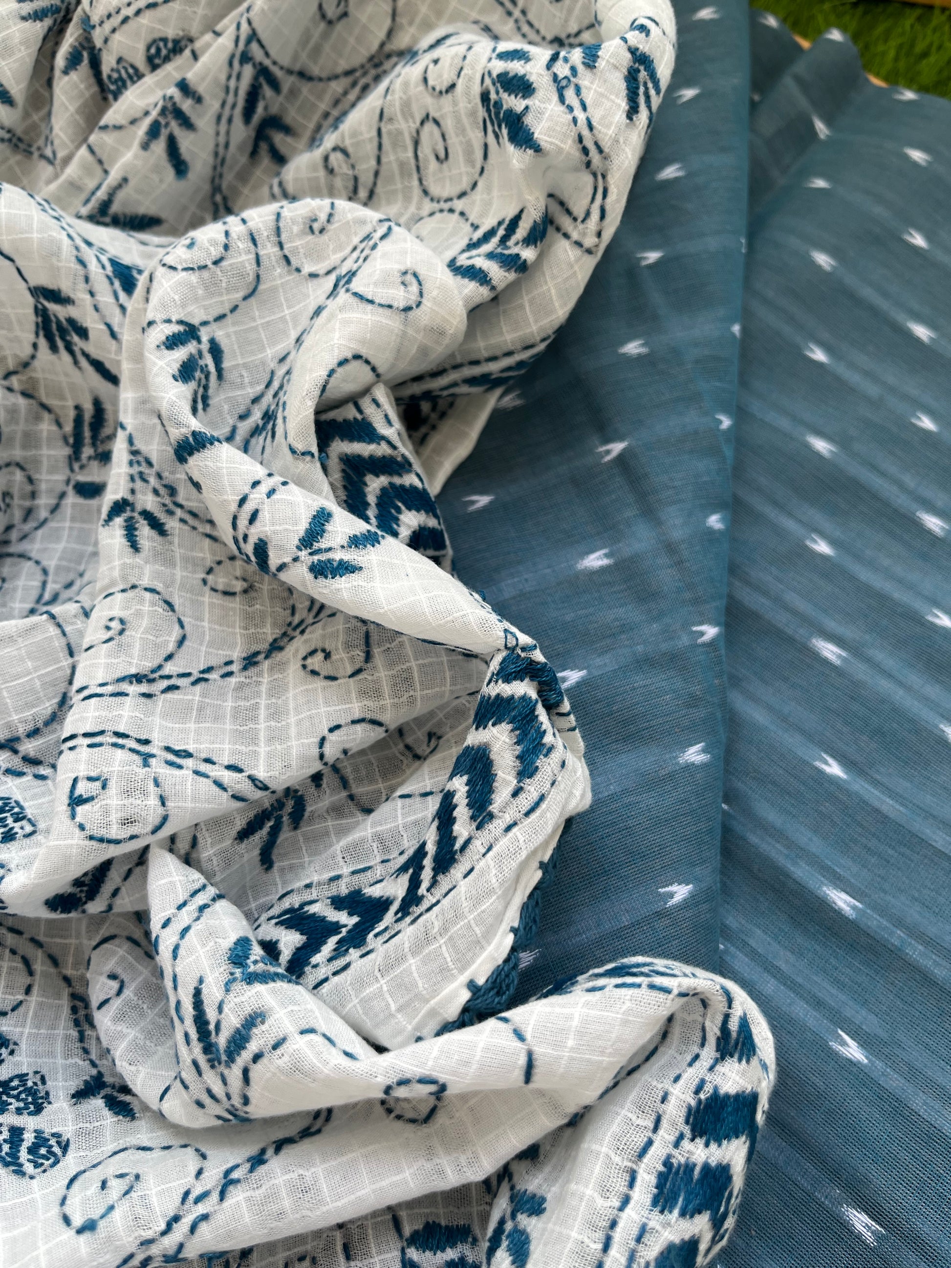 Handwoven cotton with kantha work Dupatta … with block peint kurta Bottom fabric