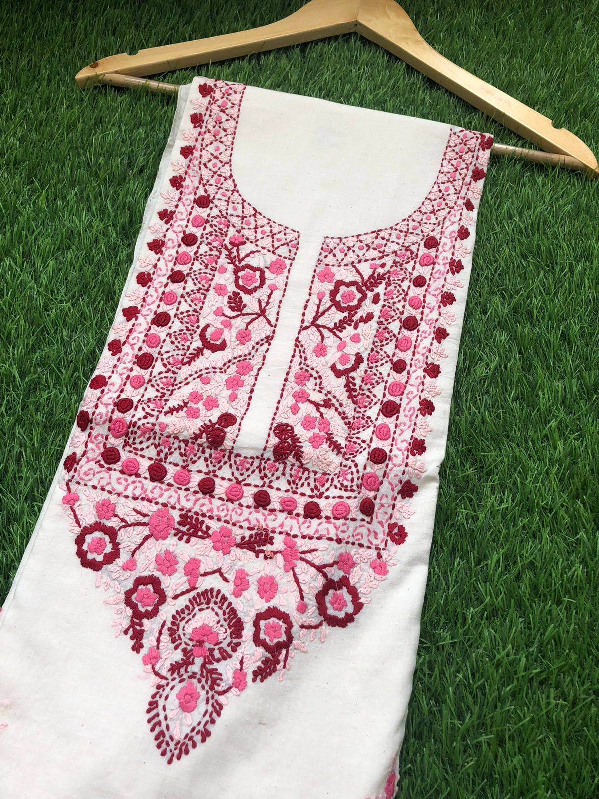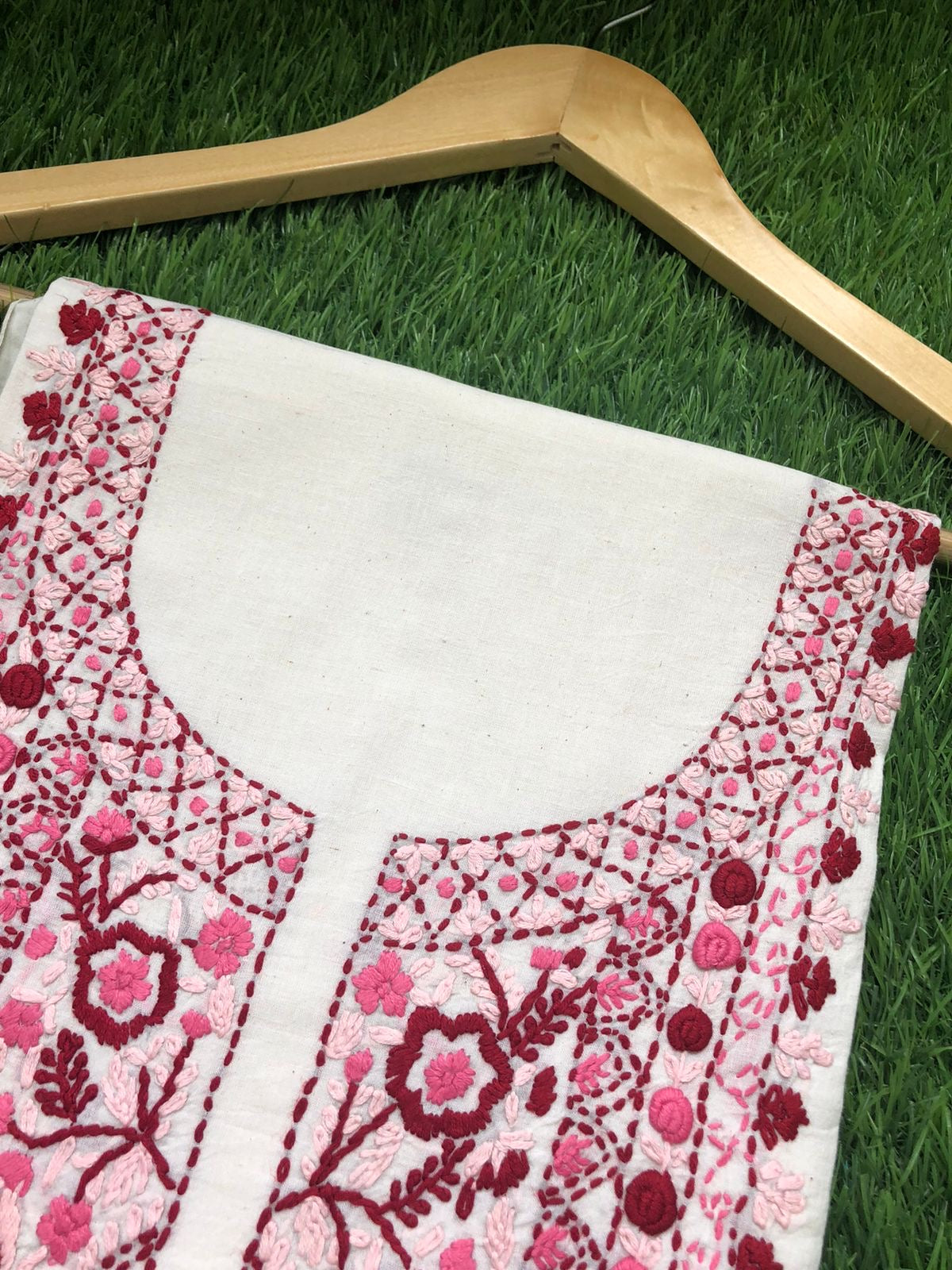Cotton knot work kurta … kurta has work on neck and booties in front and work on sleeves