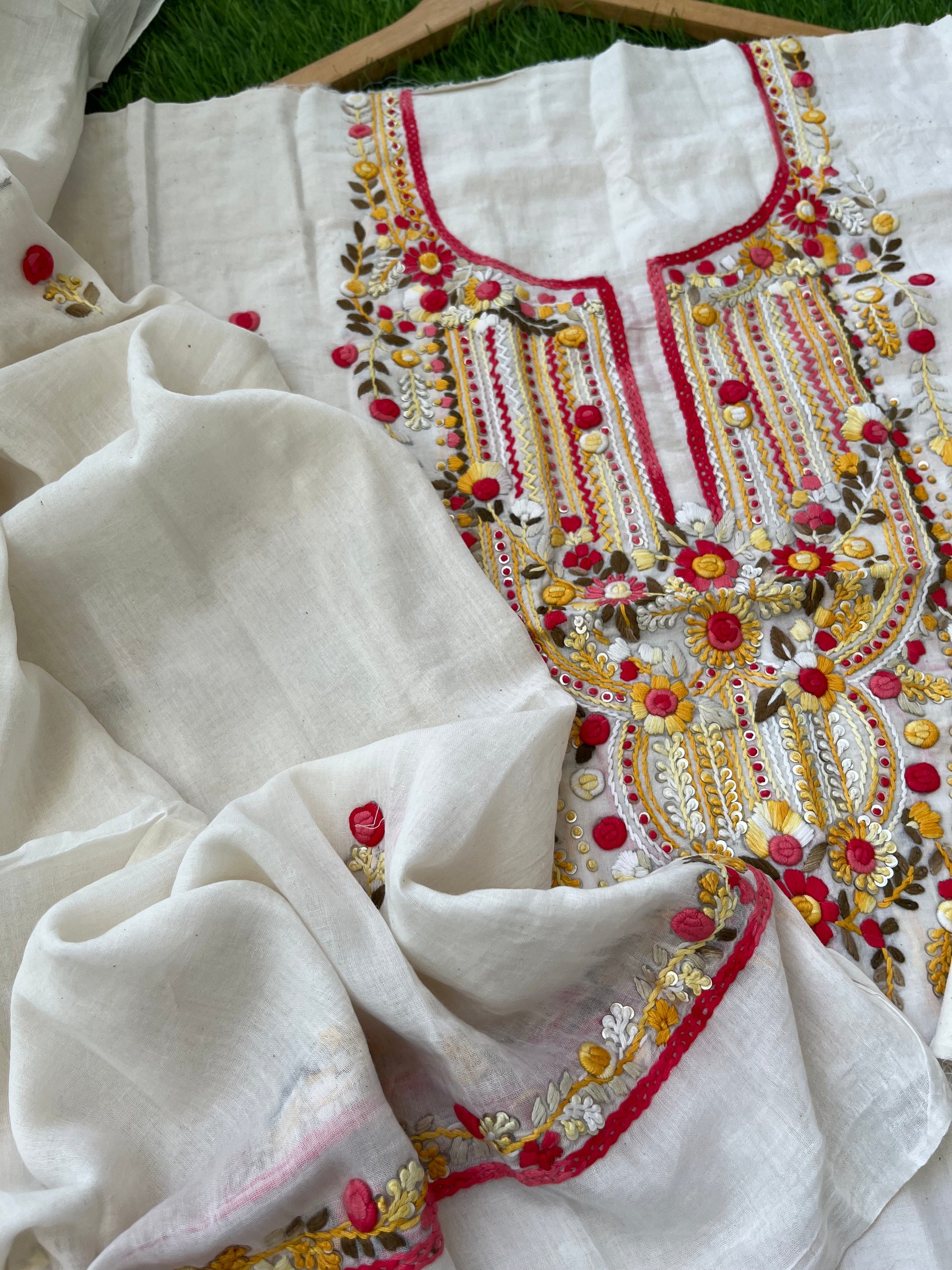 Handwoven Cotton knot work embroidered kurta dupatta and plain bottom fabric