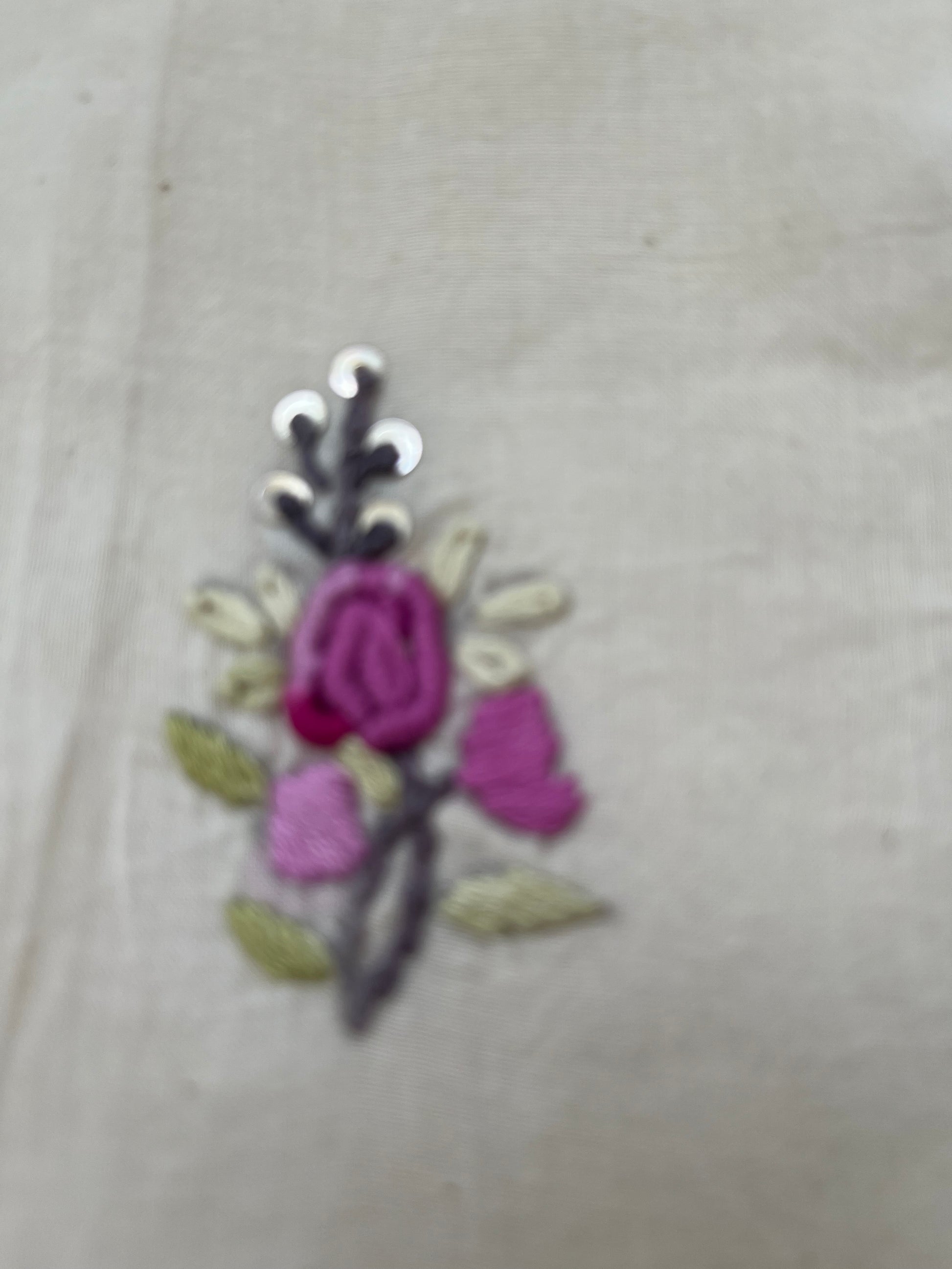 Cotton knot work kurta … kurta has work on neck and booties in front and work on sleeves