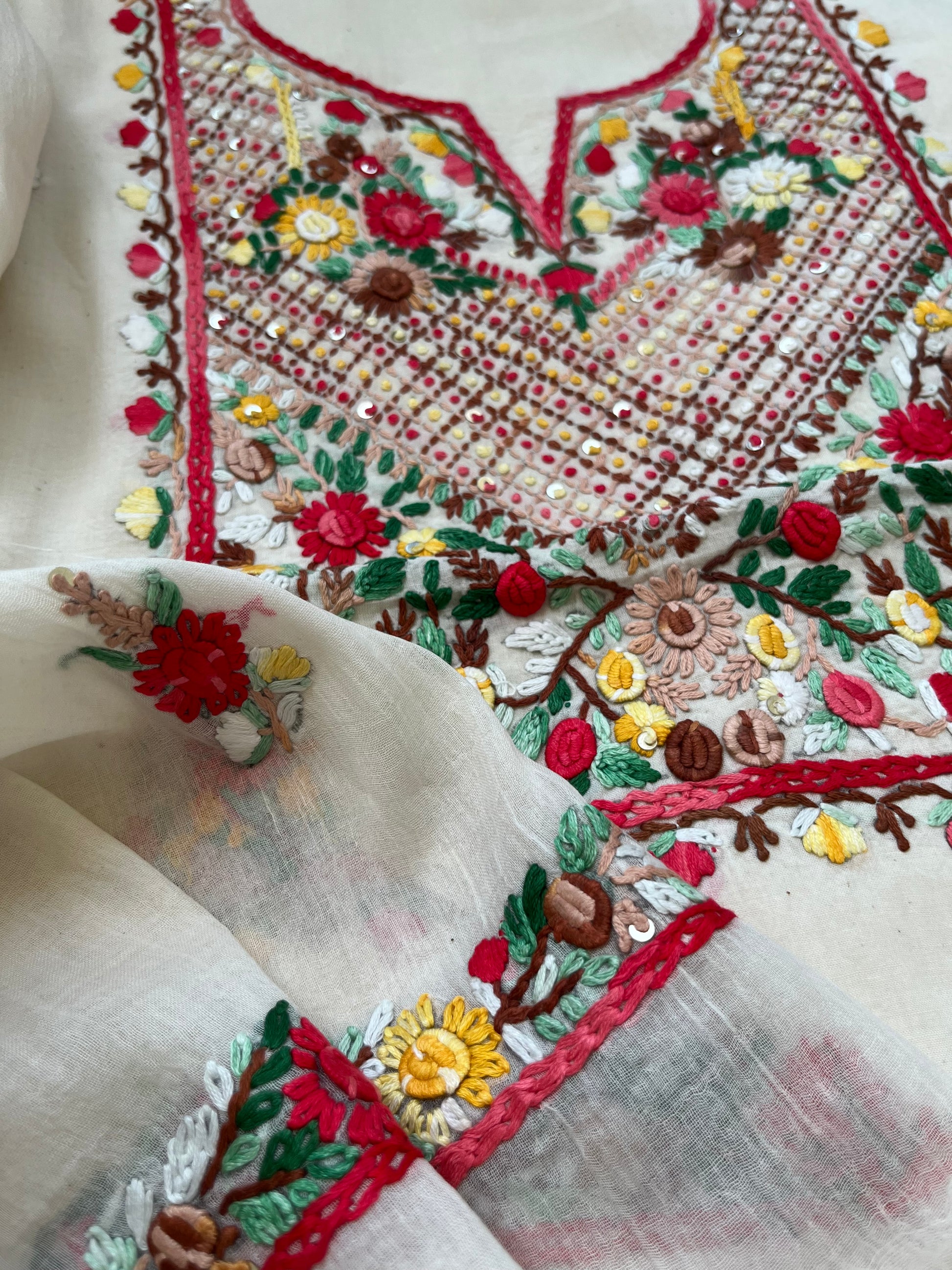 Handwoven Cotton knot work embroidered kurta dupatta and plain bottom fabric