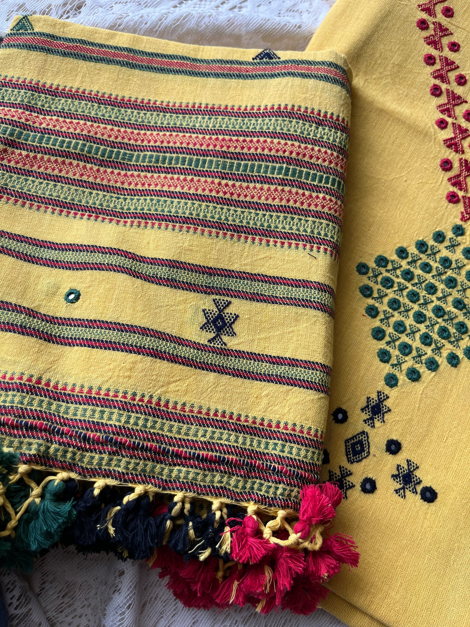 Handwoven Natural Dye Organic Kala Cotton fabric. This breathable fabric is handcrafted on the traditional handloom in Kutch, Gujarat, India. The delicate weave gives it an elegant look, while its organic Kala cotton material keeps you feeling cool and comfortable all season long.
