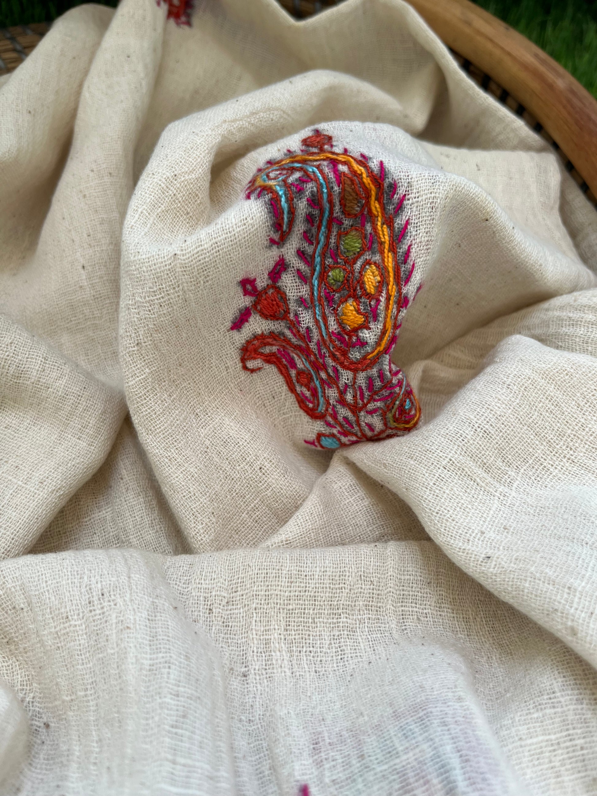 Kala Cotton kashmiri thread work stole
