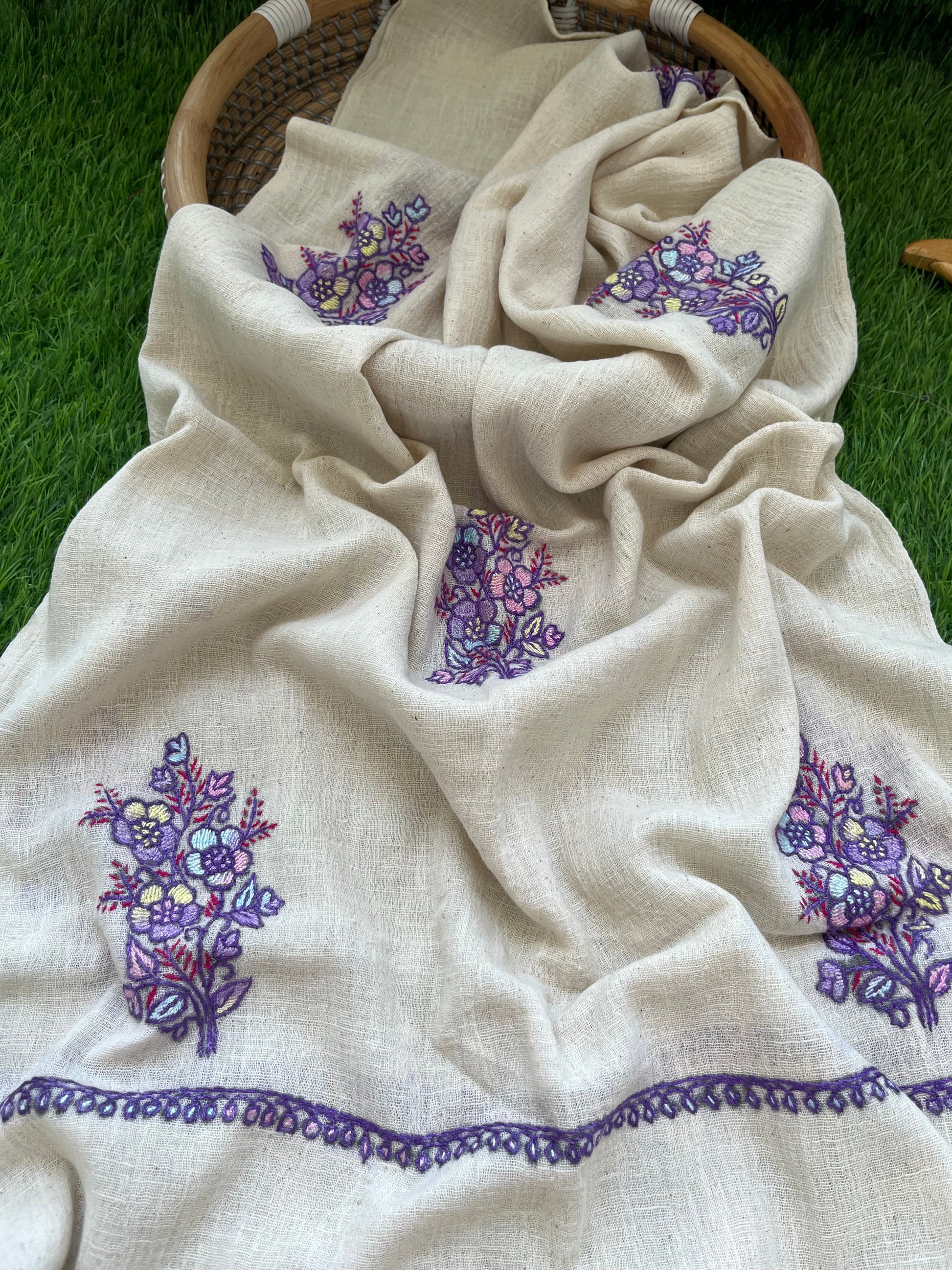 Kala Cotton kashmiri thread work stole