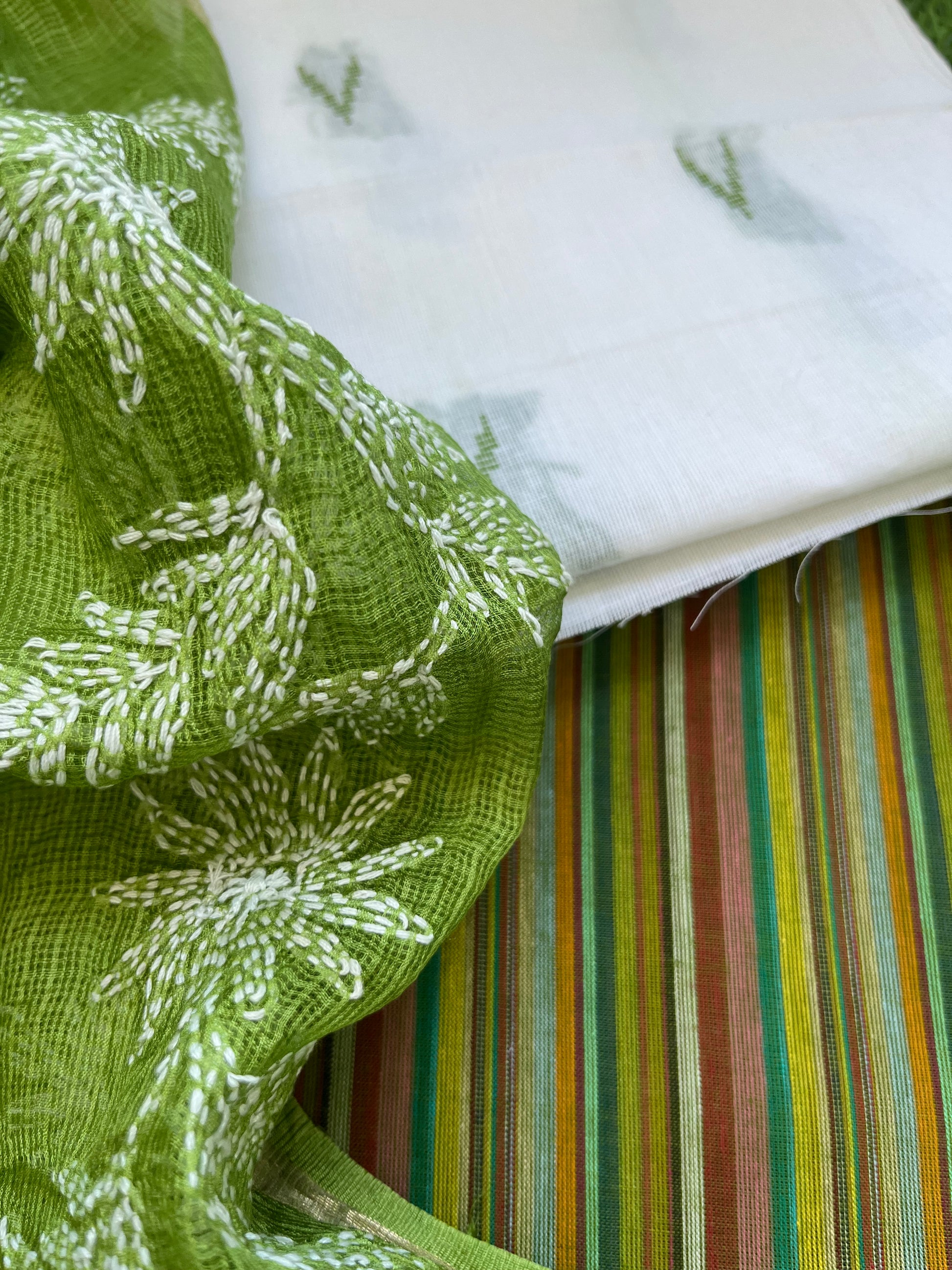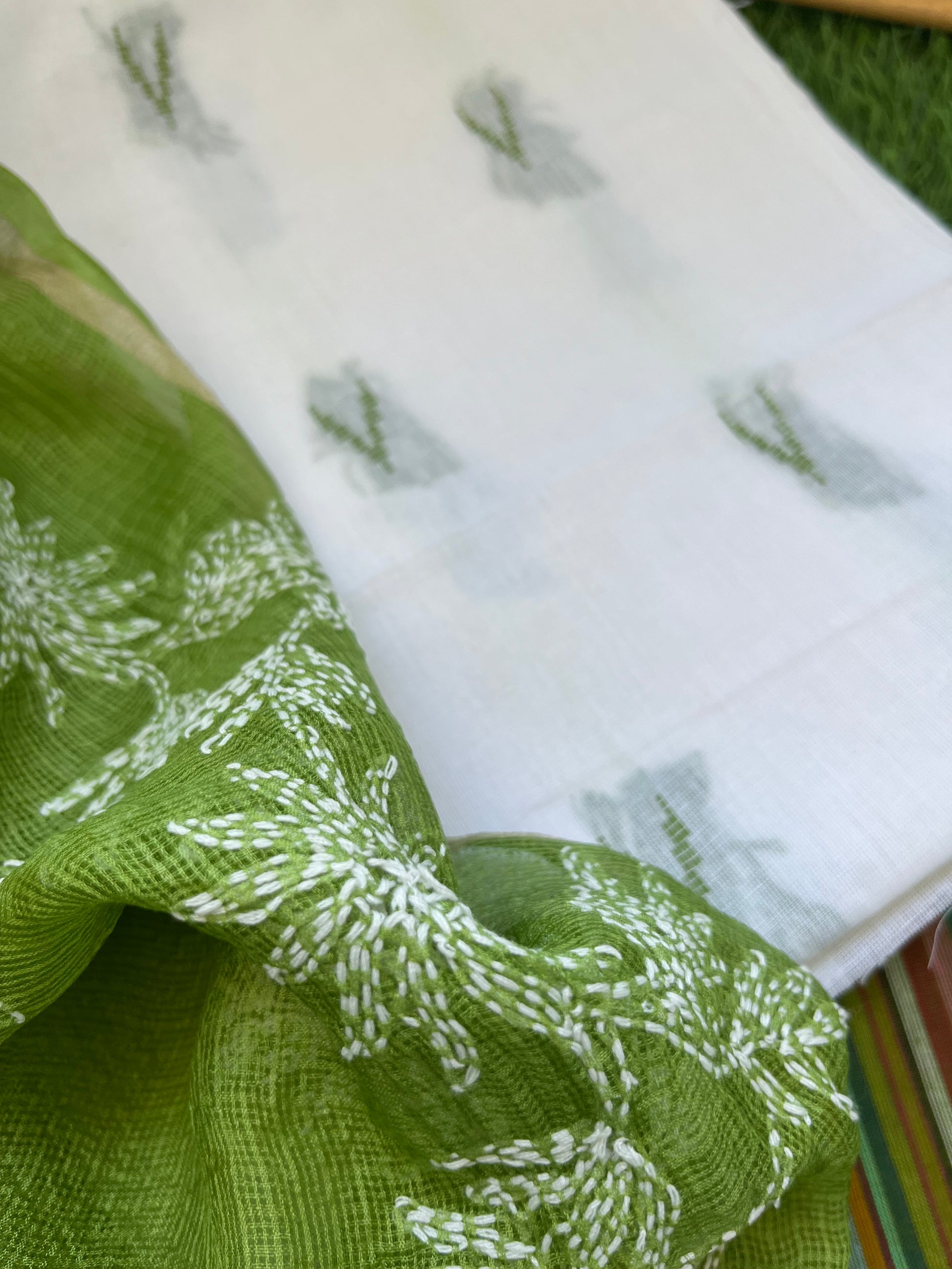 Tepchi (chikankari) Work Dupatta with mangalgiri cotton kurta bottom fabric ✨