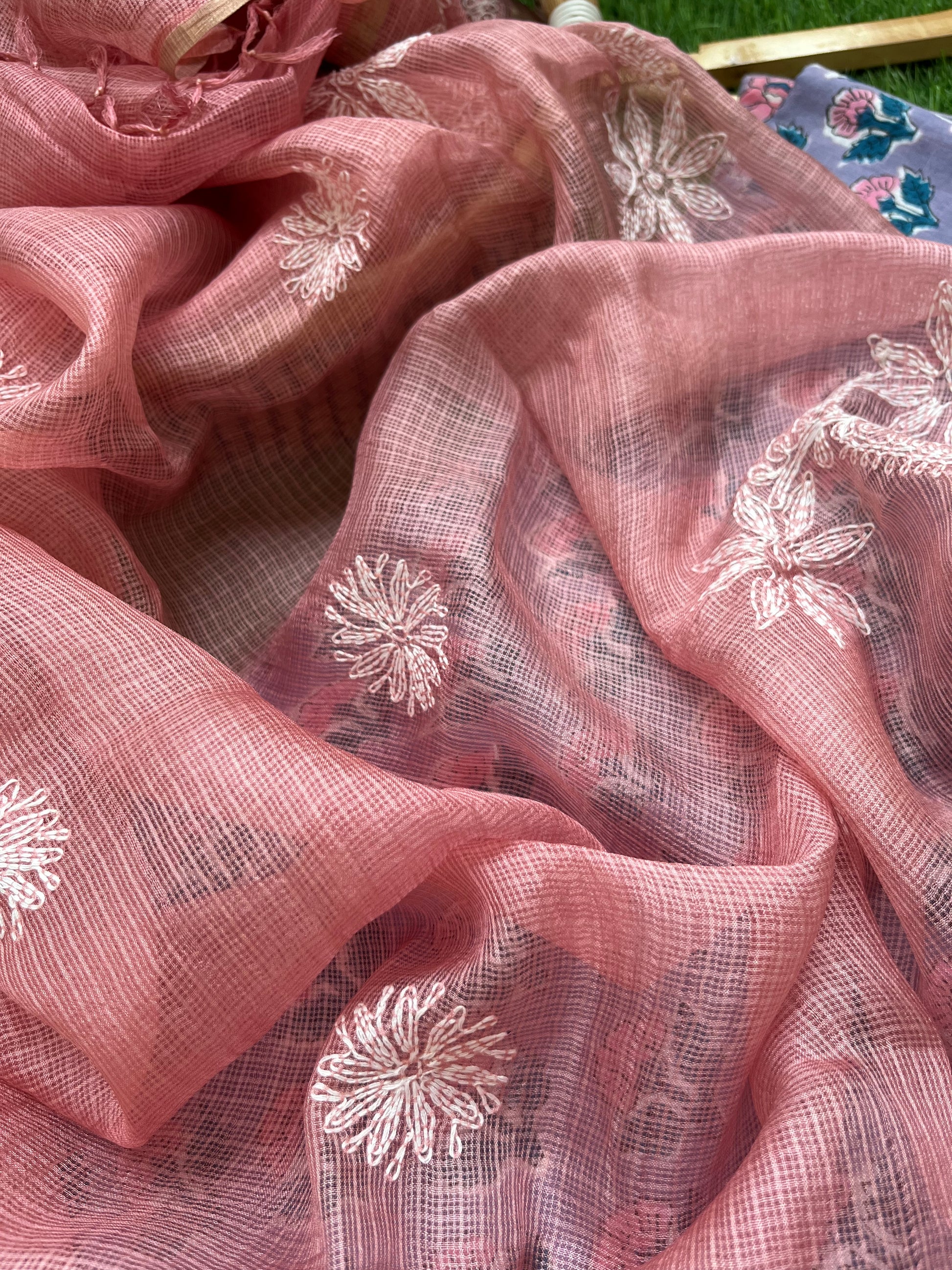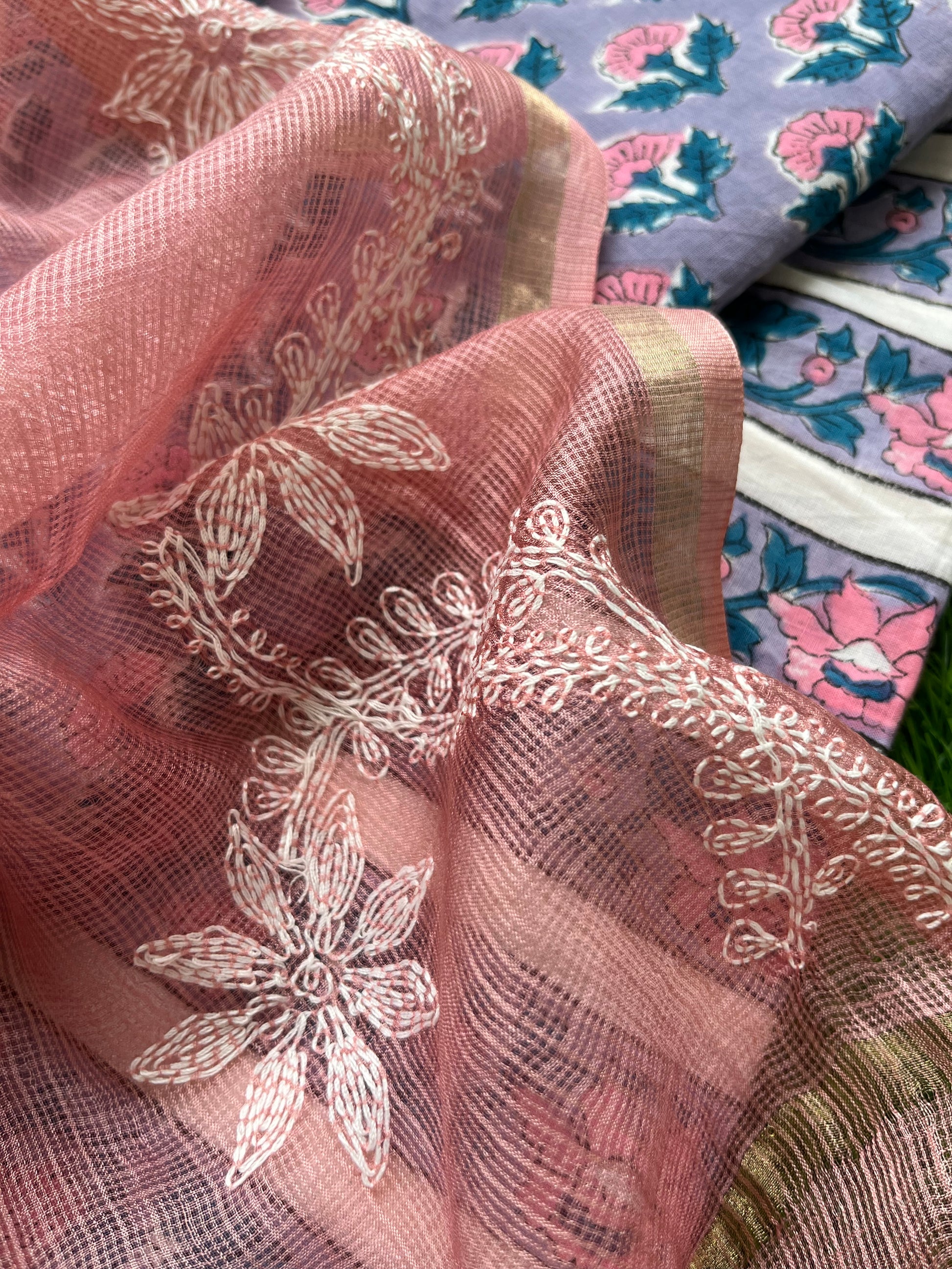 Kota silk Chikankari Dupatta with cotton kurta bottom Fabric