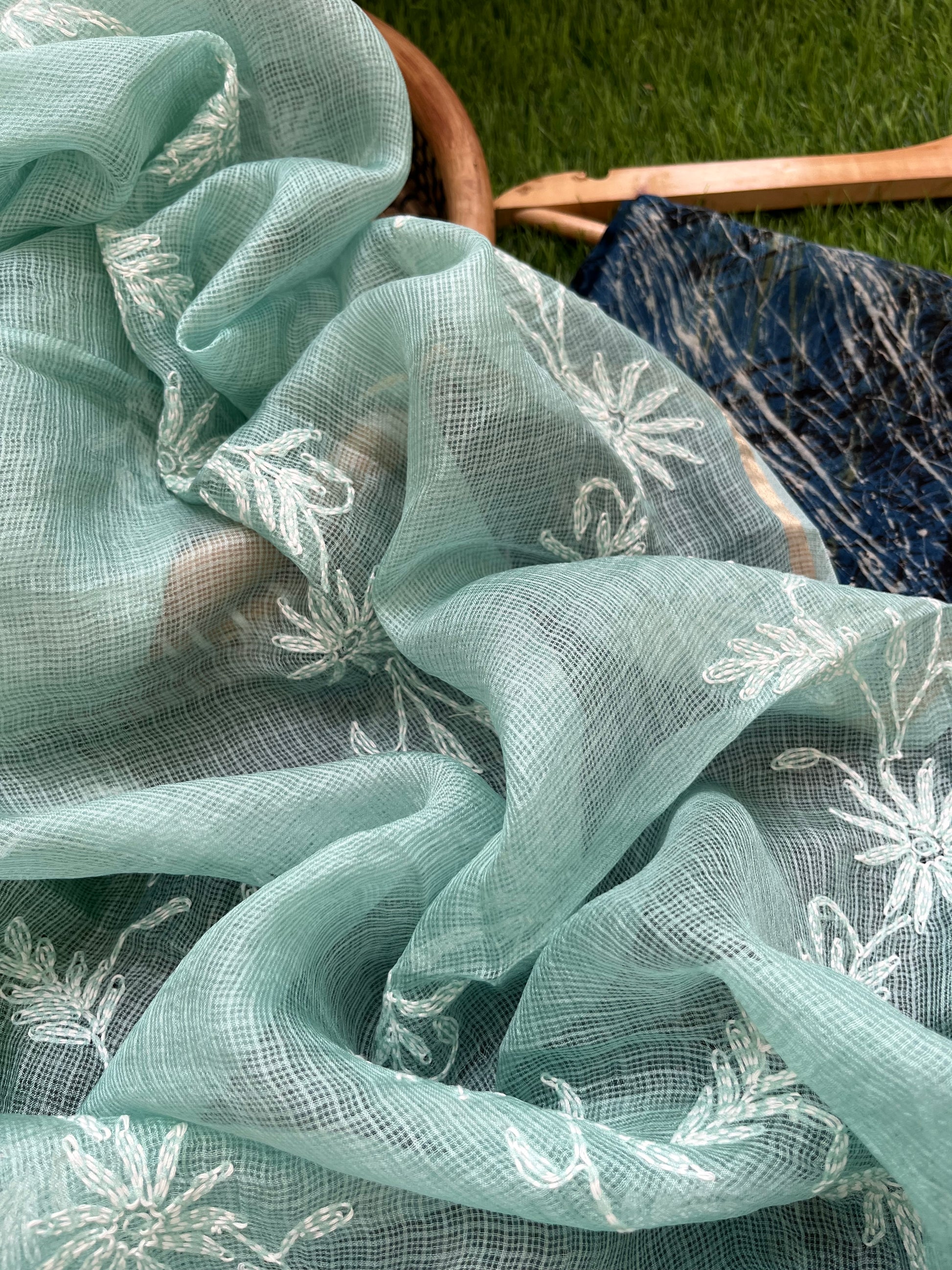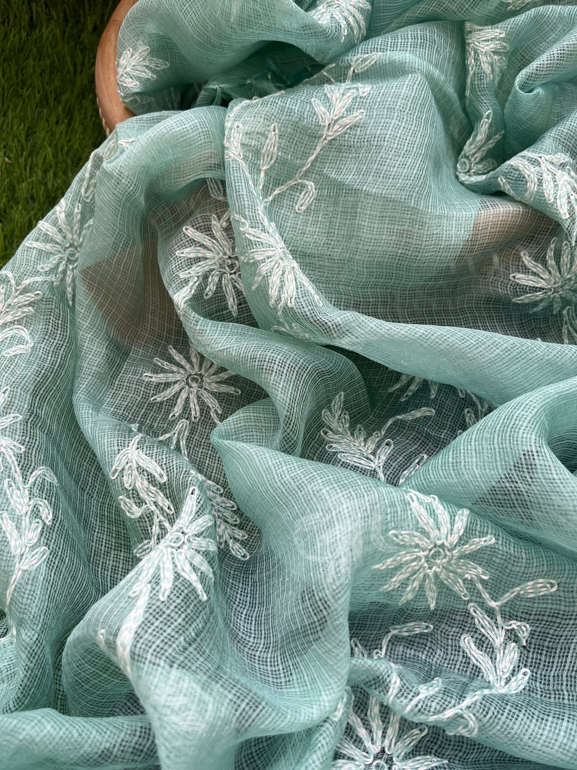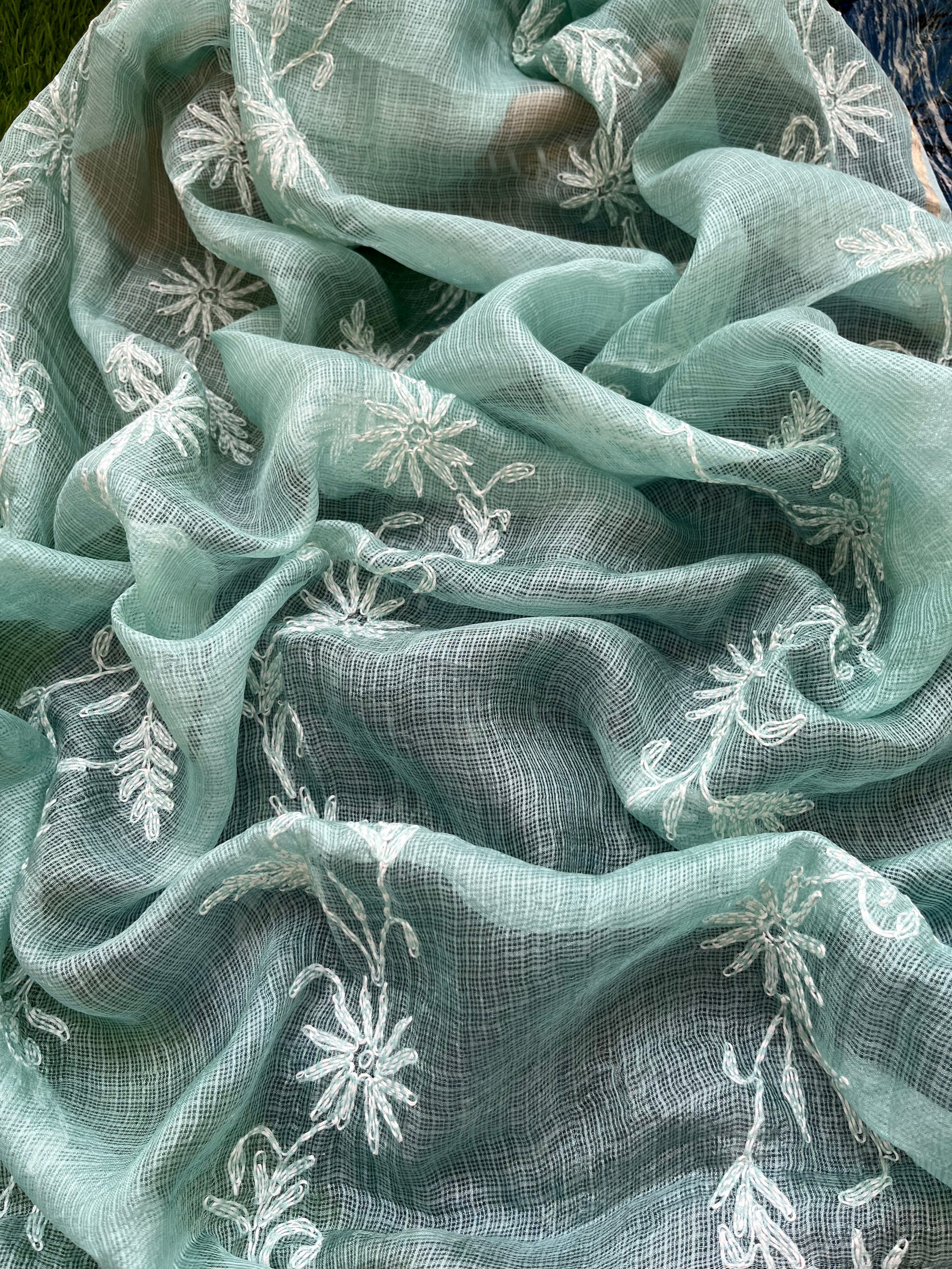 Kota silk Chikankari Dupatta with modal silk kurta bottom Fabric