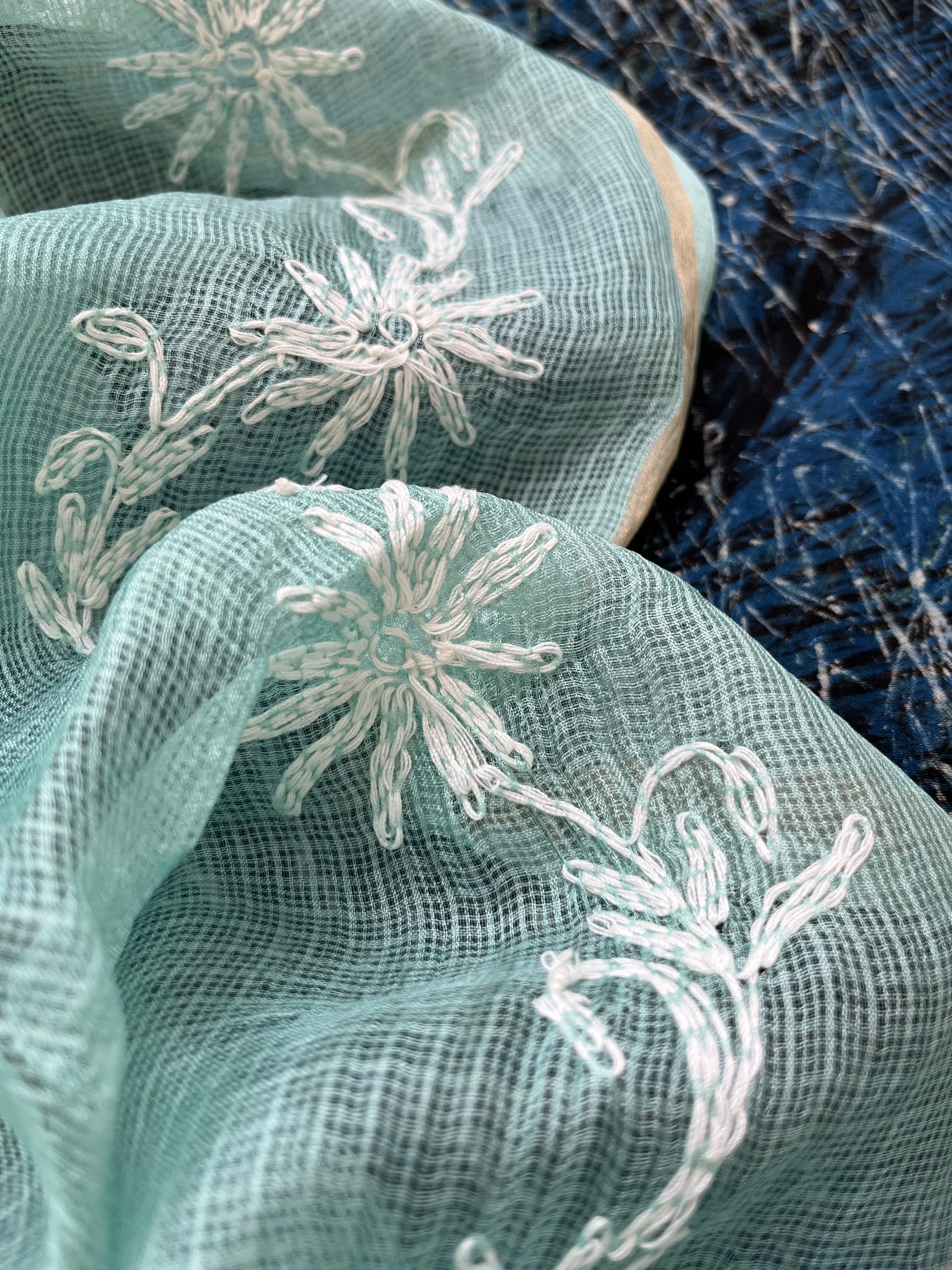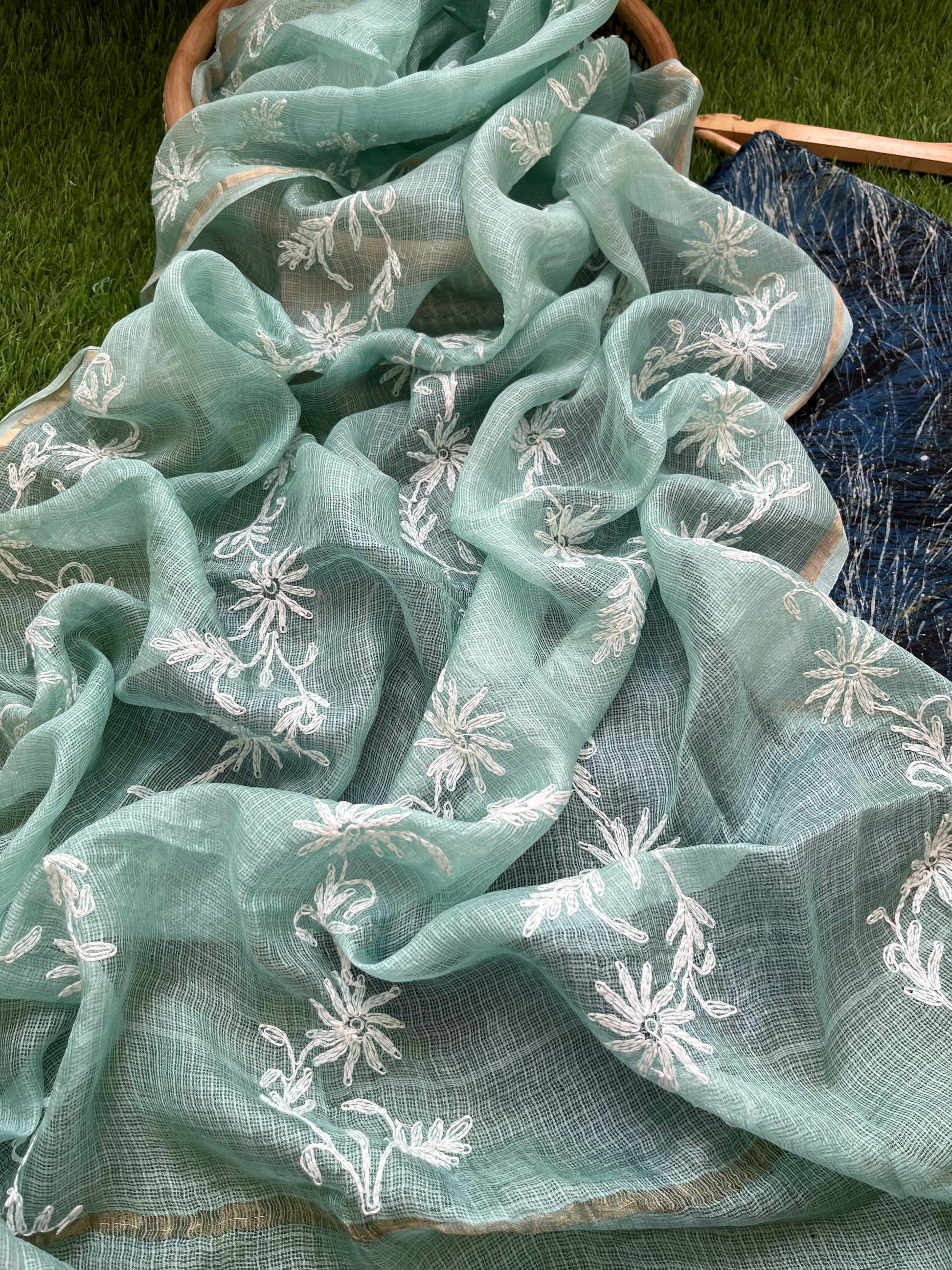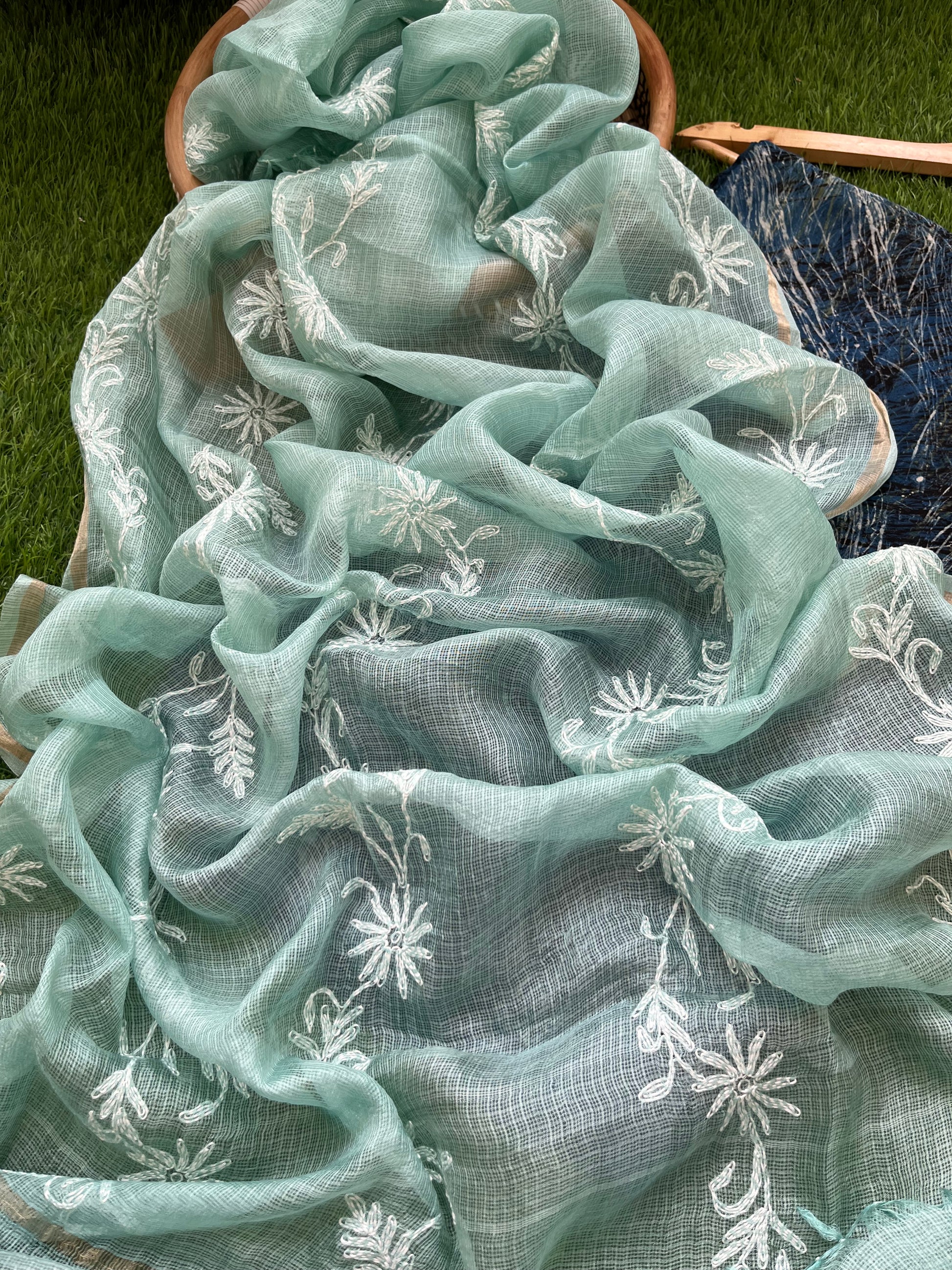 Kota silk Chikankari Dupatta with modal silk kurta bottom Fabric