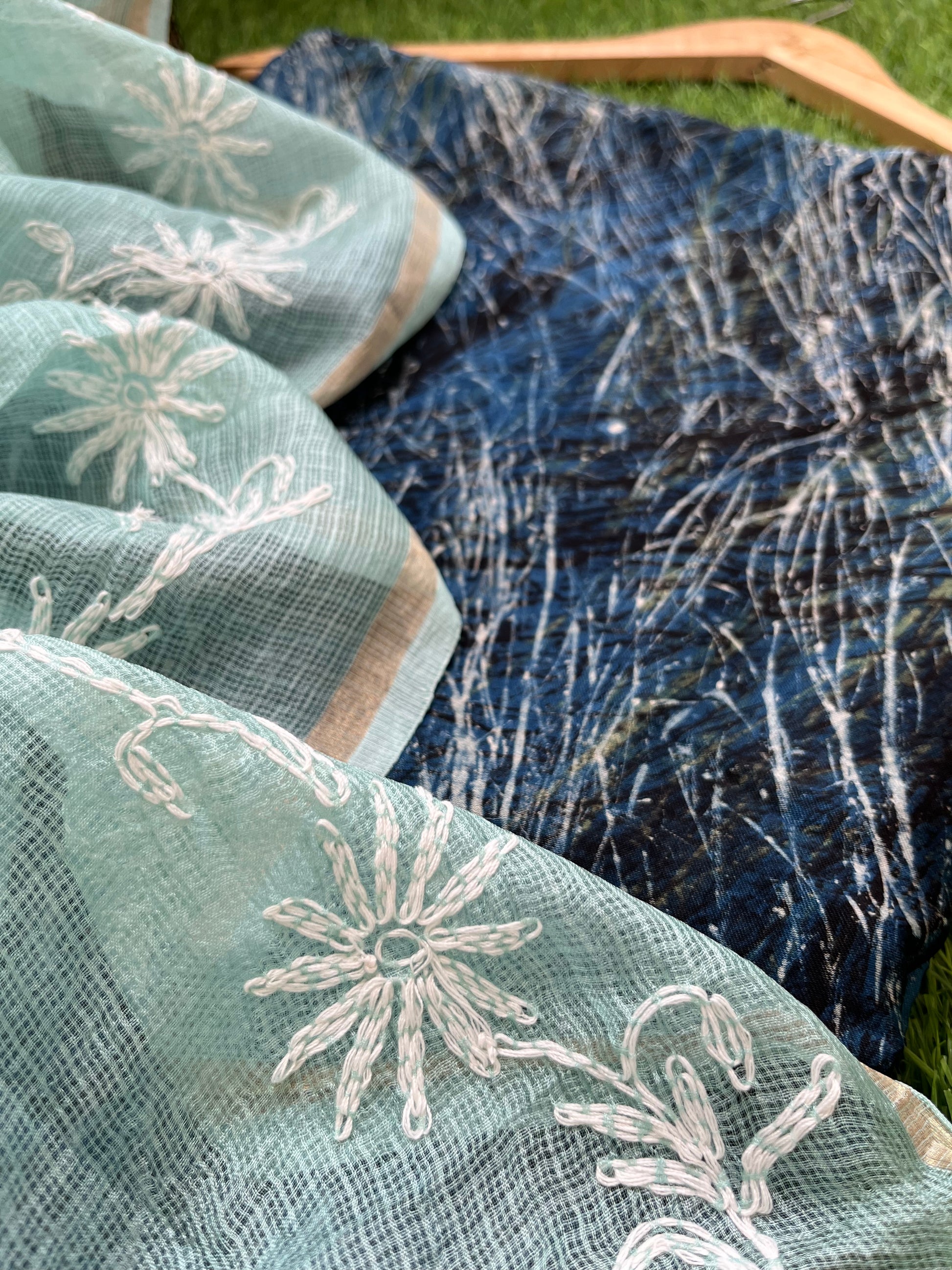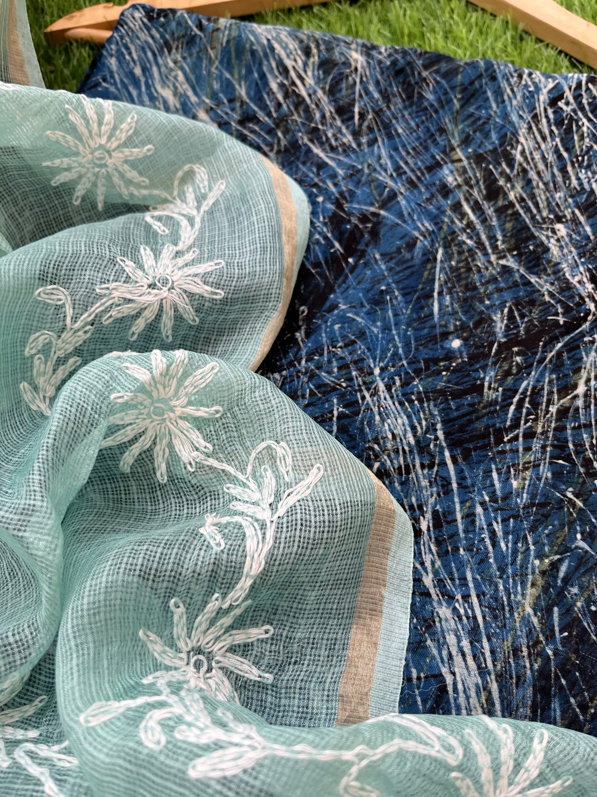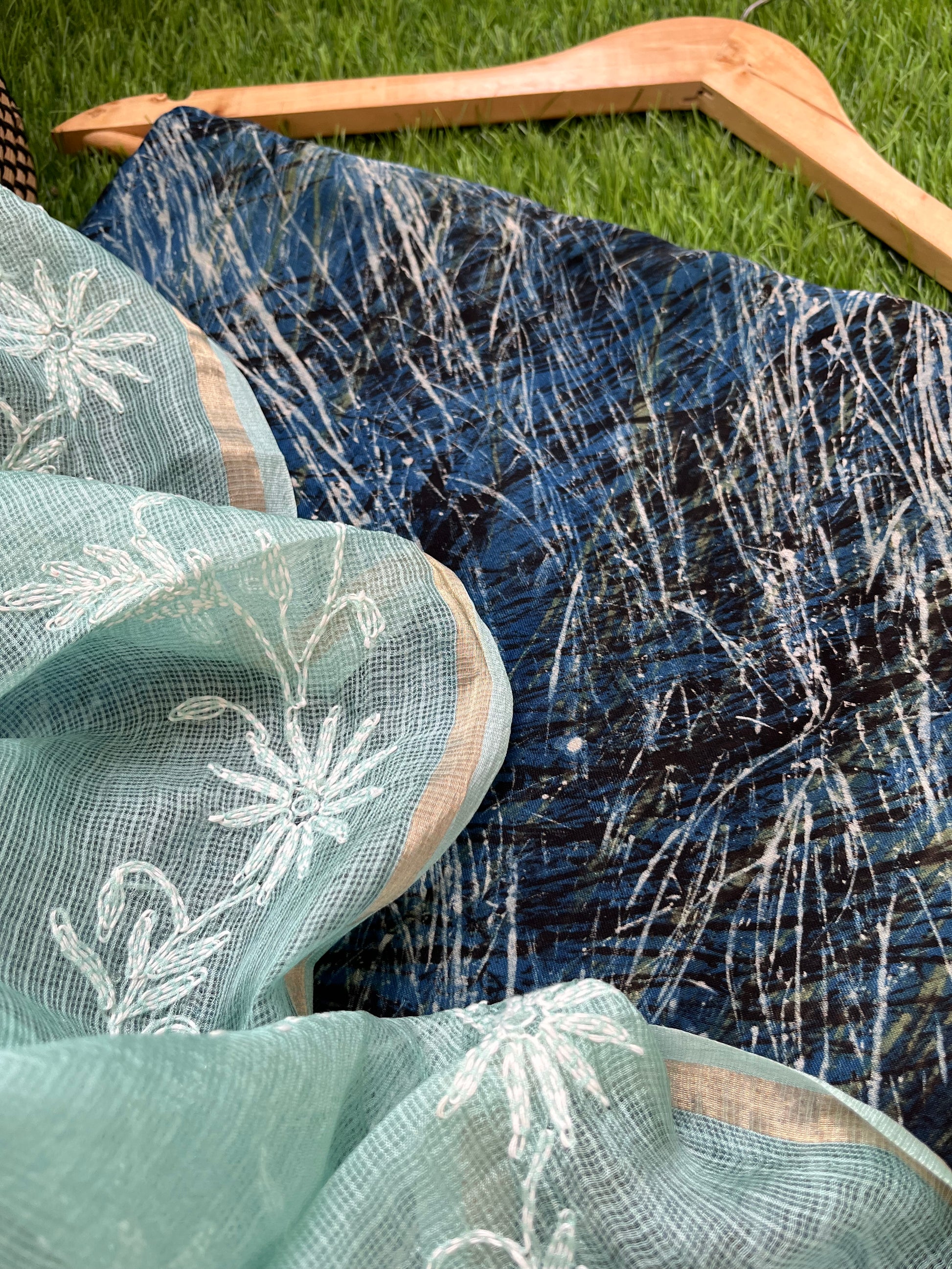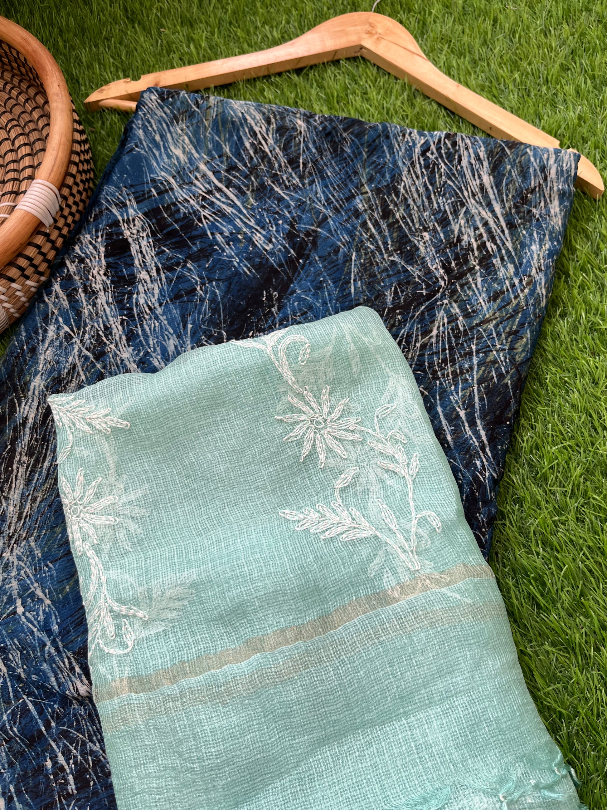 Modal block print kurta bottom fabric paired with a kota silk chikankari Dupatta