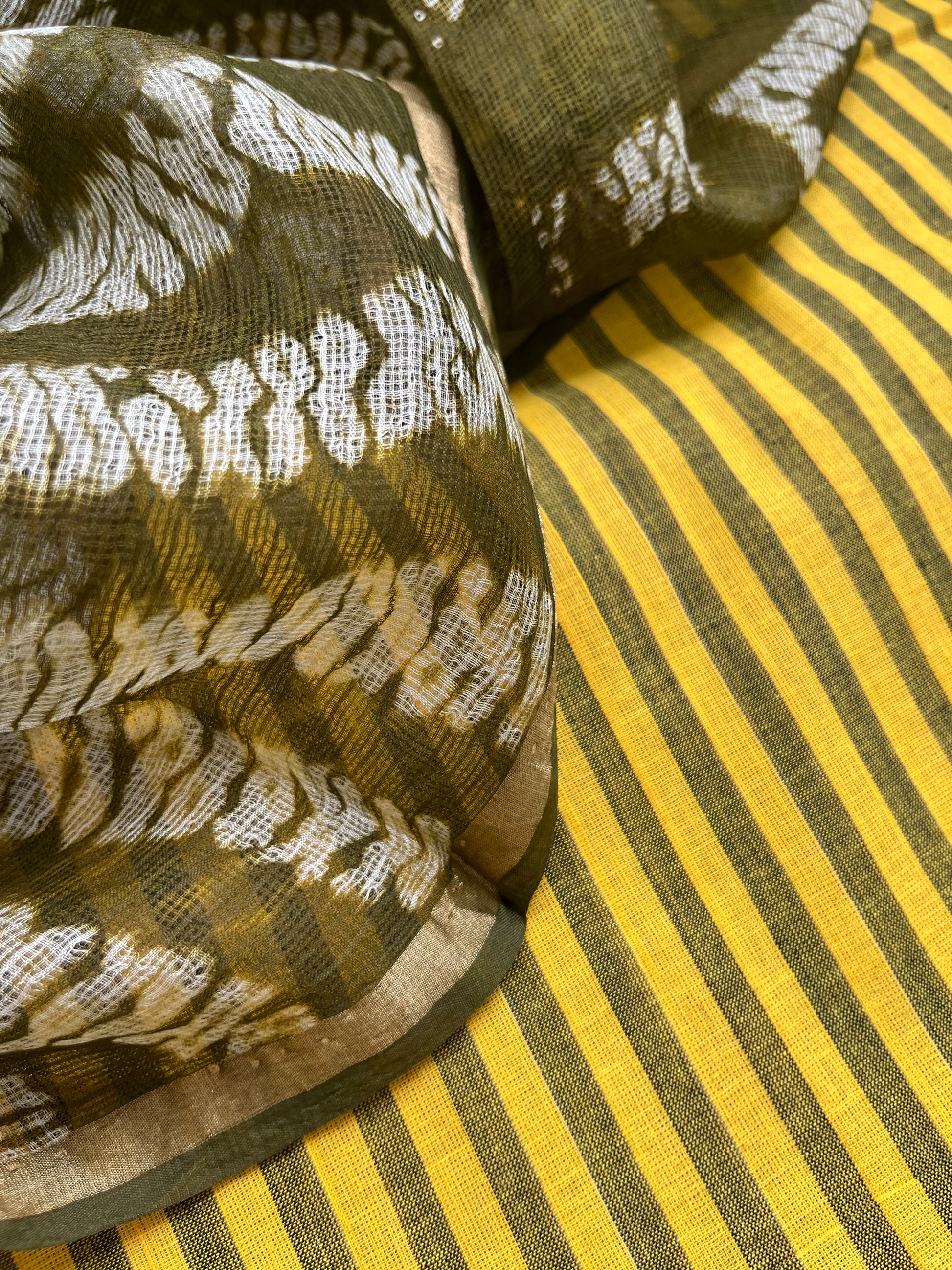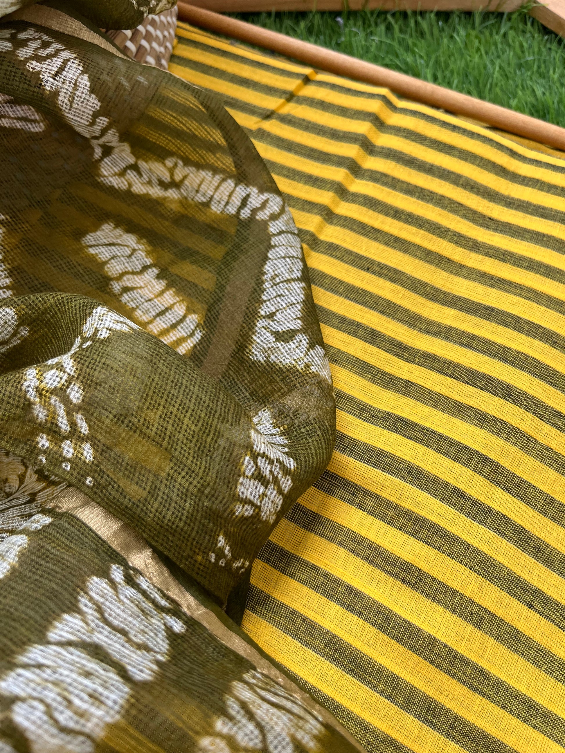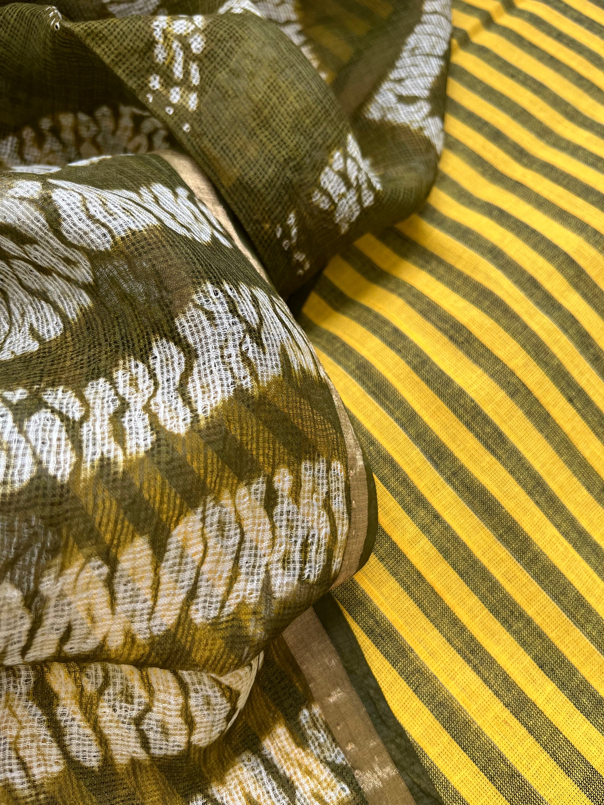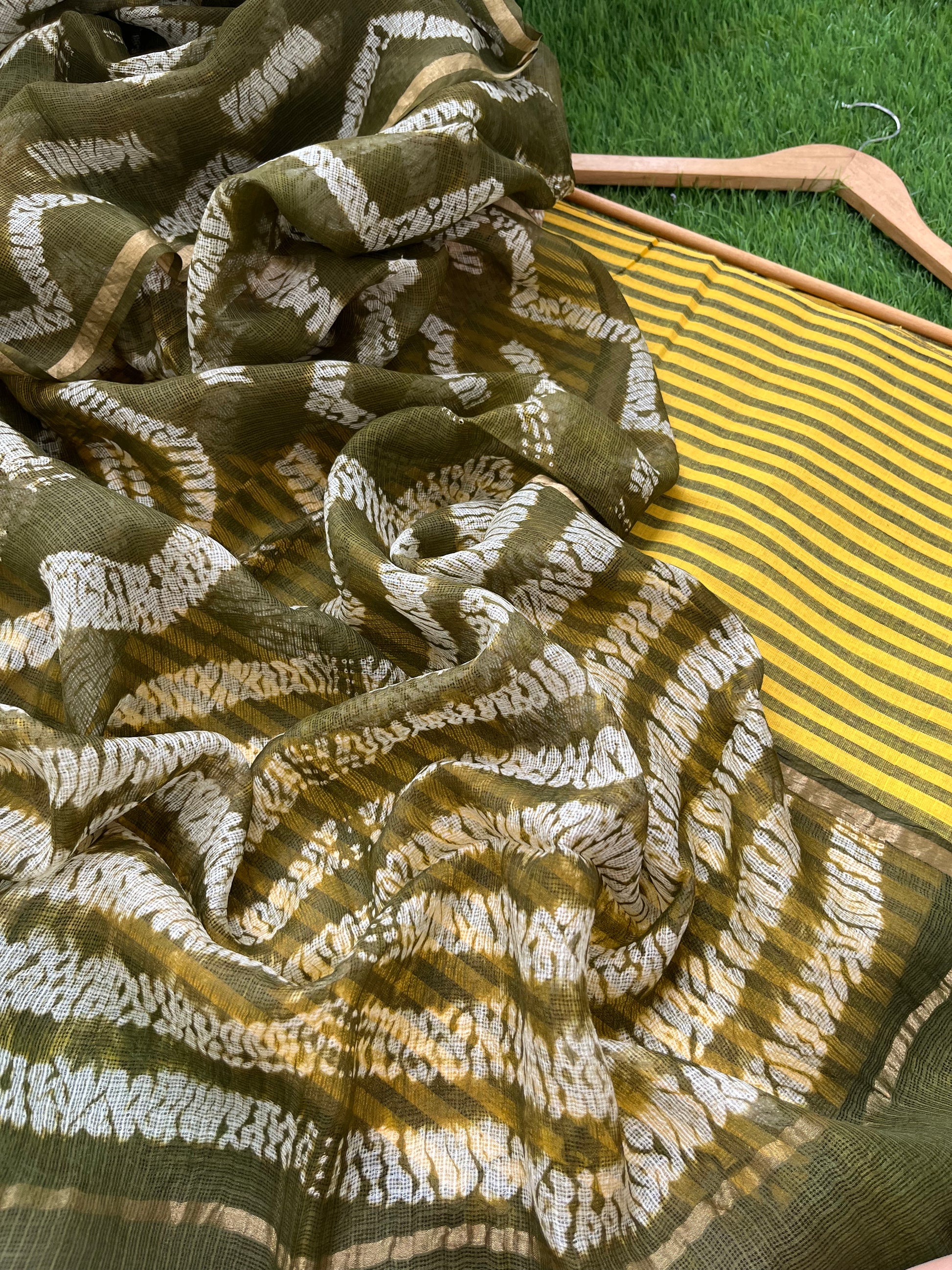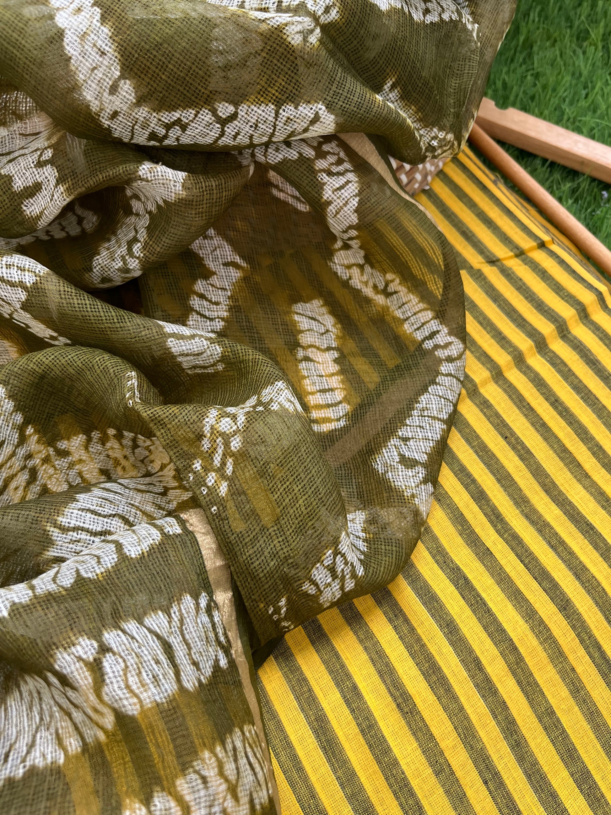 Pure kota silk shibori dupatta and cotton Kurta bottom fabric set