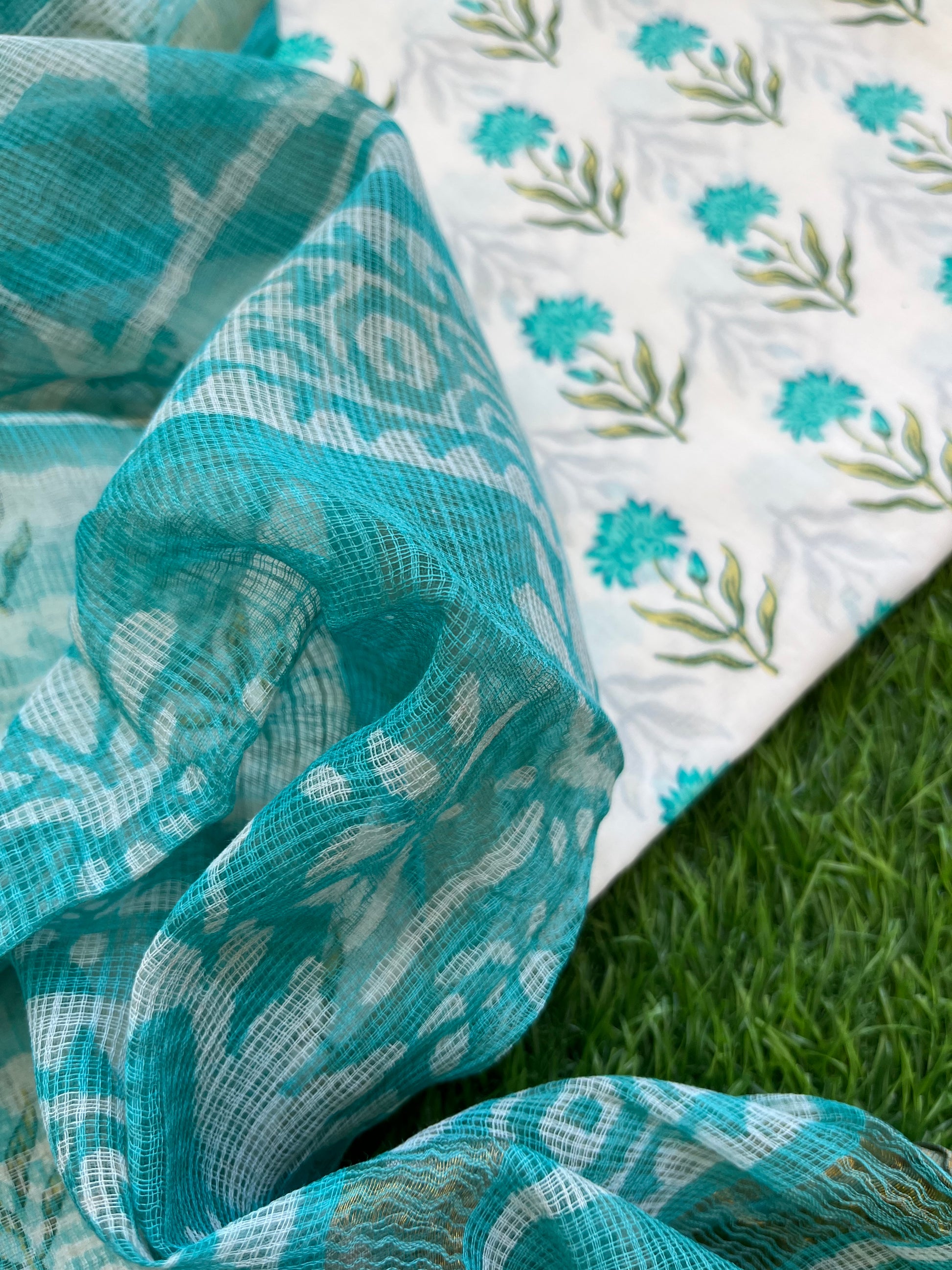 Cotton print kurta bottom fabric with kota doria dupatta …