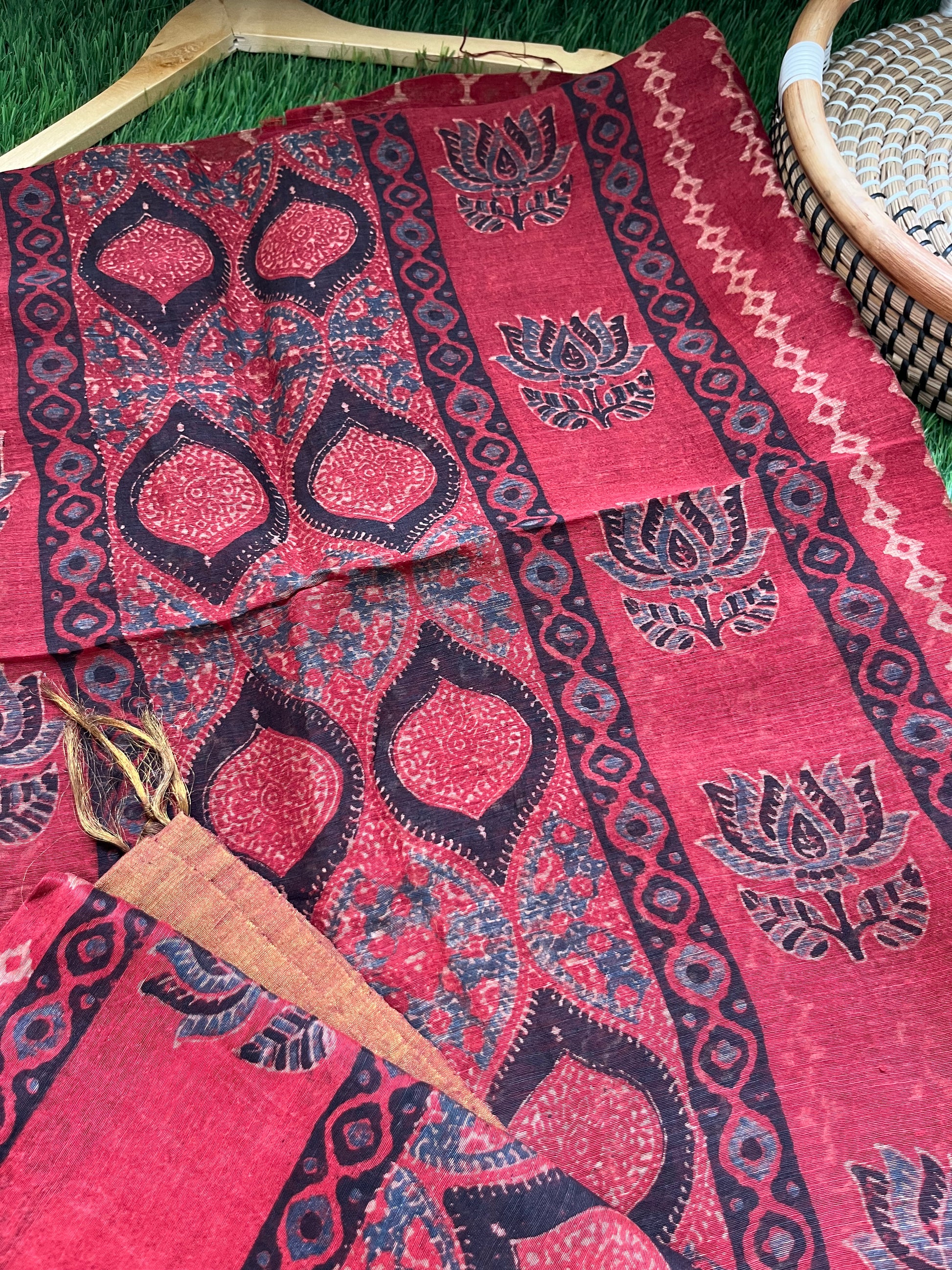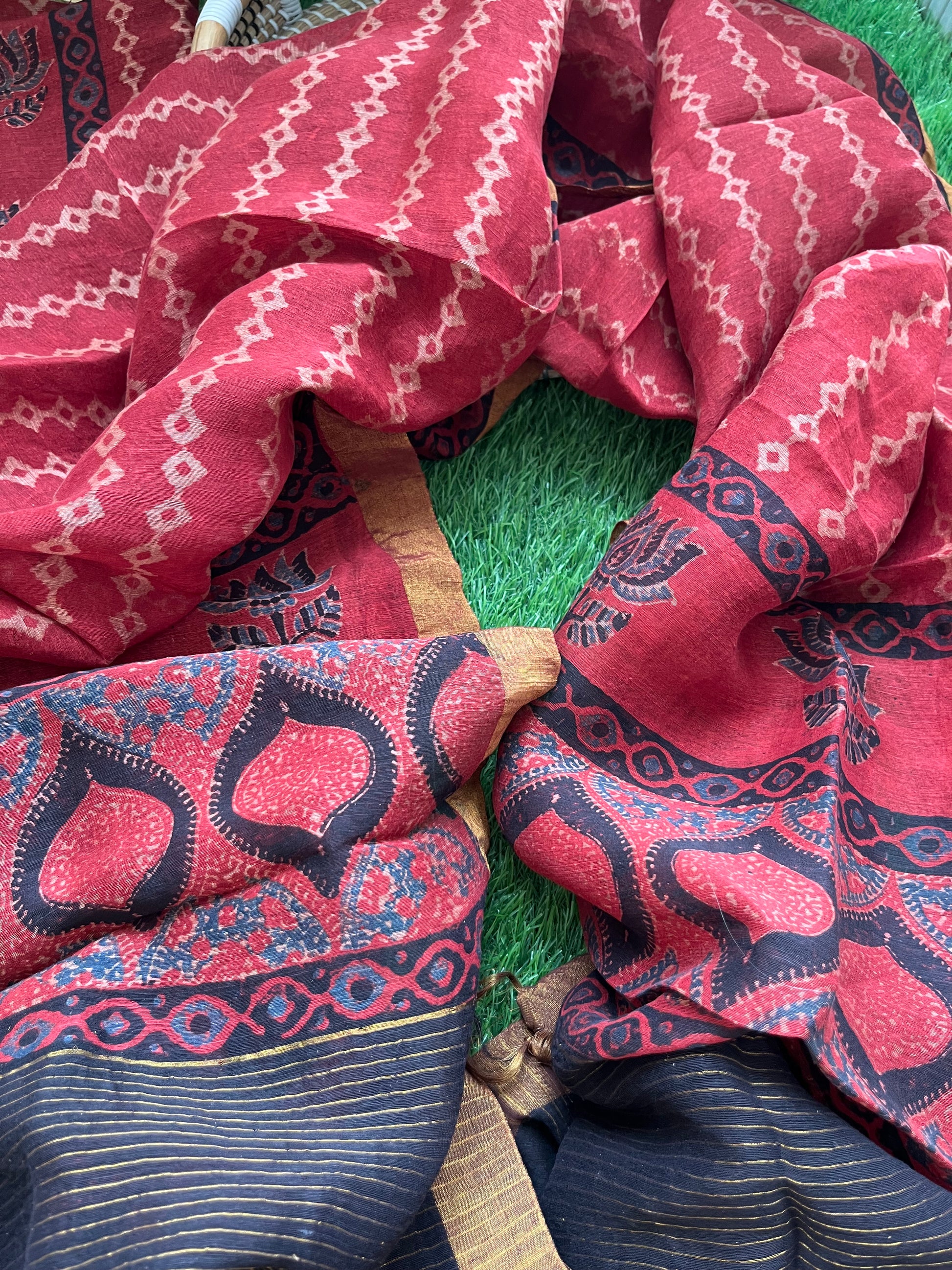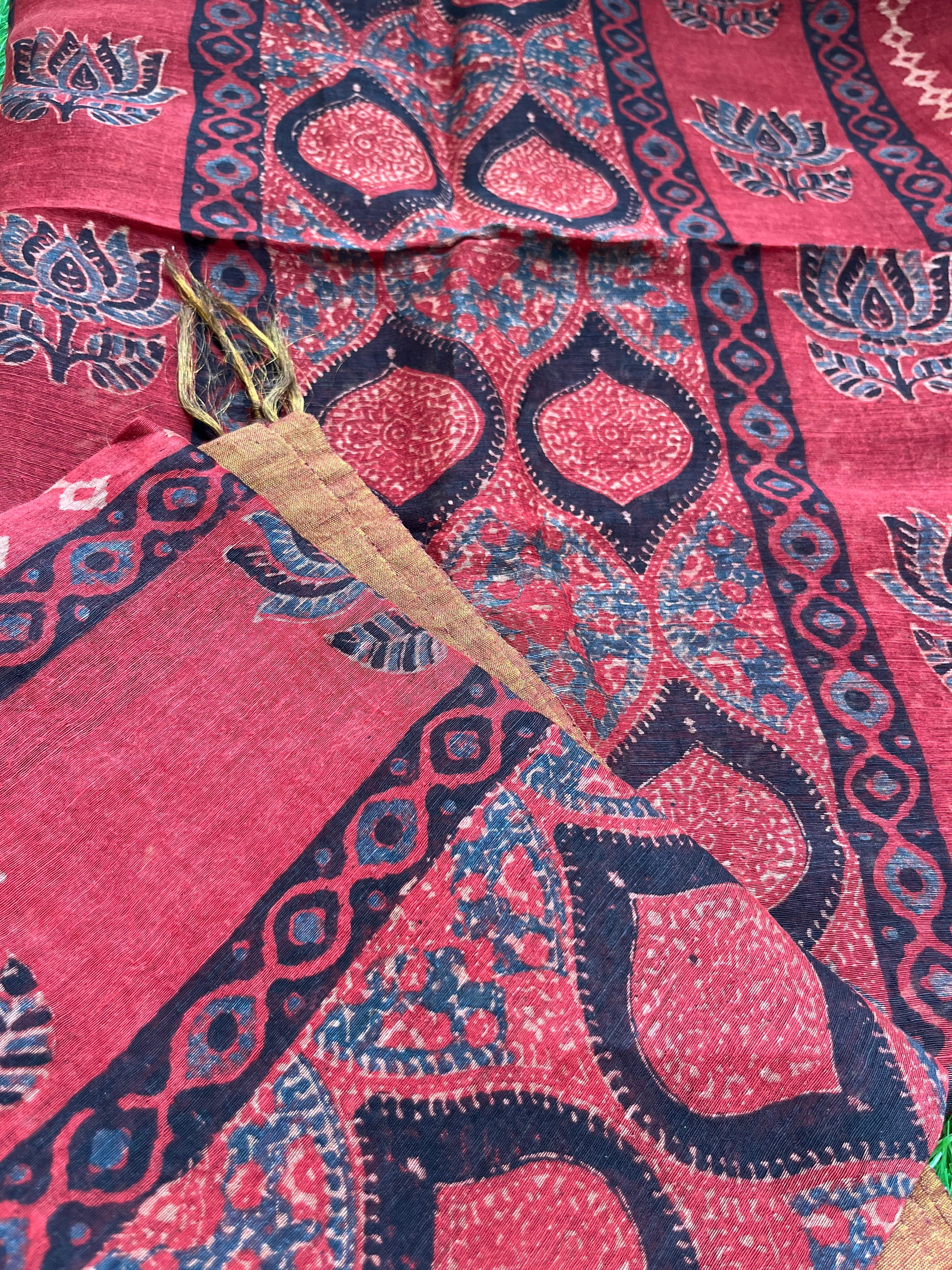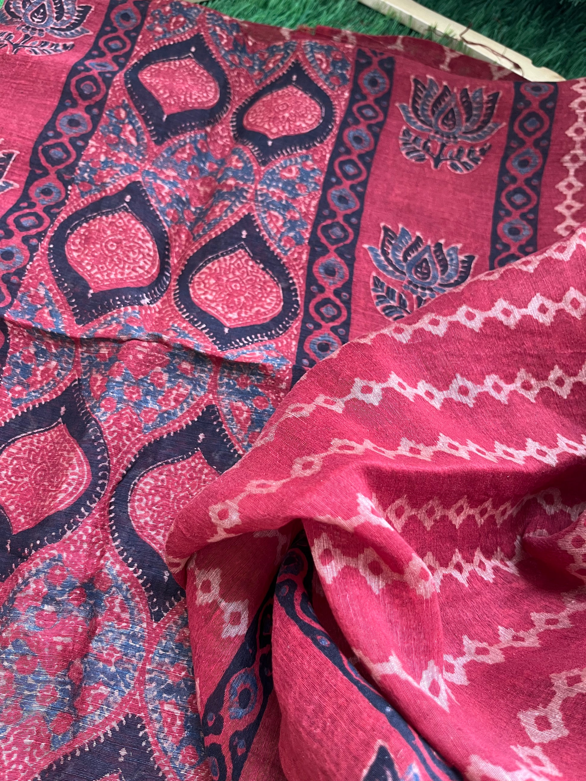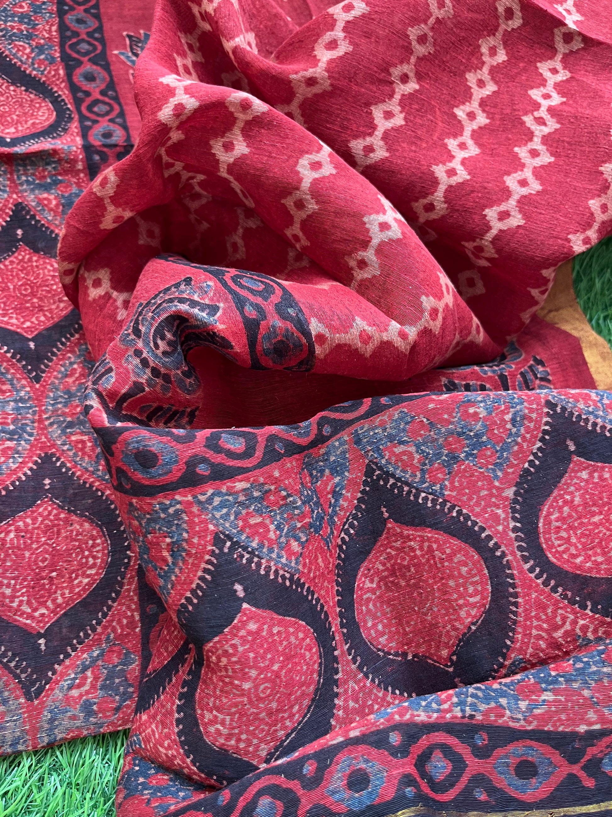 A heritage story printed in earthy tones, this linen Ajrakh kurta-dupatta set is where comfort meets culture.
