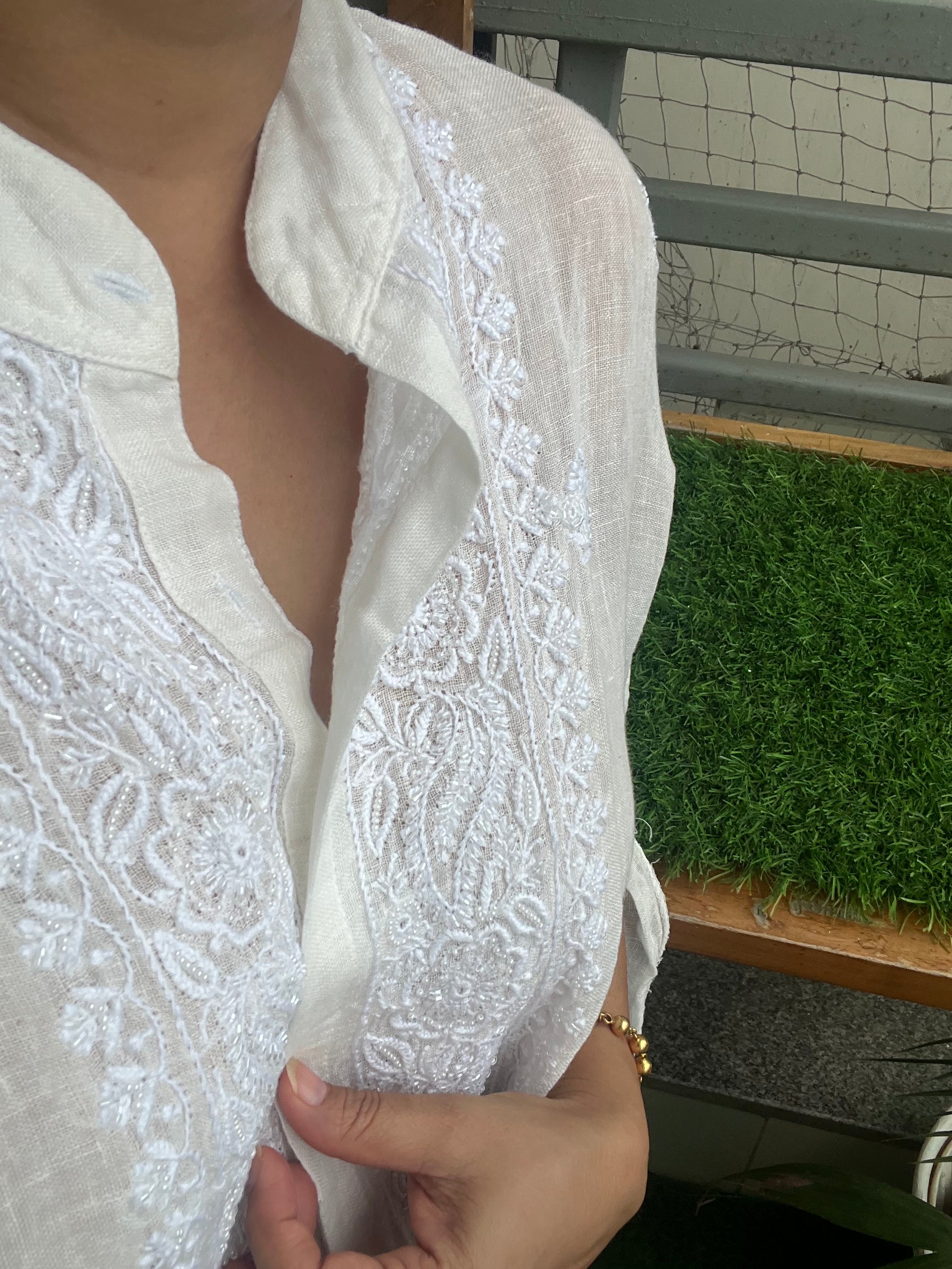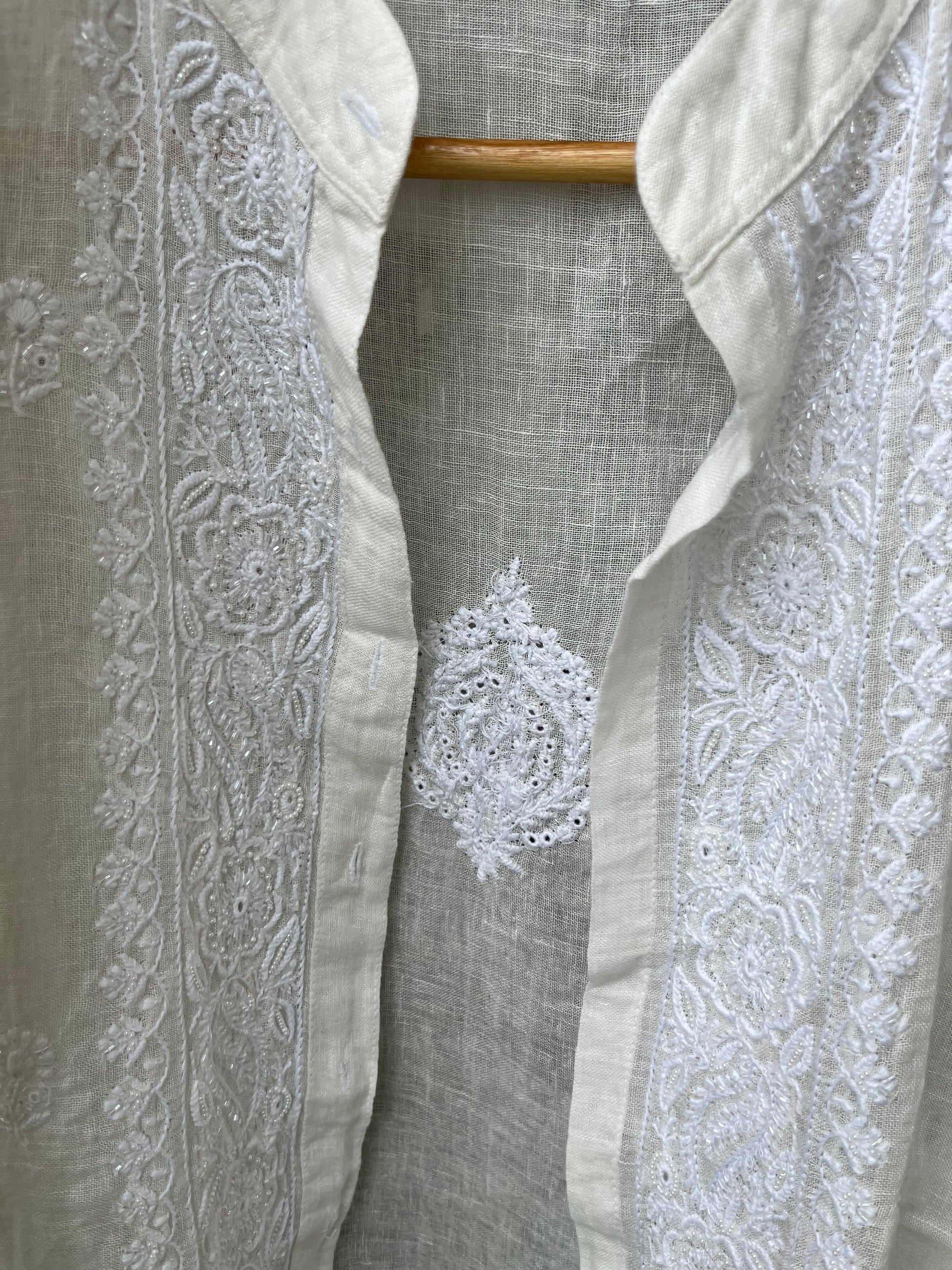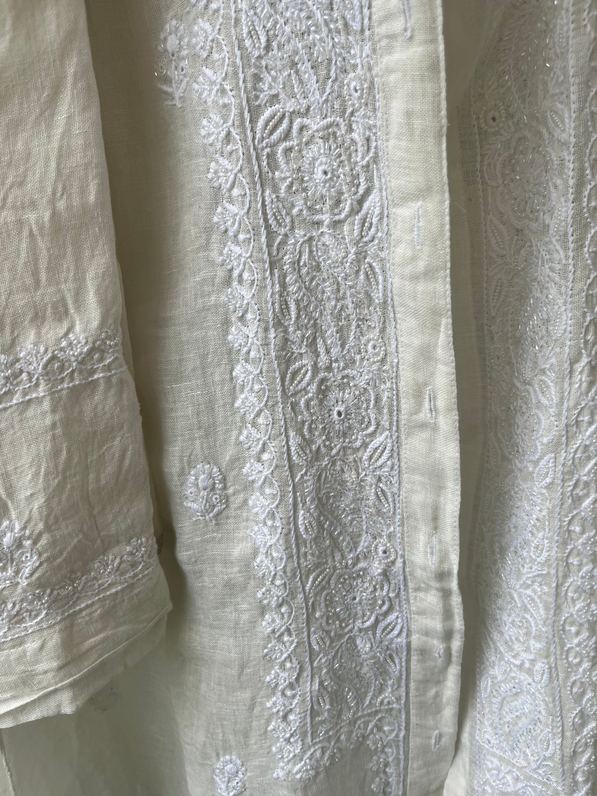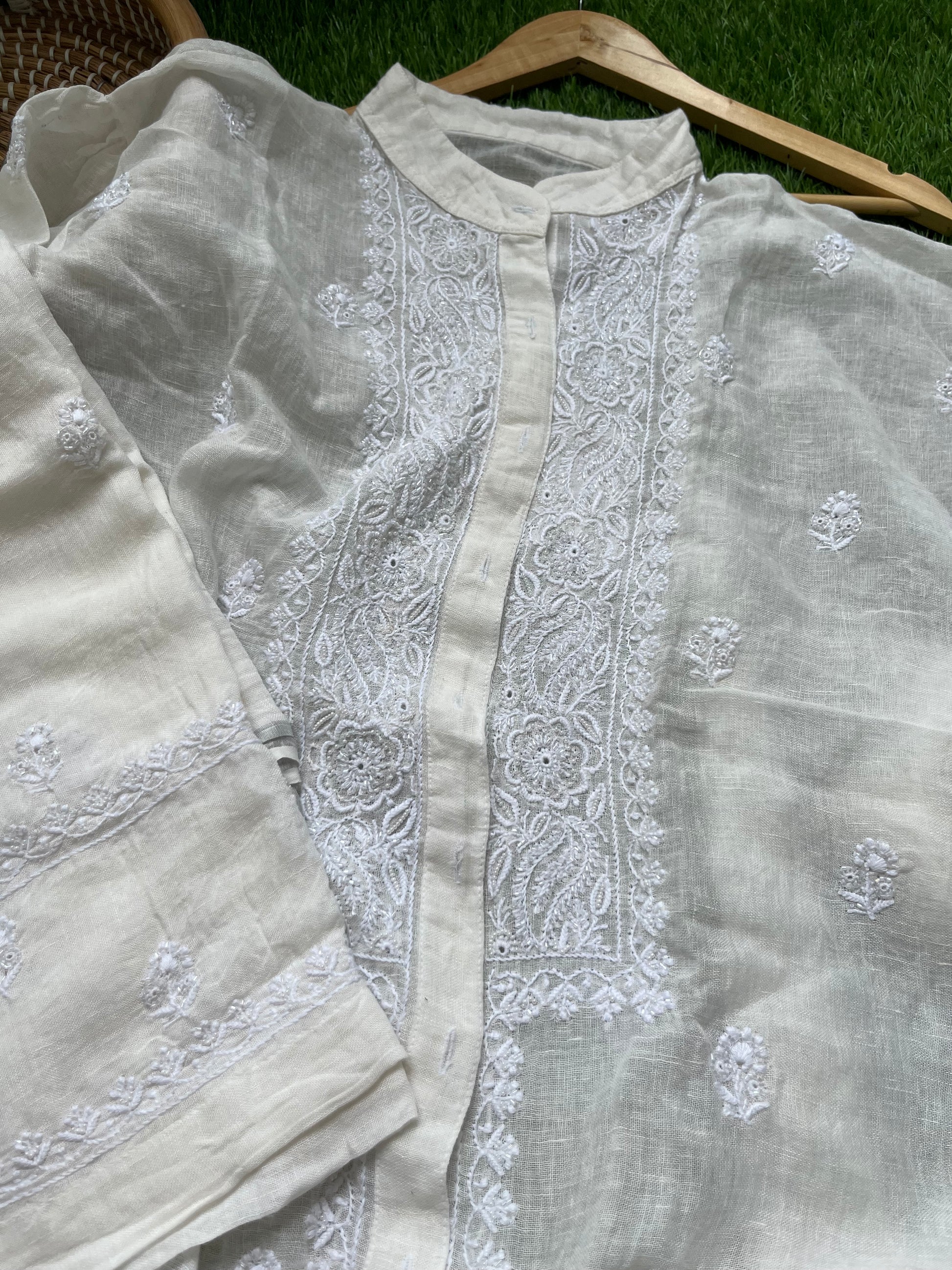 Linen chikan shirt and a-bottom-coord set