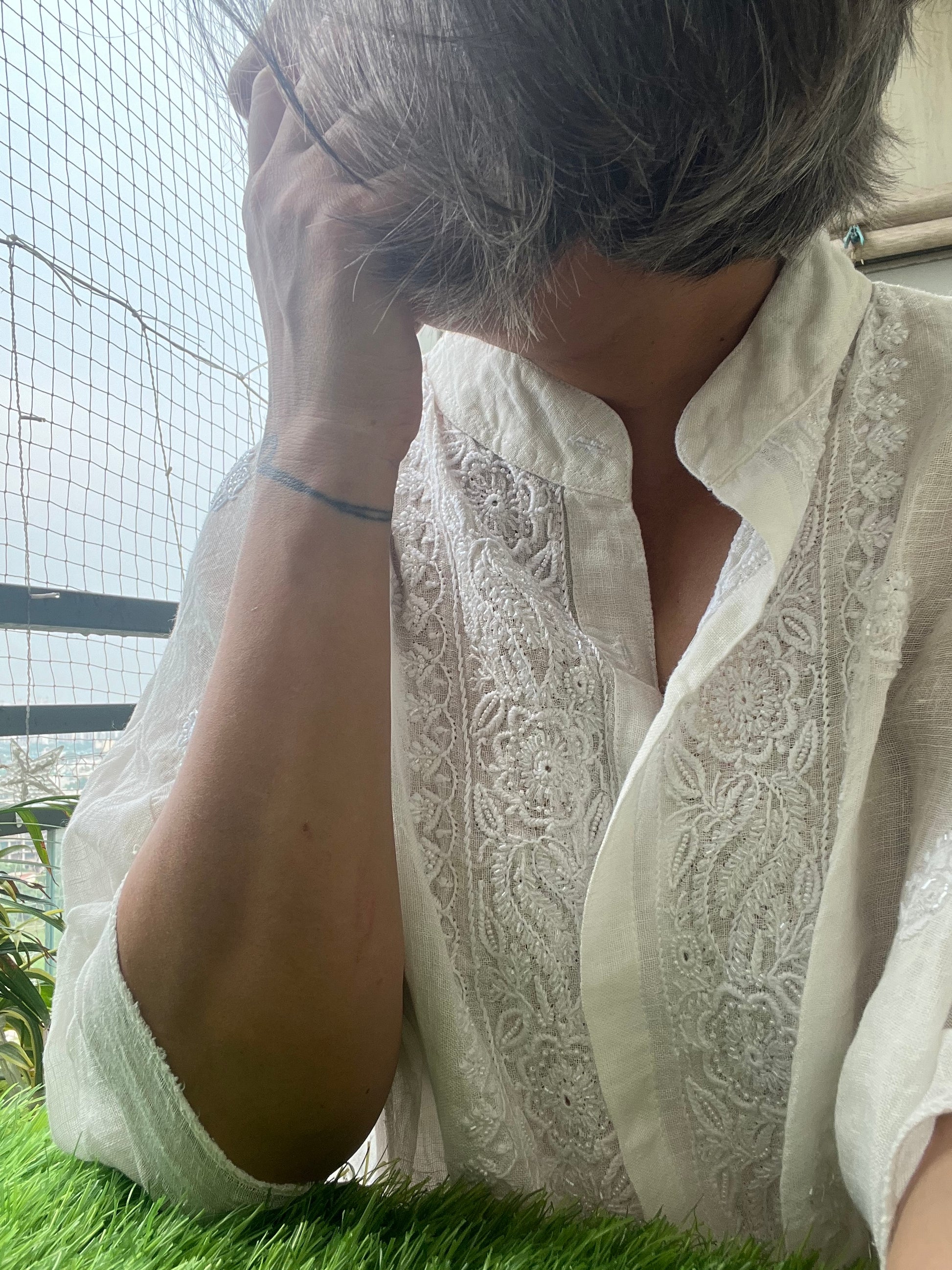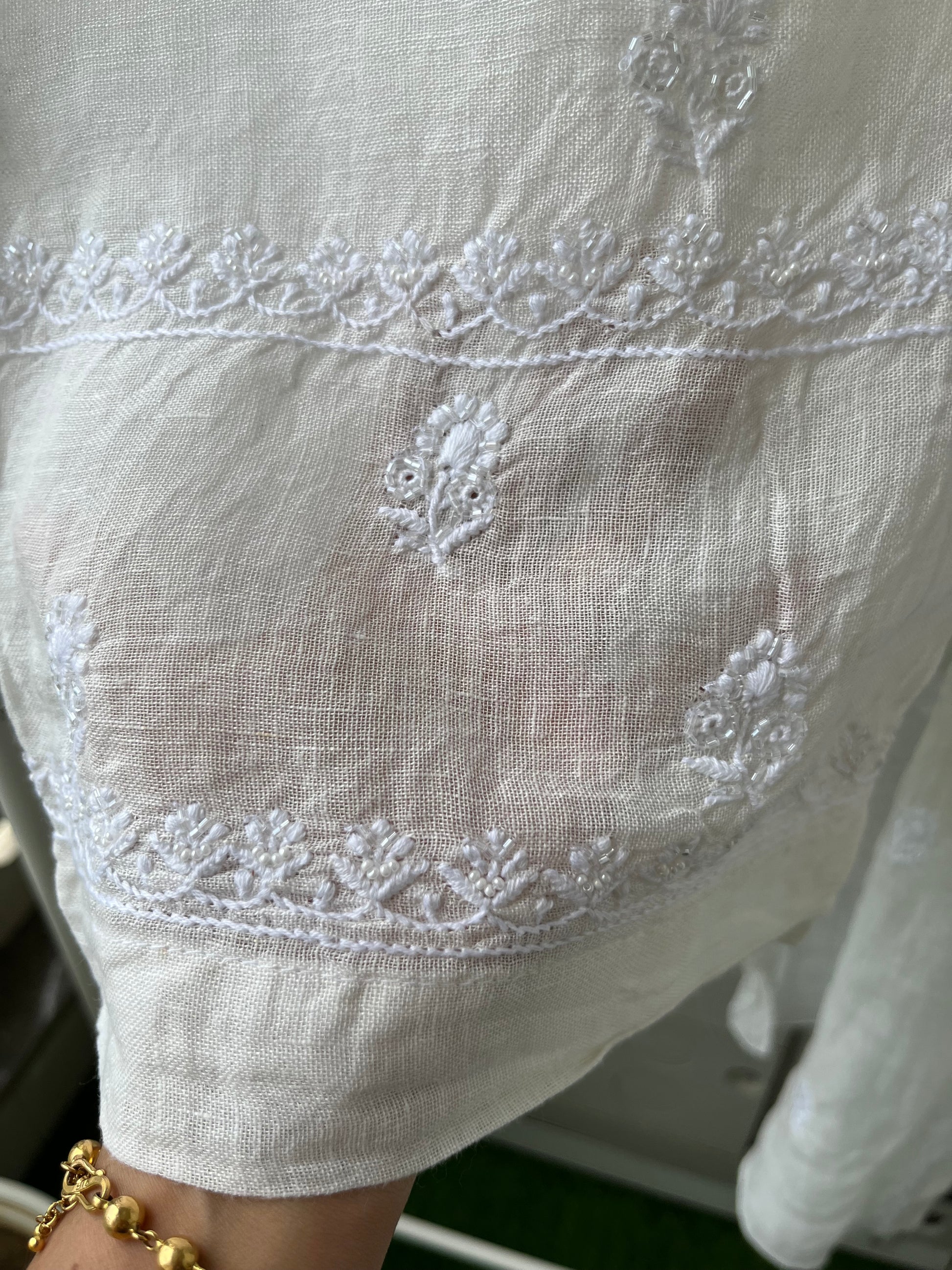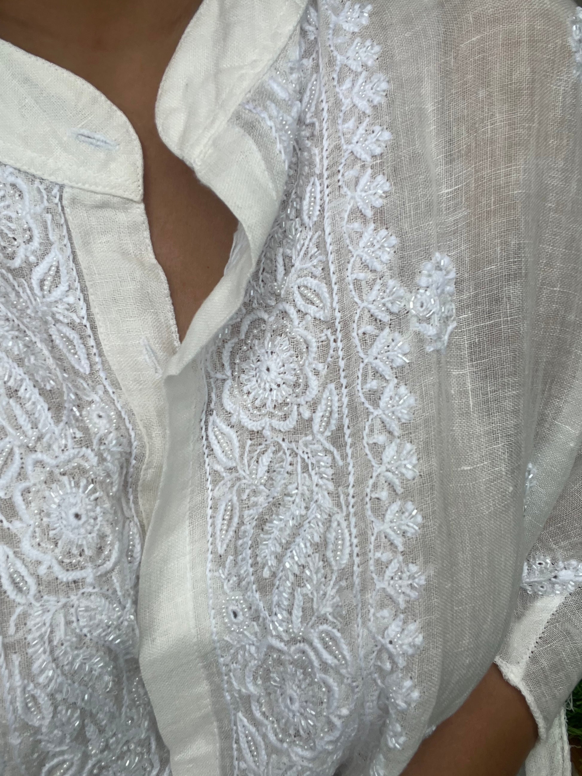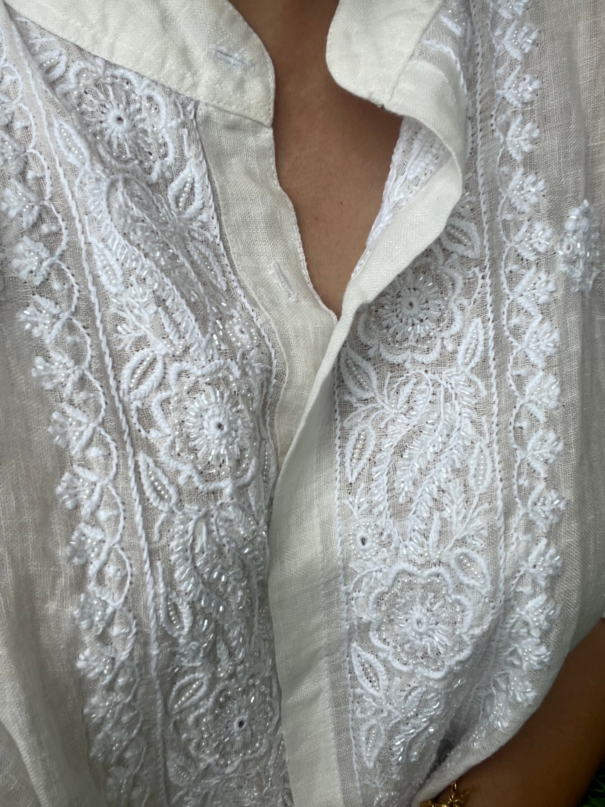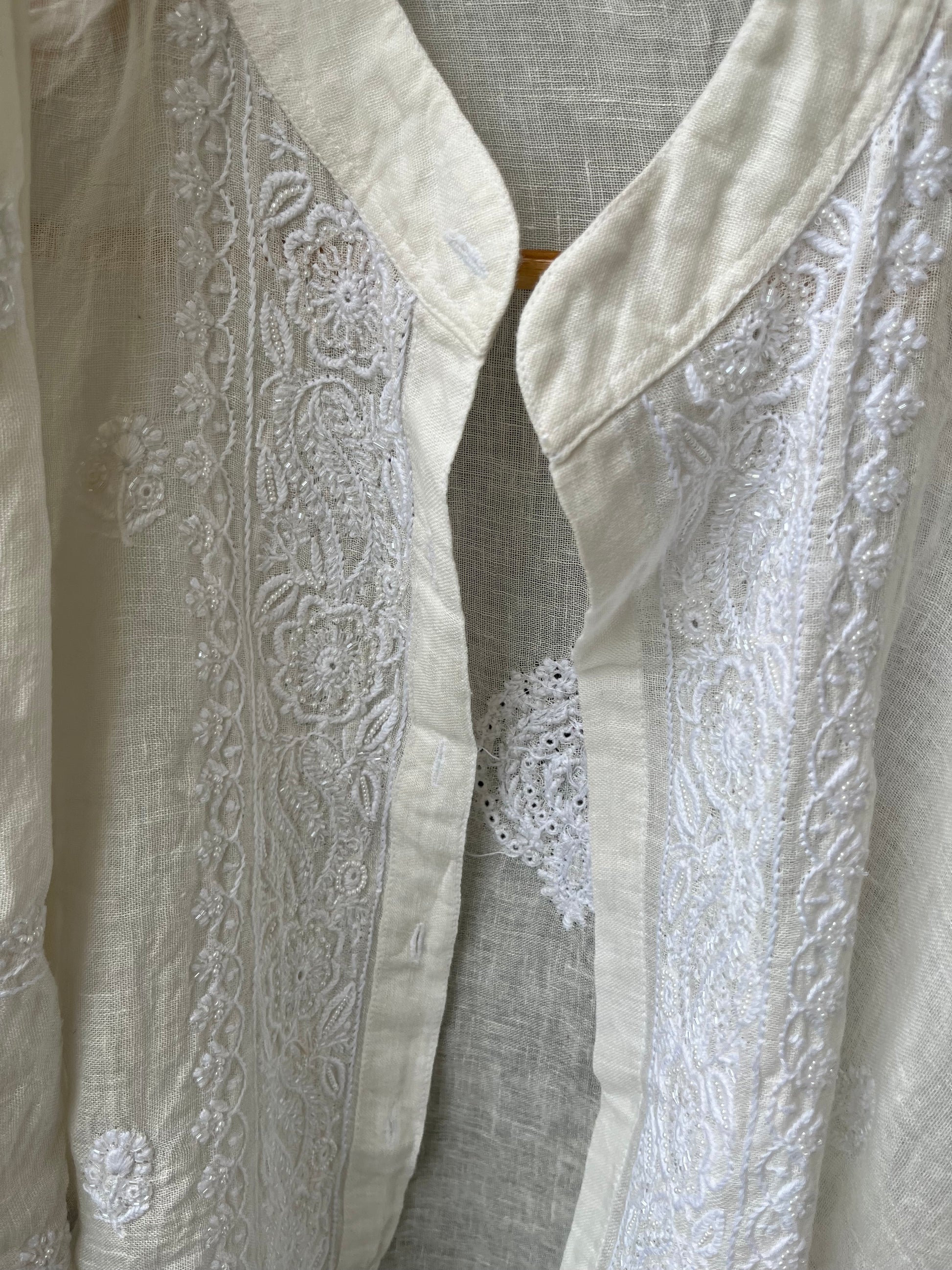 Linen chikan shirt and a-bottom-coord set