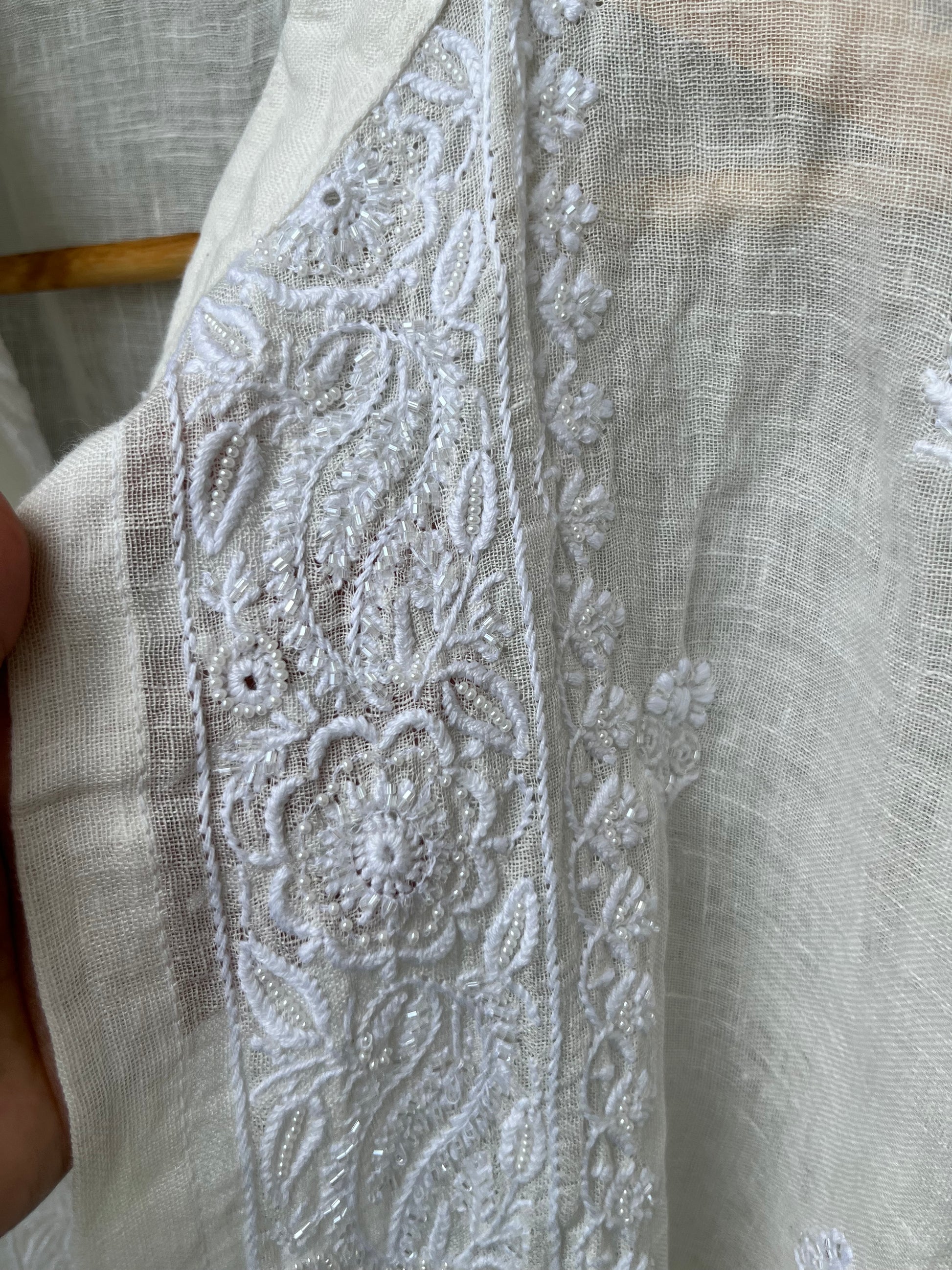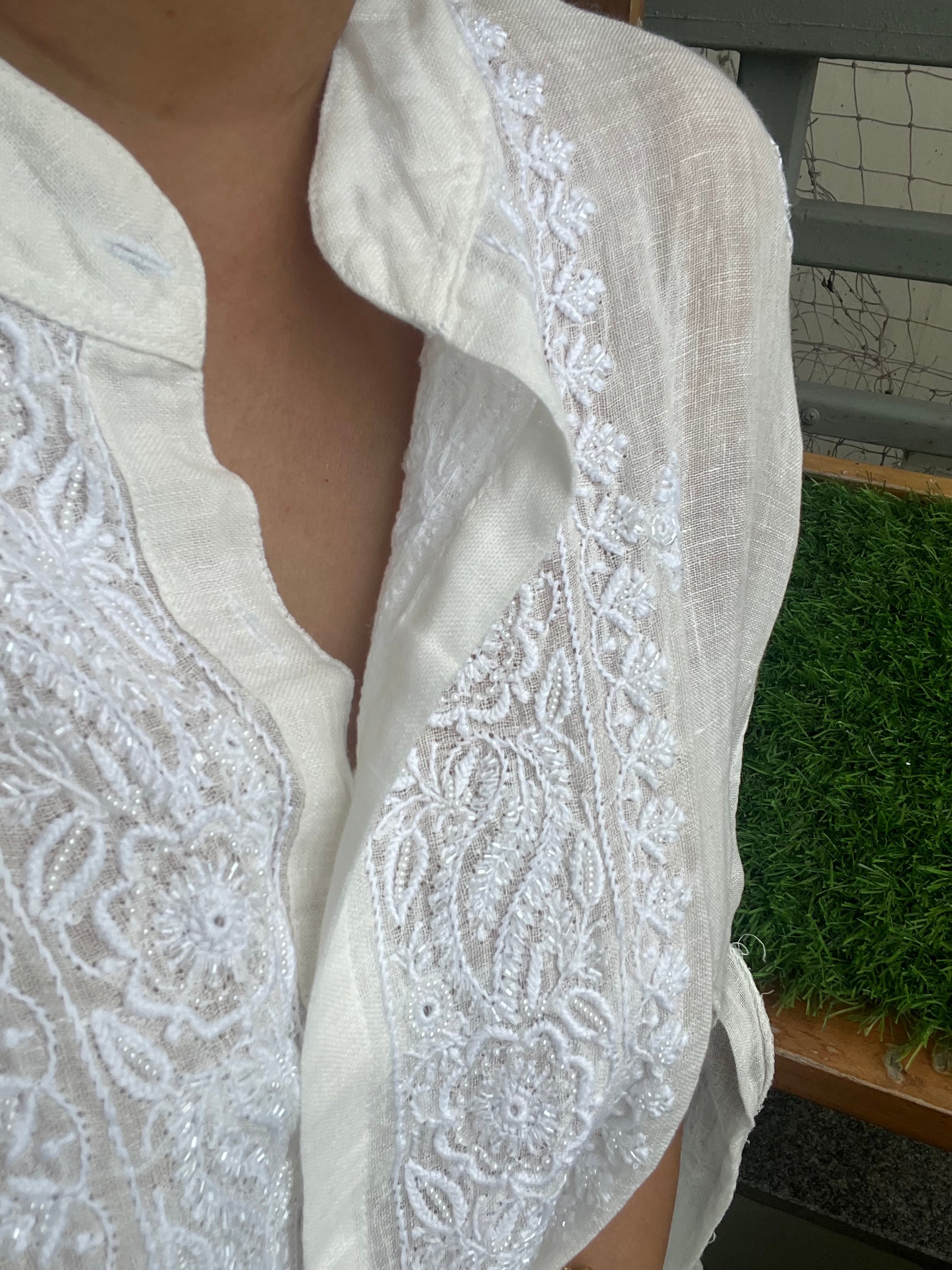 Linen semi stitched chikan shirt and a bottom coord set