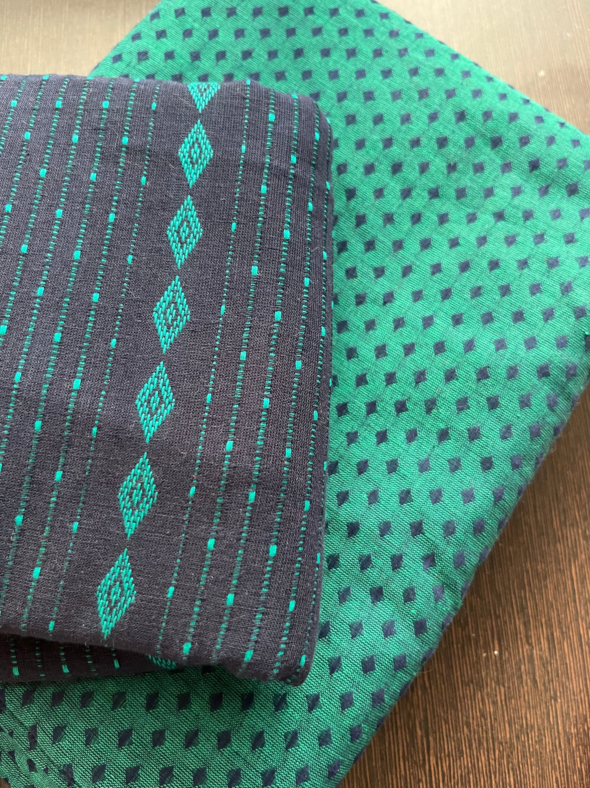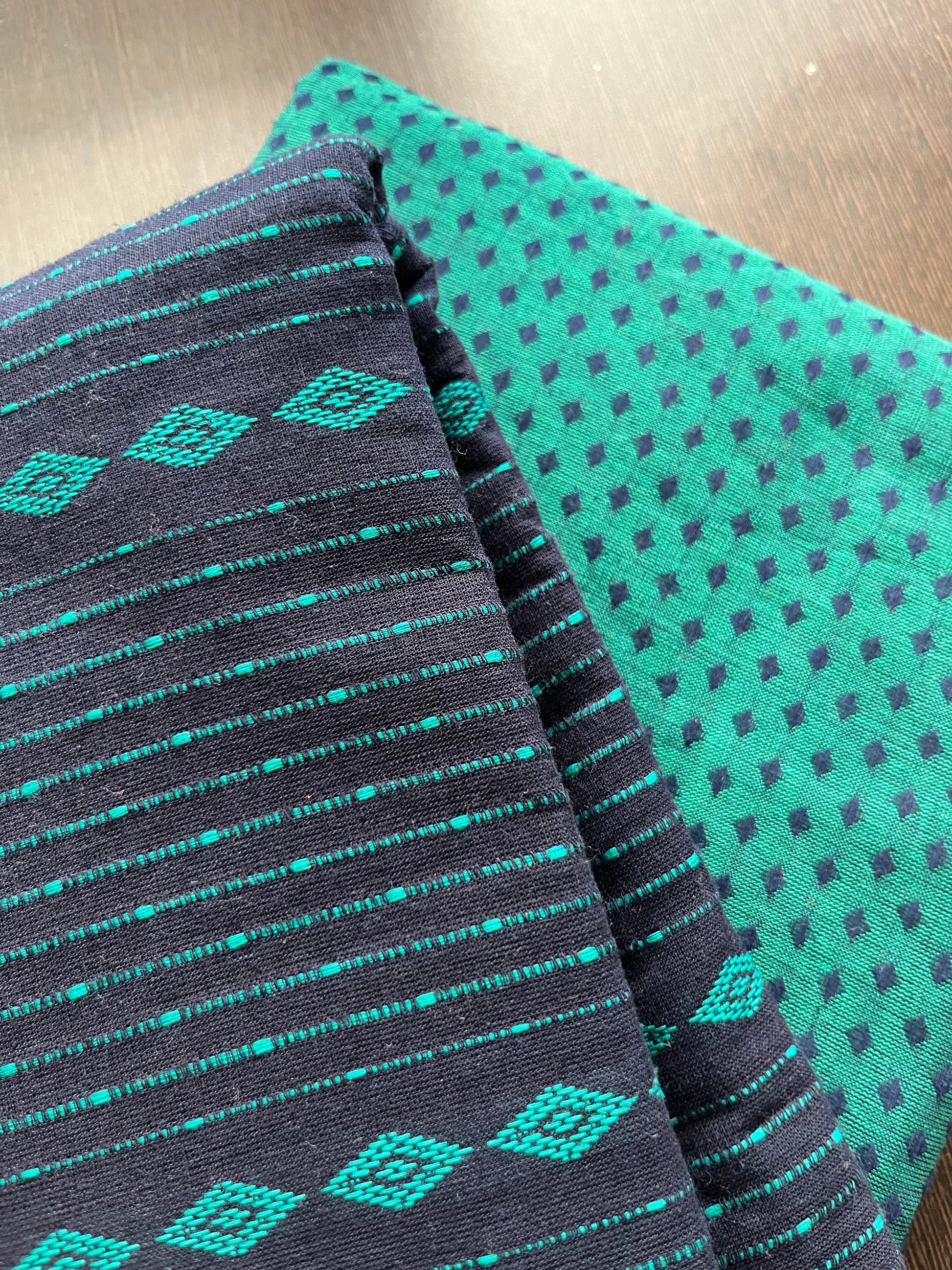 -Hand block fabrics also tend to shrink and bleed out excess color in initial washes so Wash fabrics separately