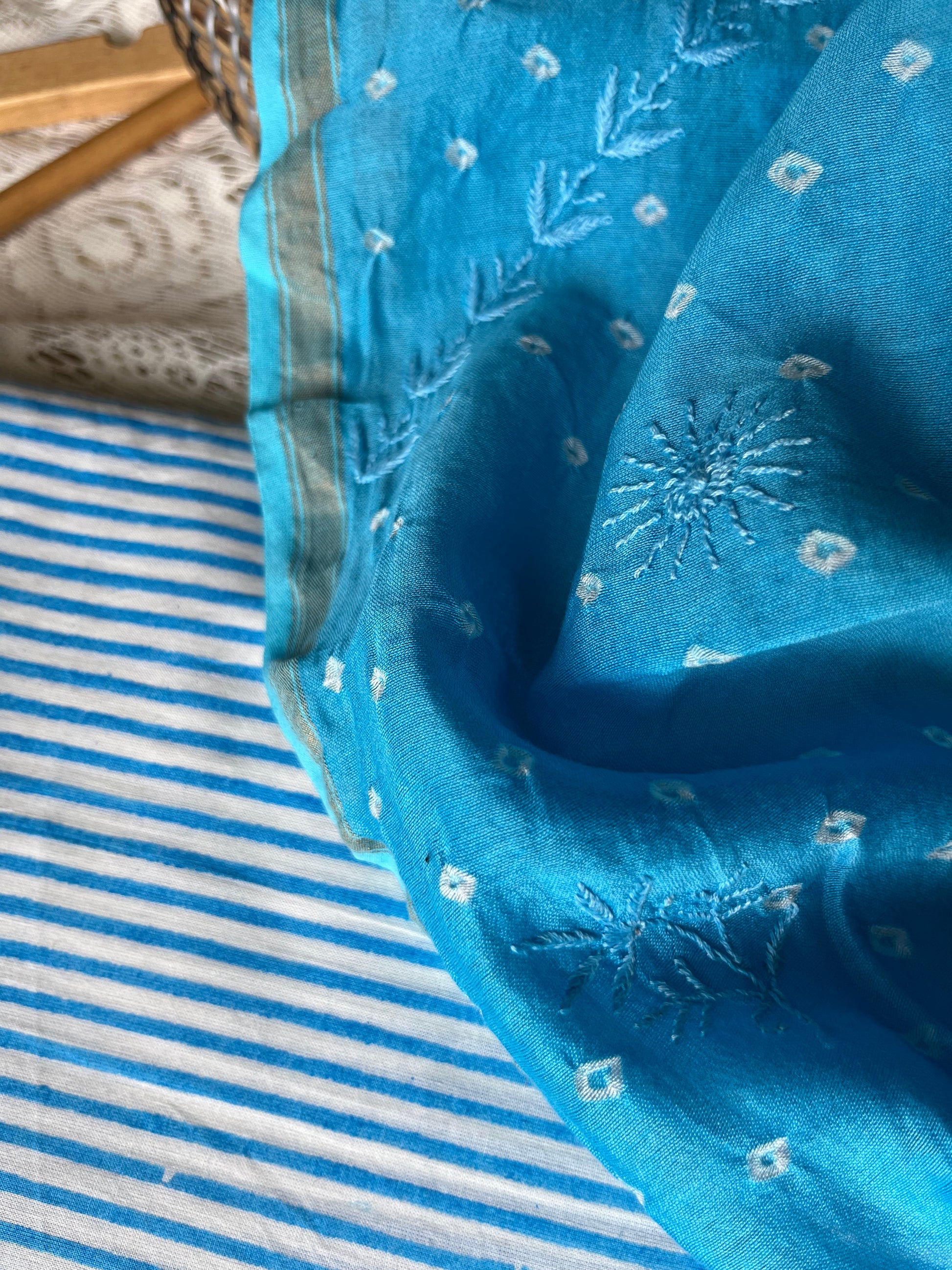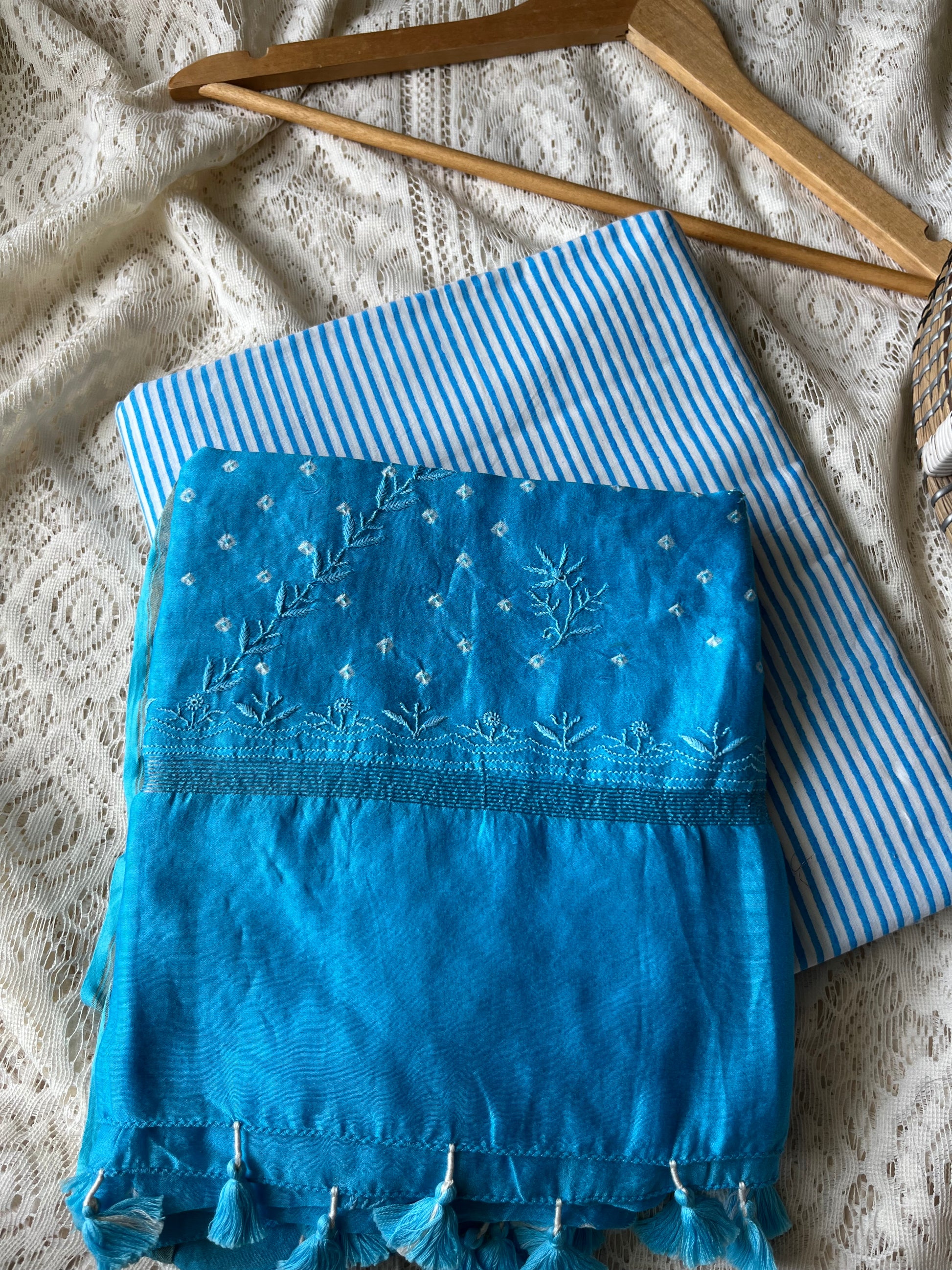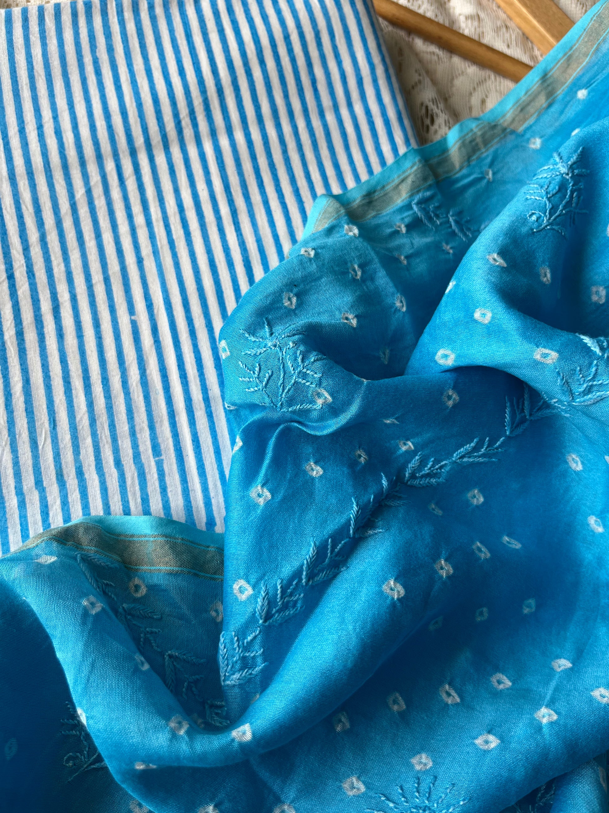 “Cotton striped kurta bottom fabric chikankari dupatta