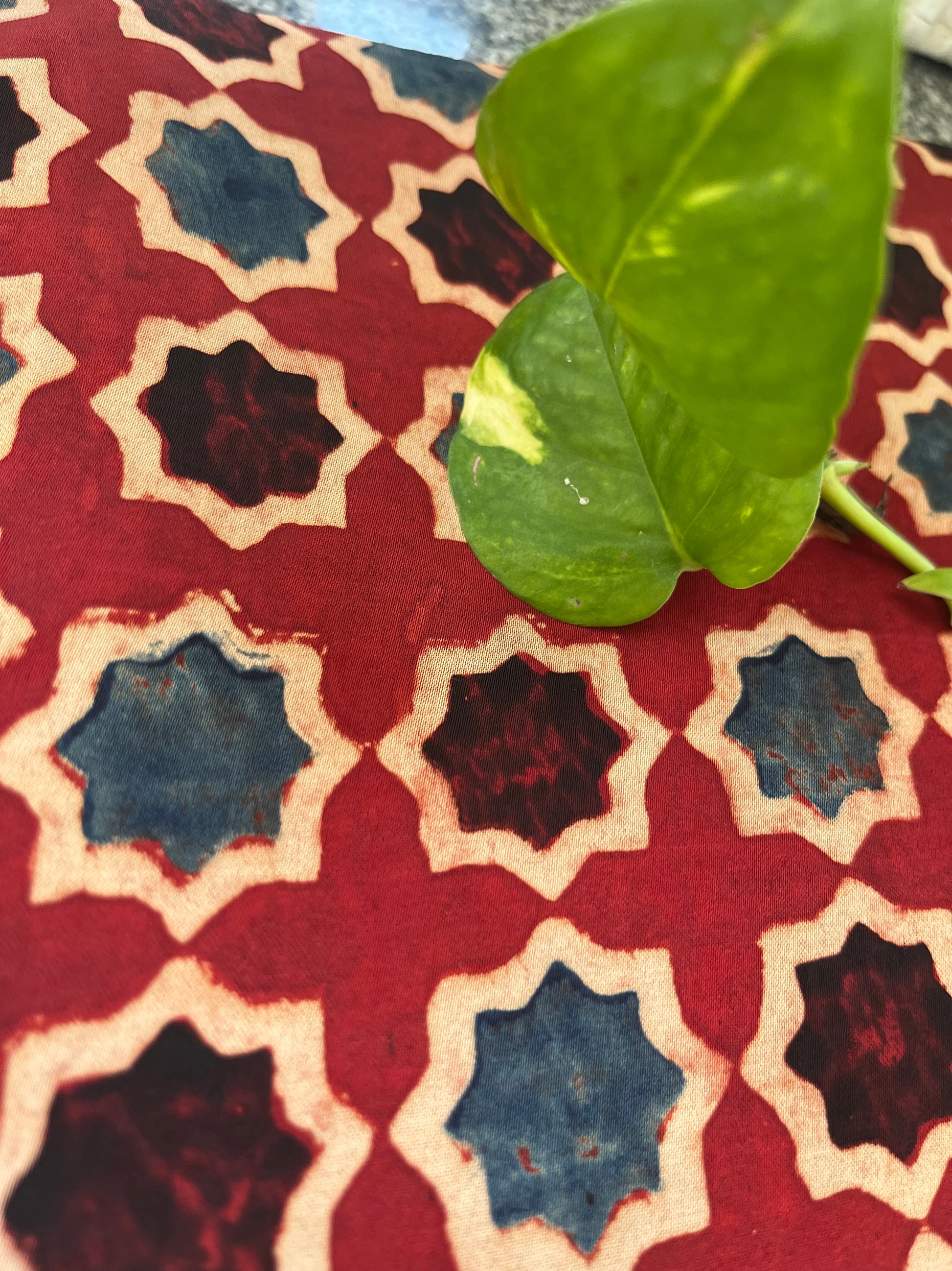 -Hand block fabrics also tend to shrink and bleed out excess color in initial washes so Wash fabrics separately