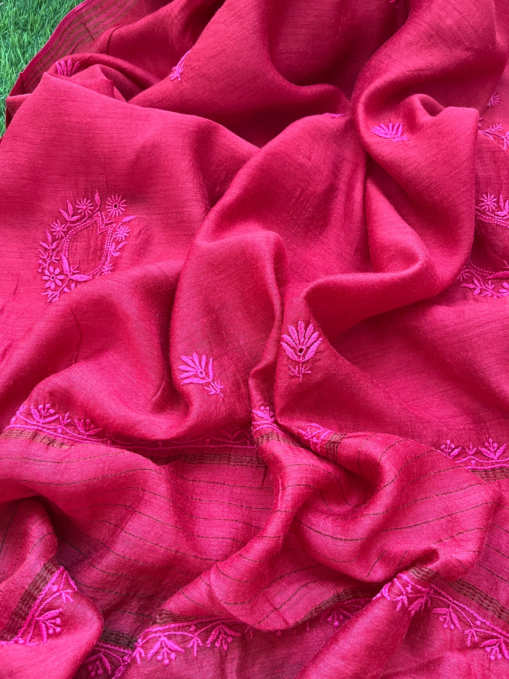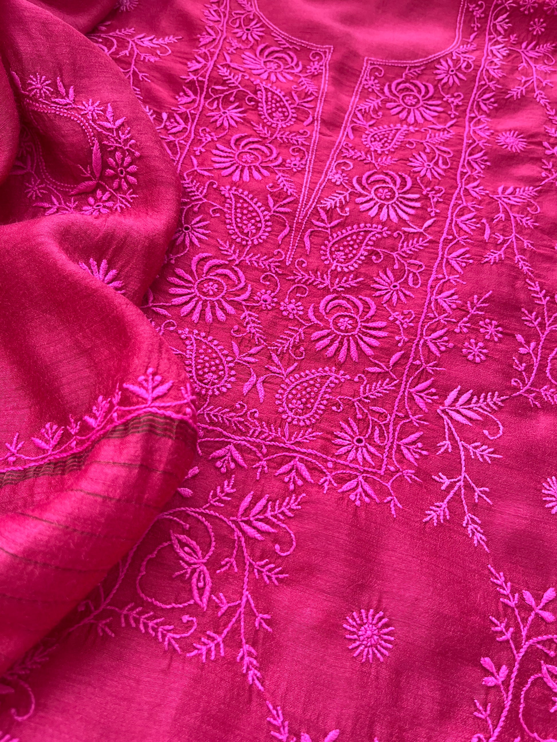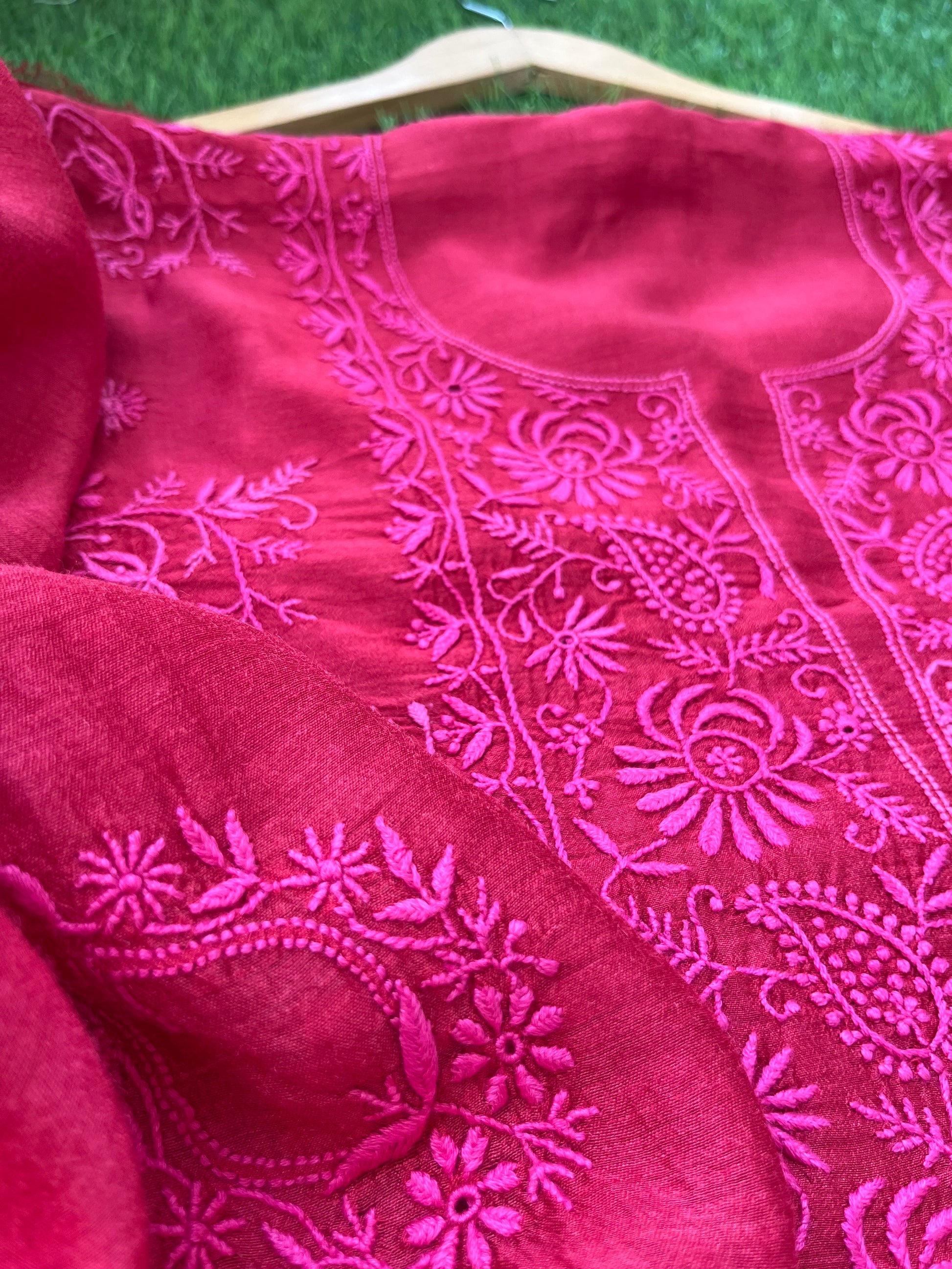 Munga silk chikankari kurta dupatta. Kurta has work all over front back has a boota at back