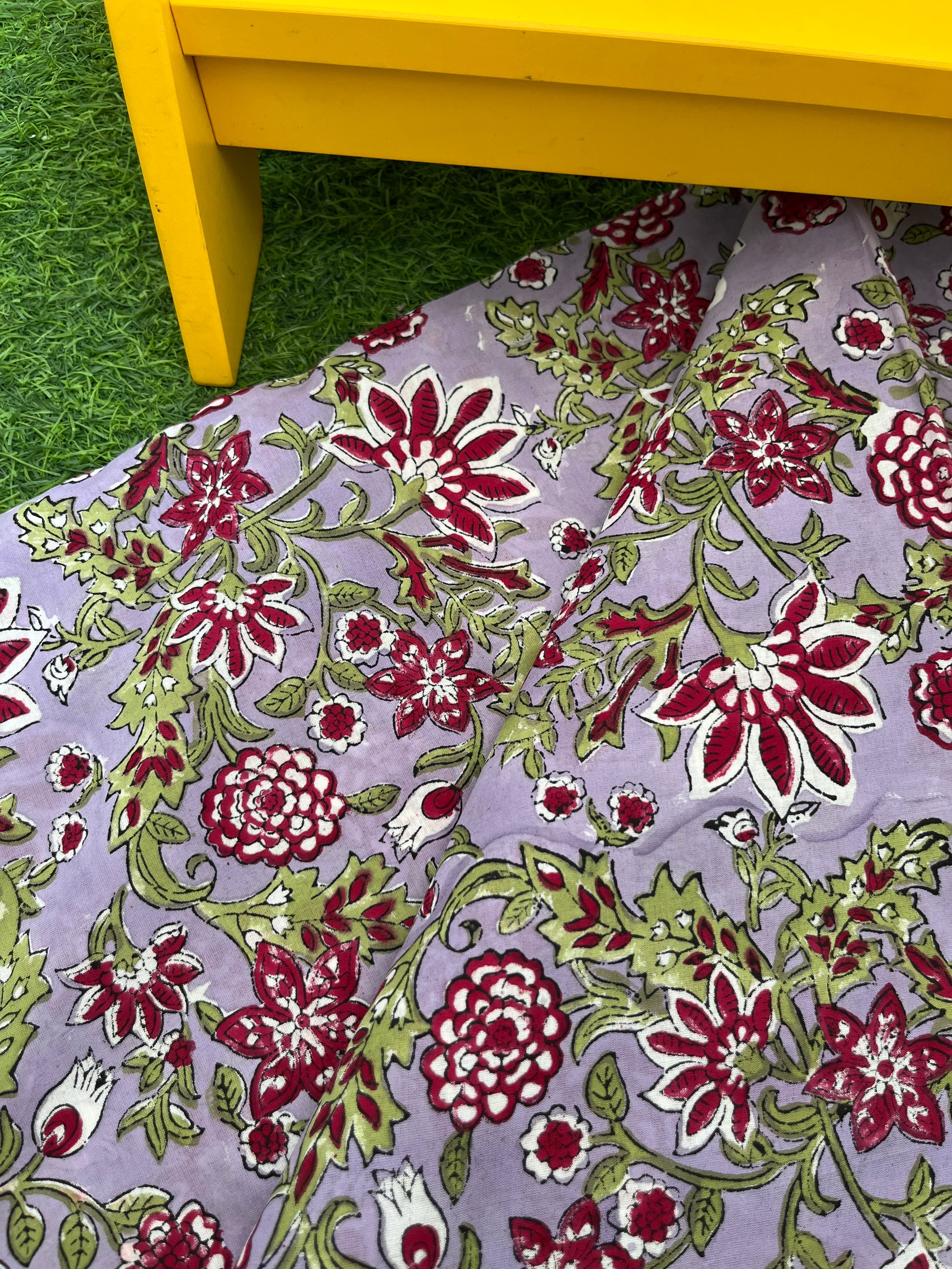 -Hand block fabrics also tend to shrink and bleed out excess color in initial washes so Wash fabrics separately