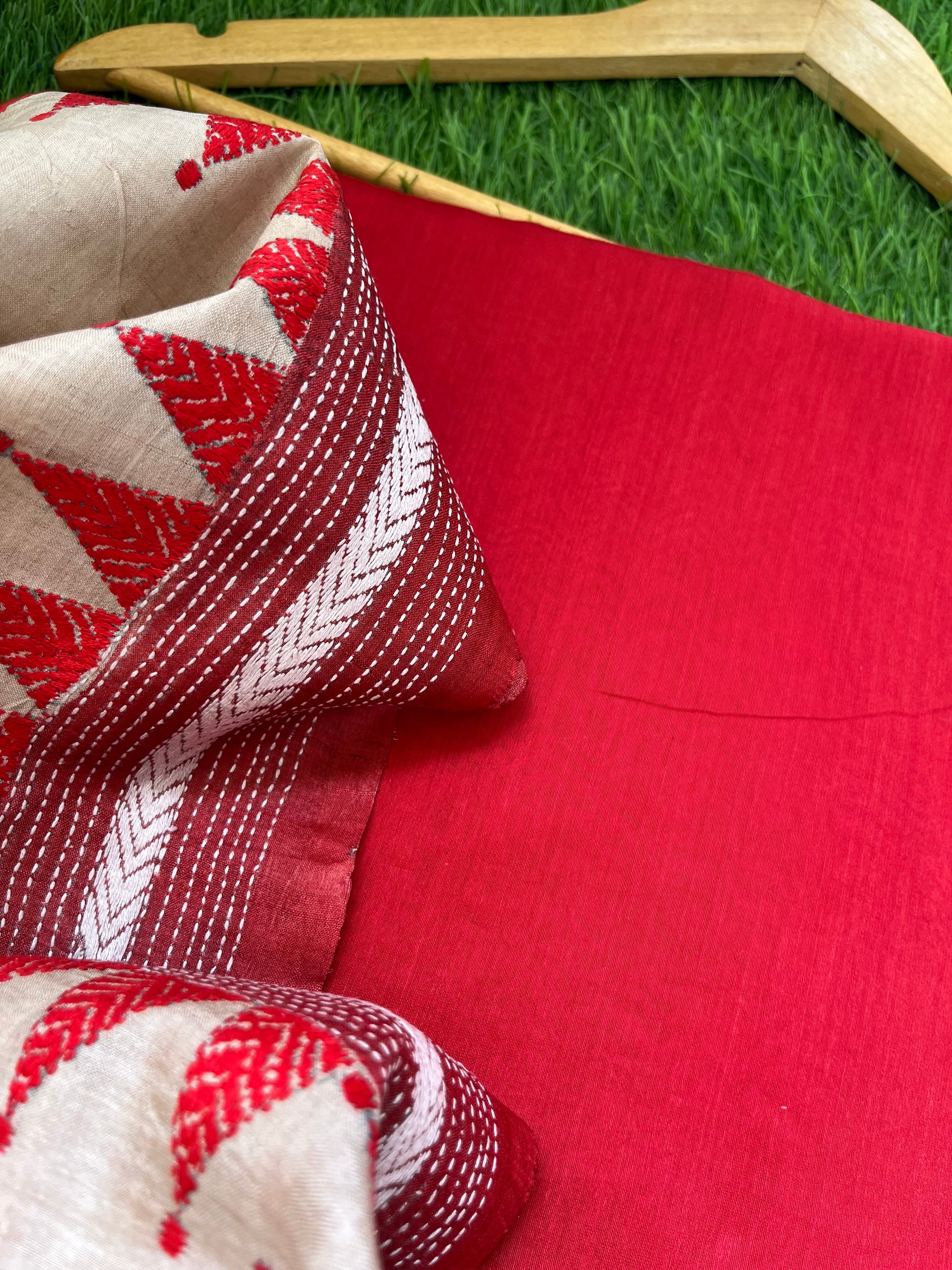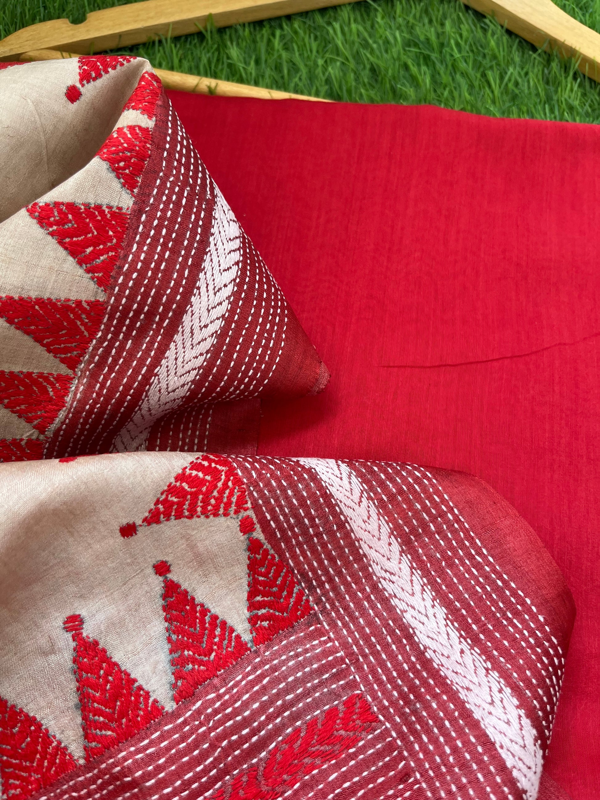 Delicate hand-stitched Kantha embroidery — every motif narrates a story, every stitch a reflection of tradition. Soft, detailed, and full of character, Kantha brings a soulful touch to your ensemble.