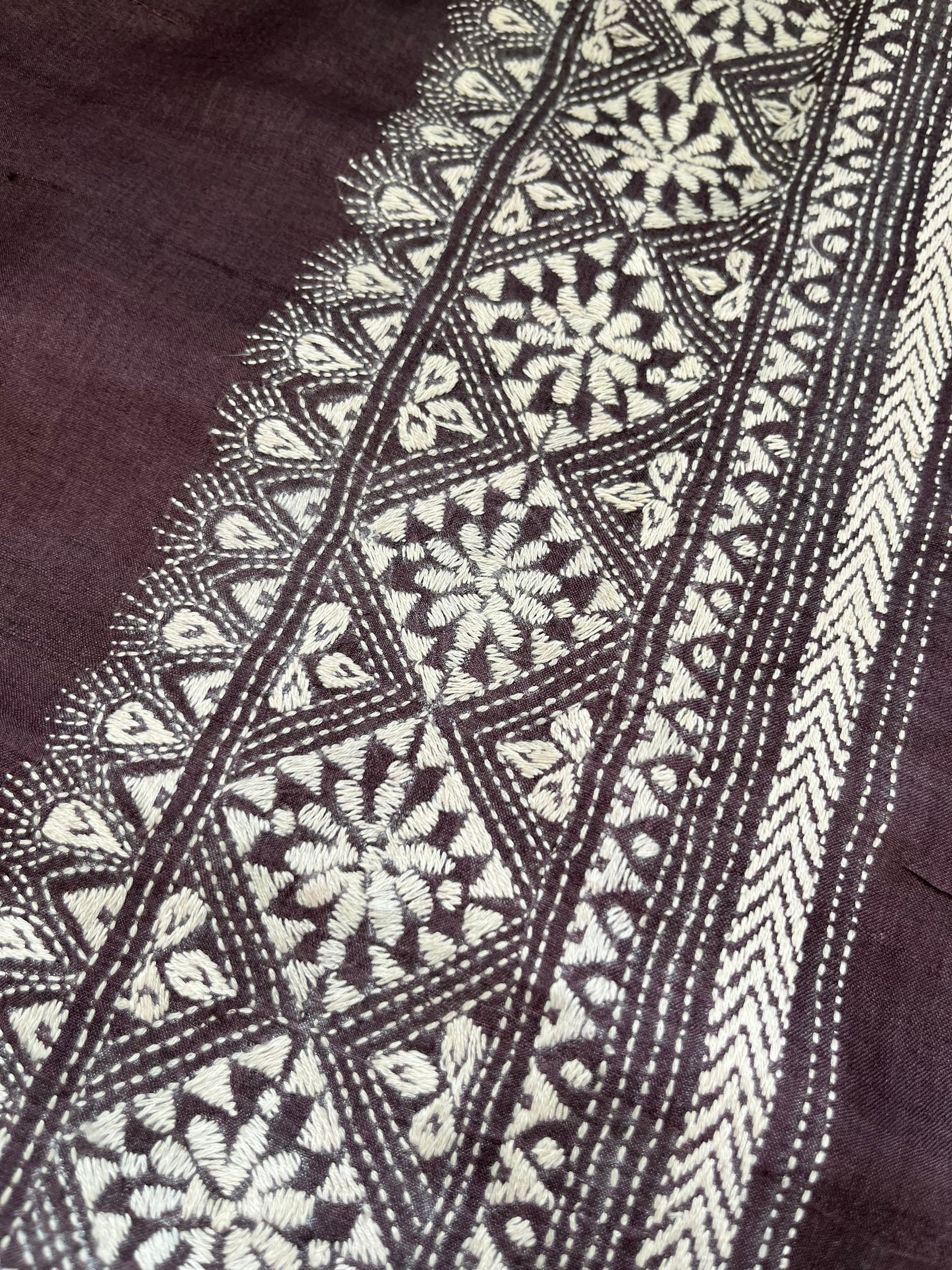 Delicate hand-stitched Kantha embroidery — every motif narrates a story, every stitch a reflection of tradition. Soft, detailed, and full of character, Kantha brings a soulful touch to your ensemble.
