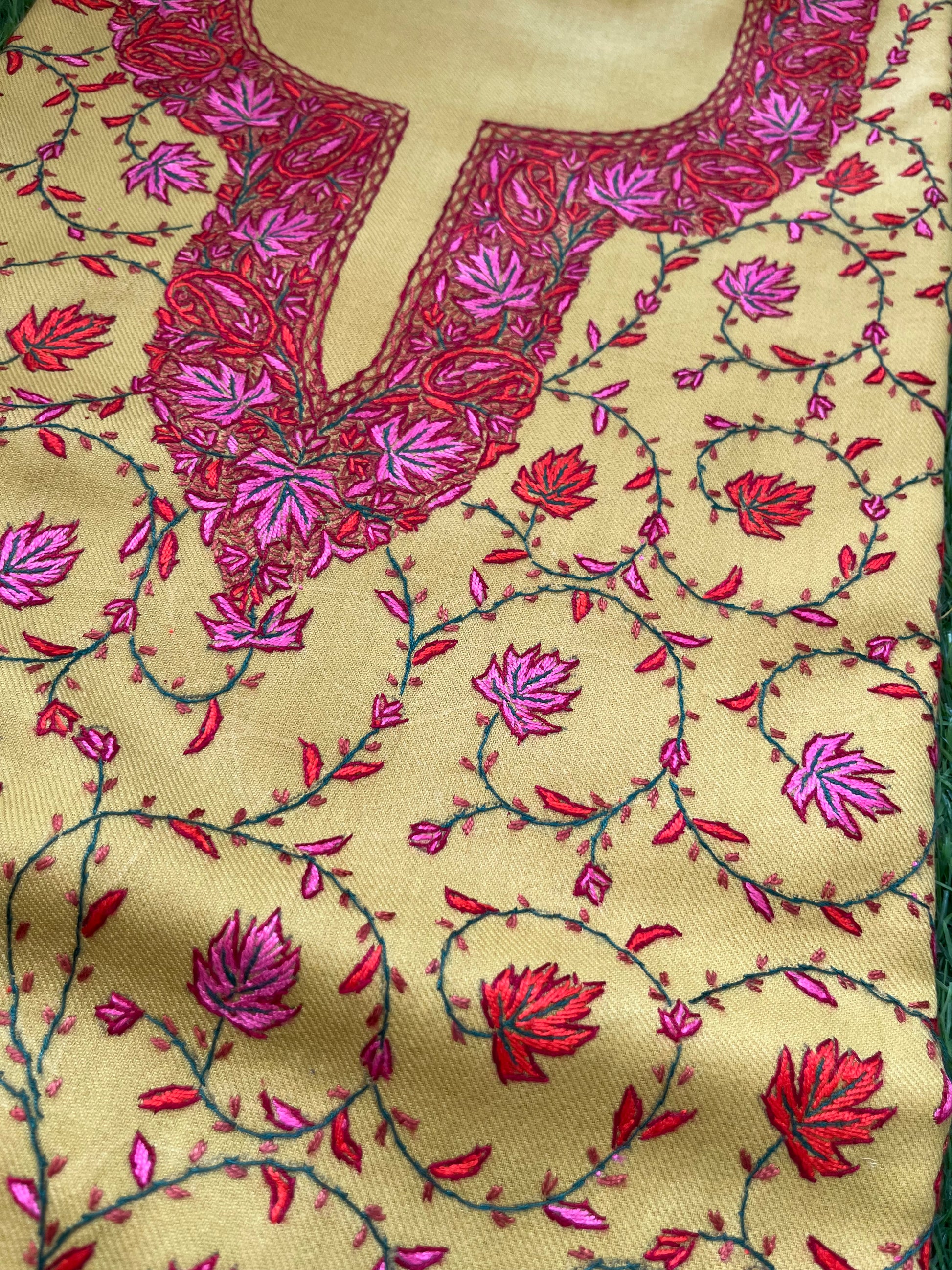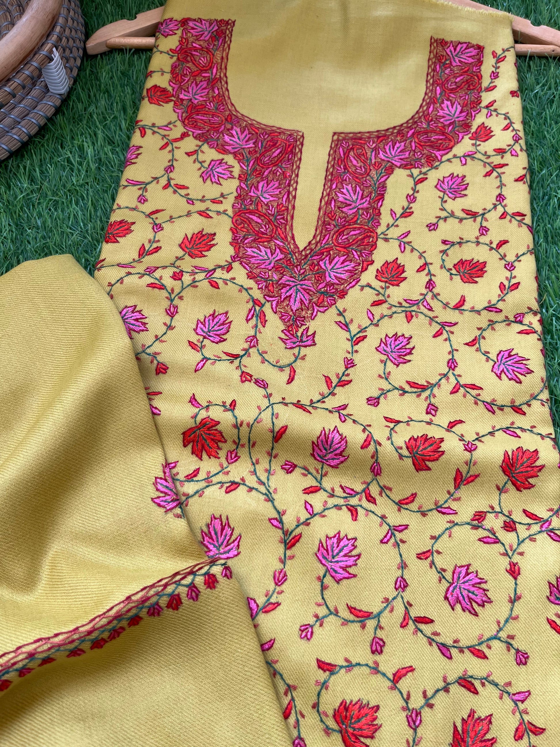 Woollen hand embroidered kurta bottom fabric and a stole set