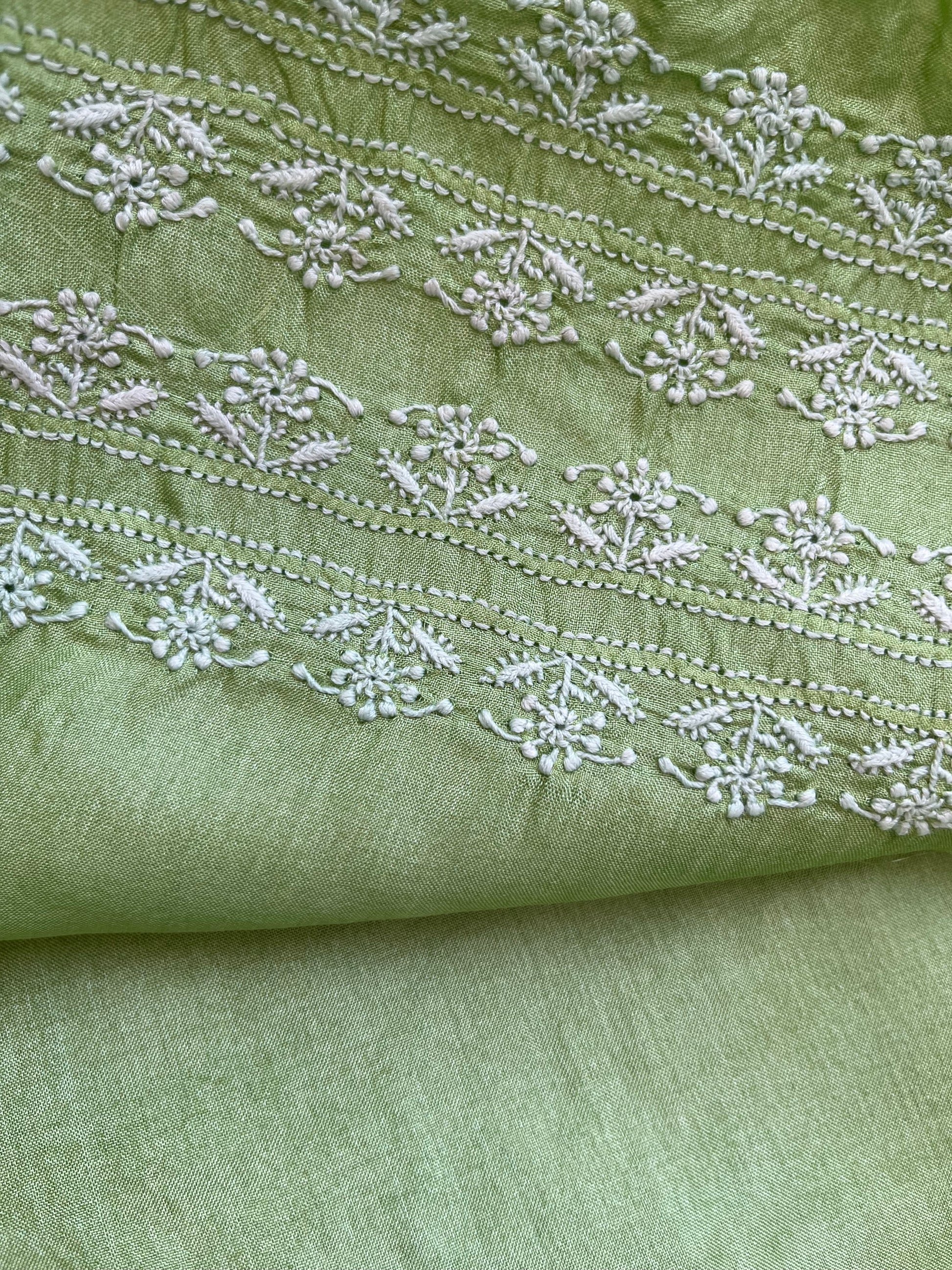 Tussar silk chikankari kurta dupatta. Kurta has a front panel back has a motif