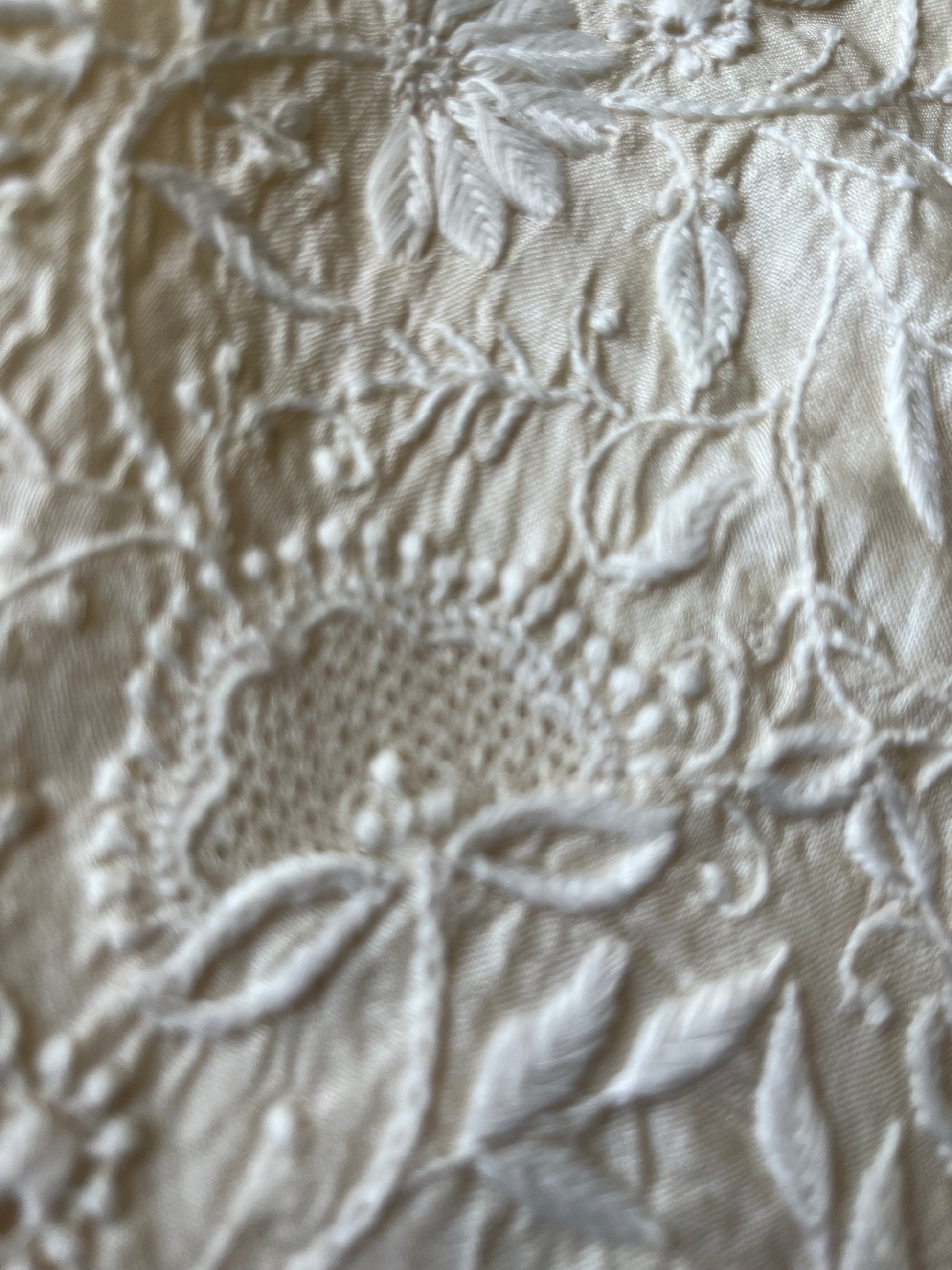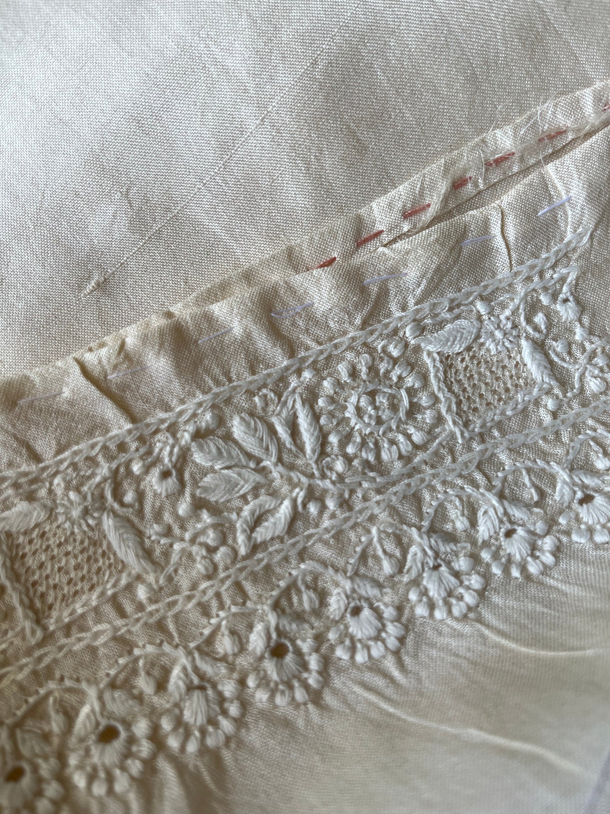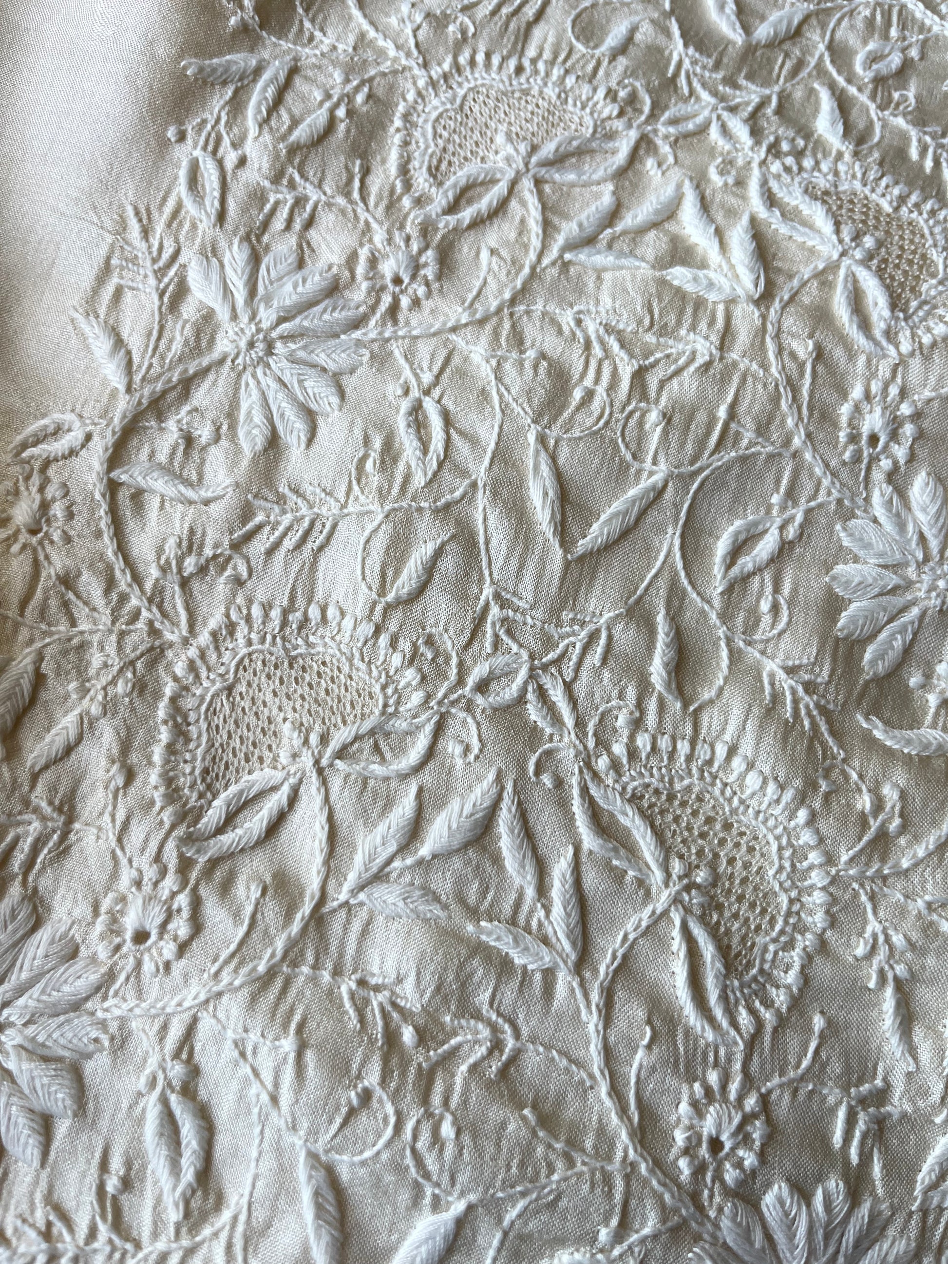 Tussar silk chikankari kurta dupatta. Kurta has no neckline but a panel in front back has a motif