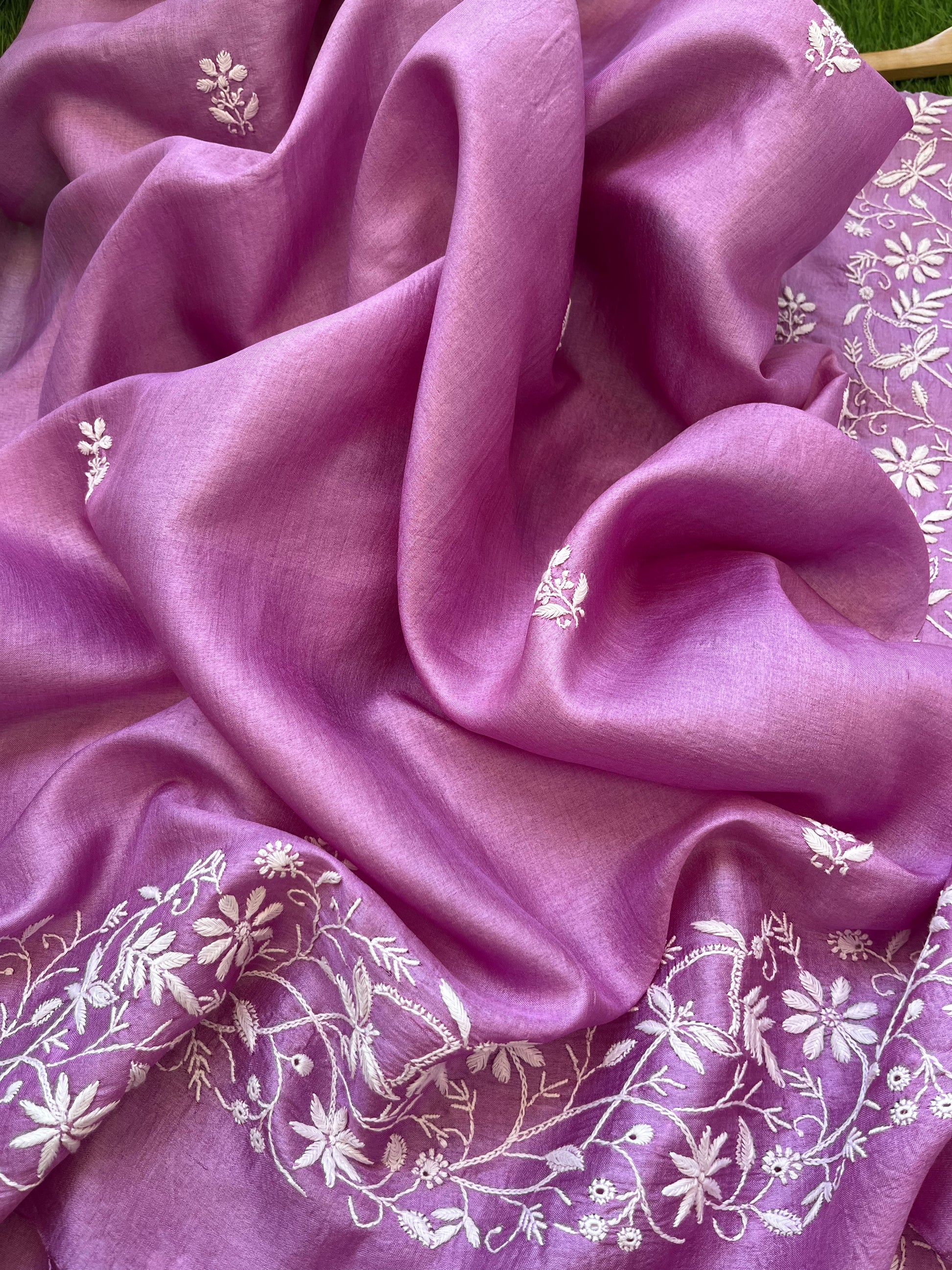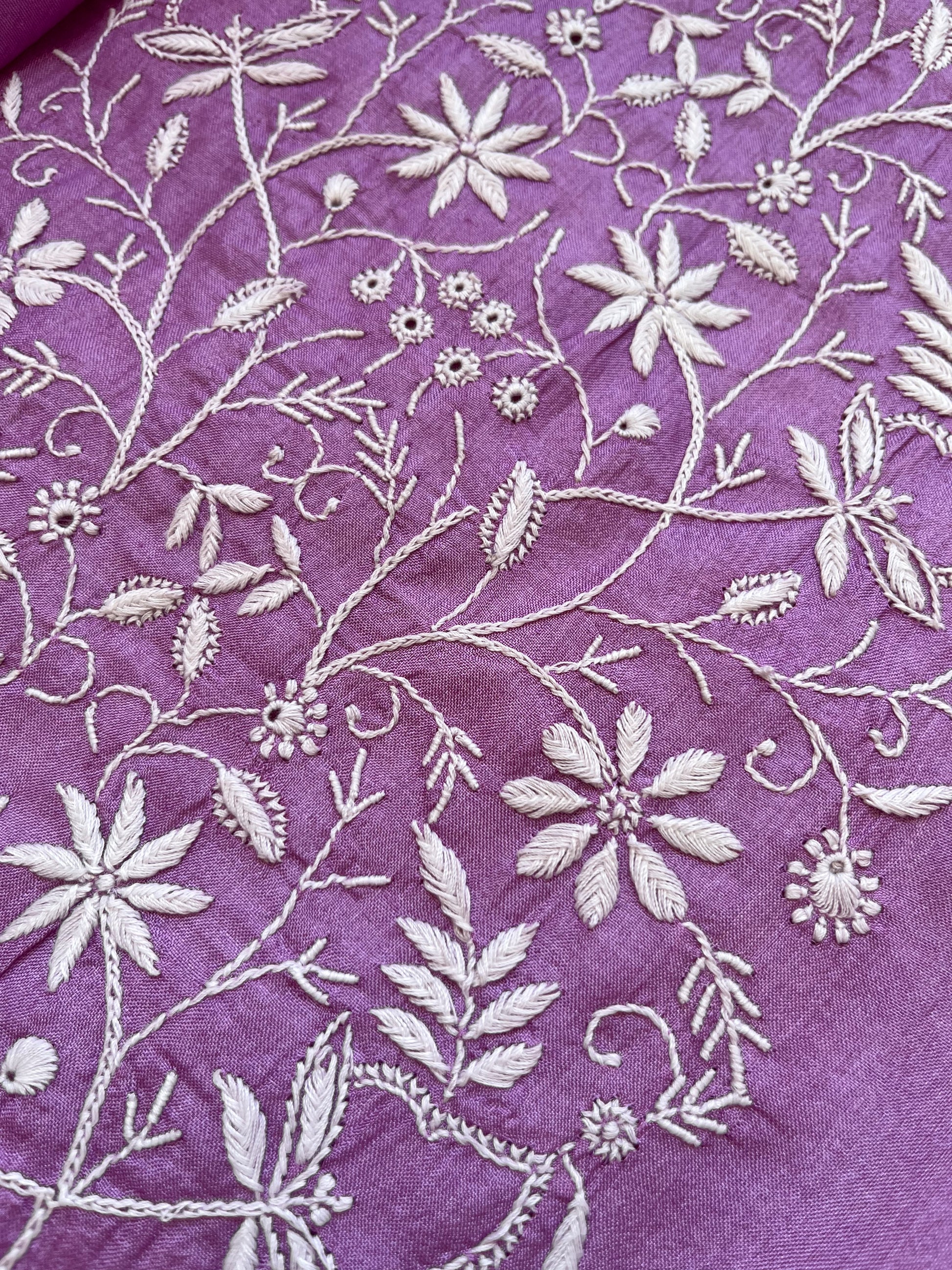 Tussar silk chikankari kurta dupatta. Kurta has no neckline but a panel in front back has a motif