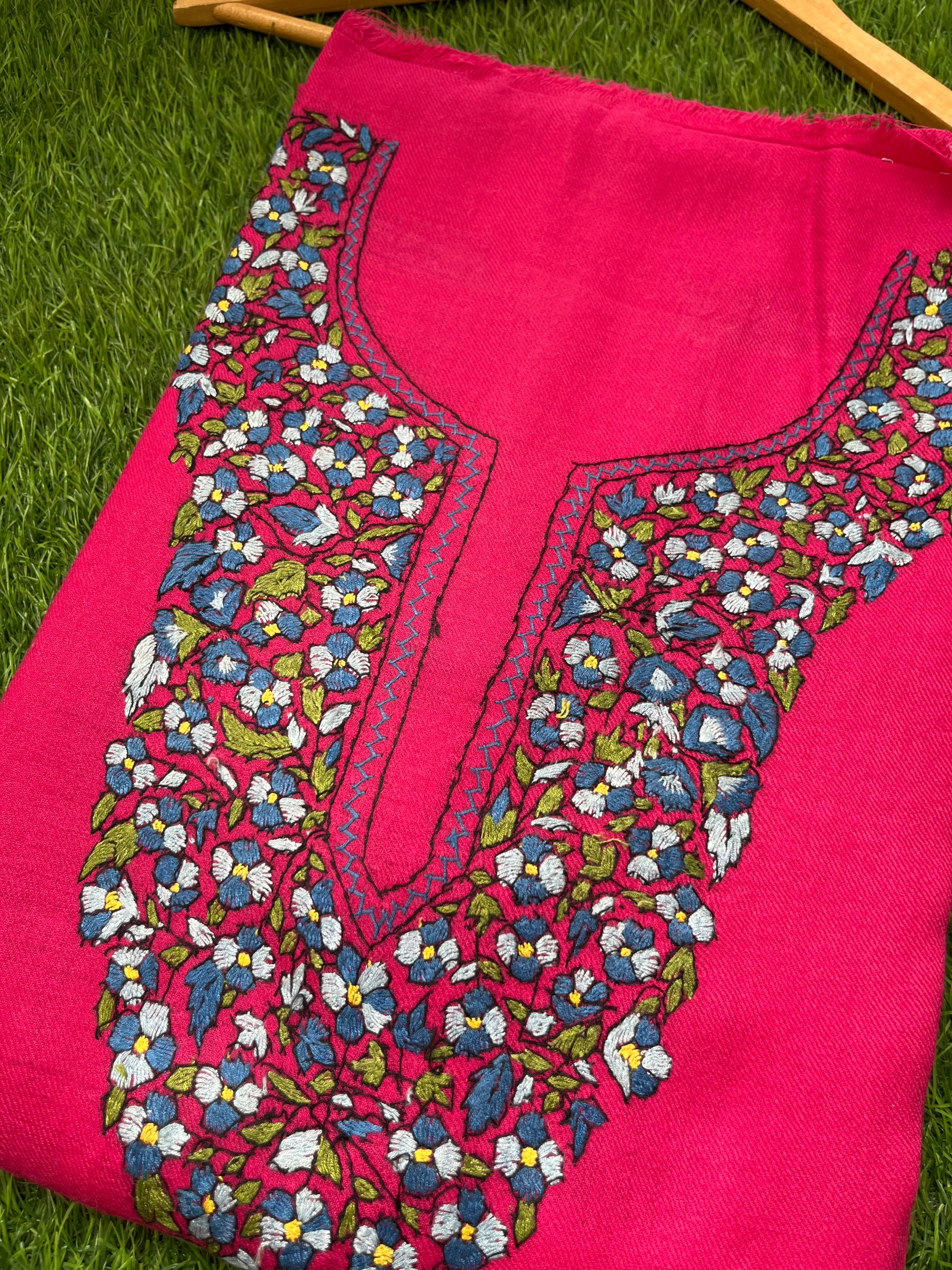 Woollen hand embroidered kurta bottom fabric and a stole set