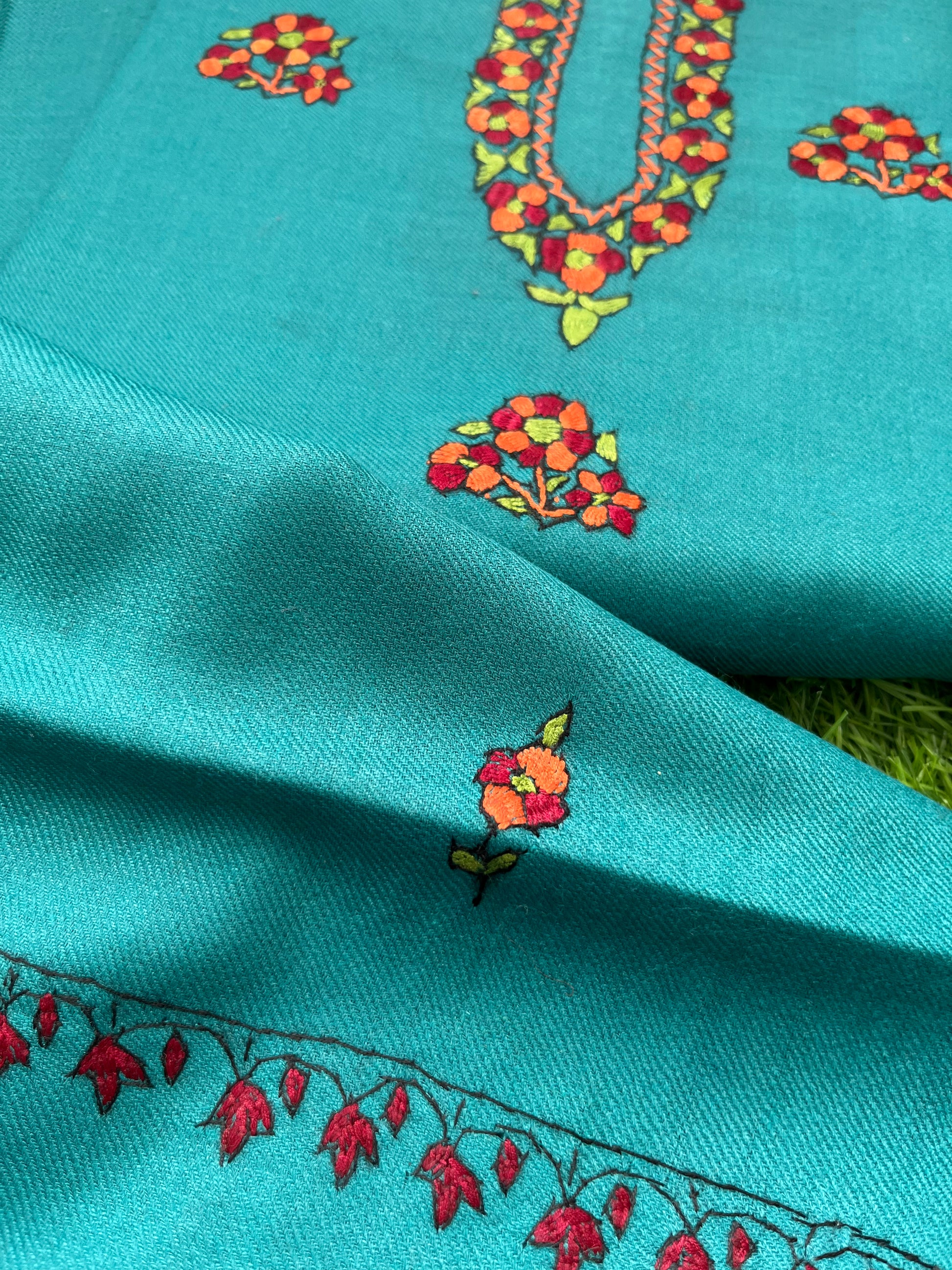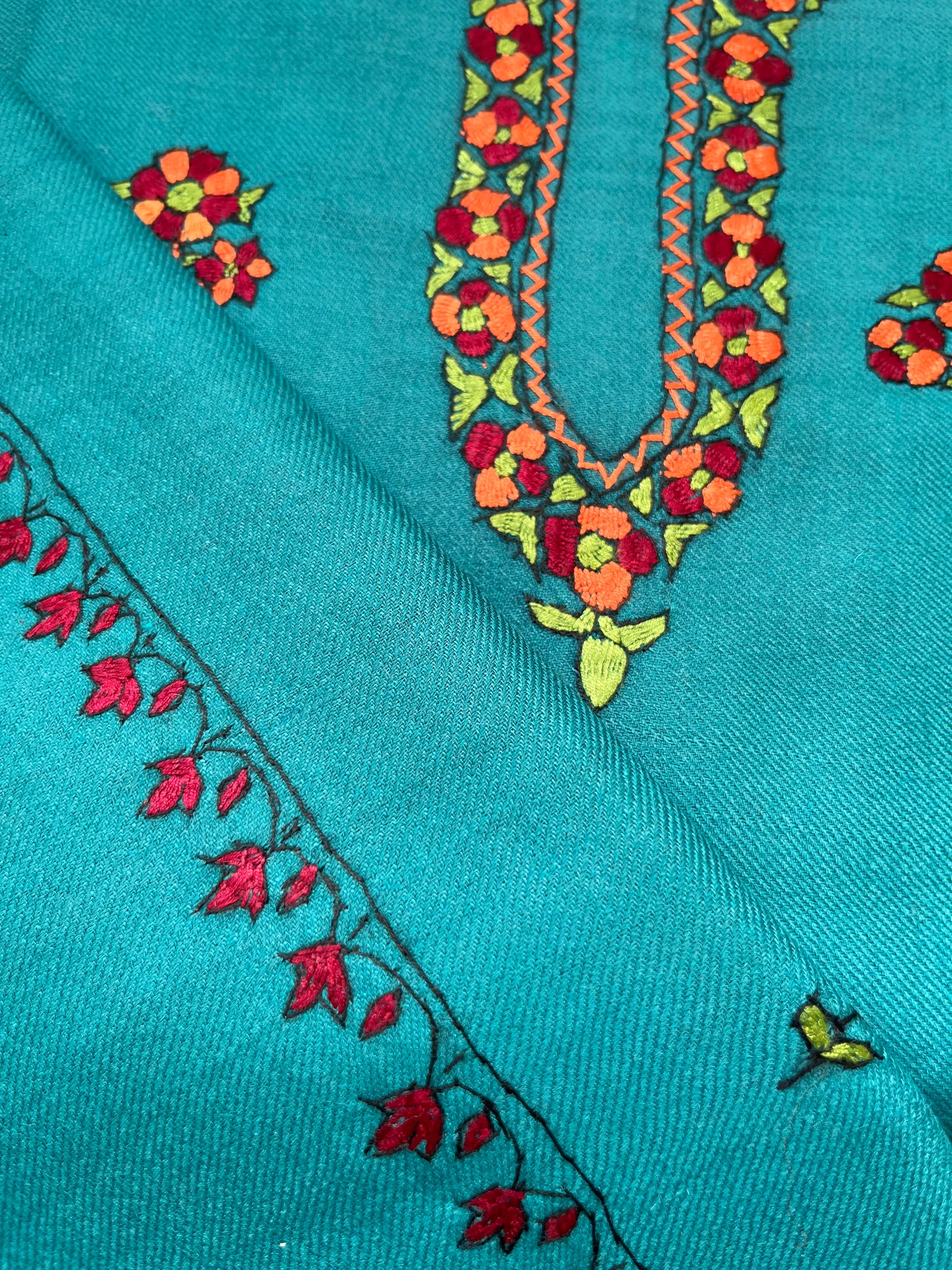 Woollen hand embroidered kurta bottom fabric and a stole set