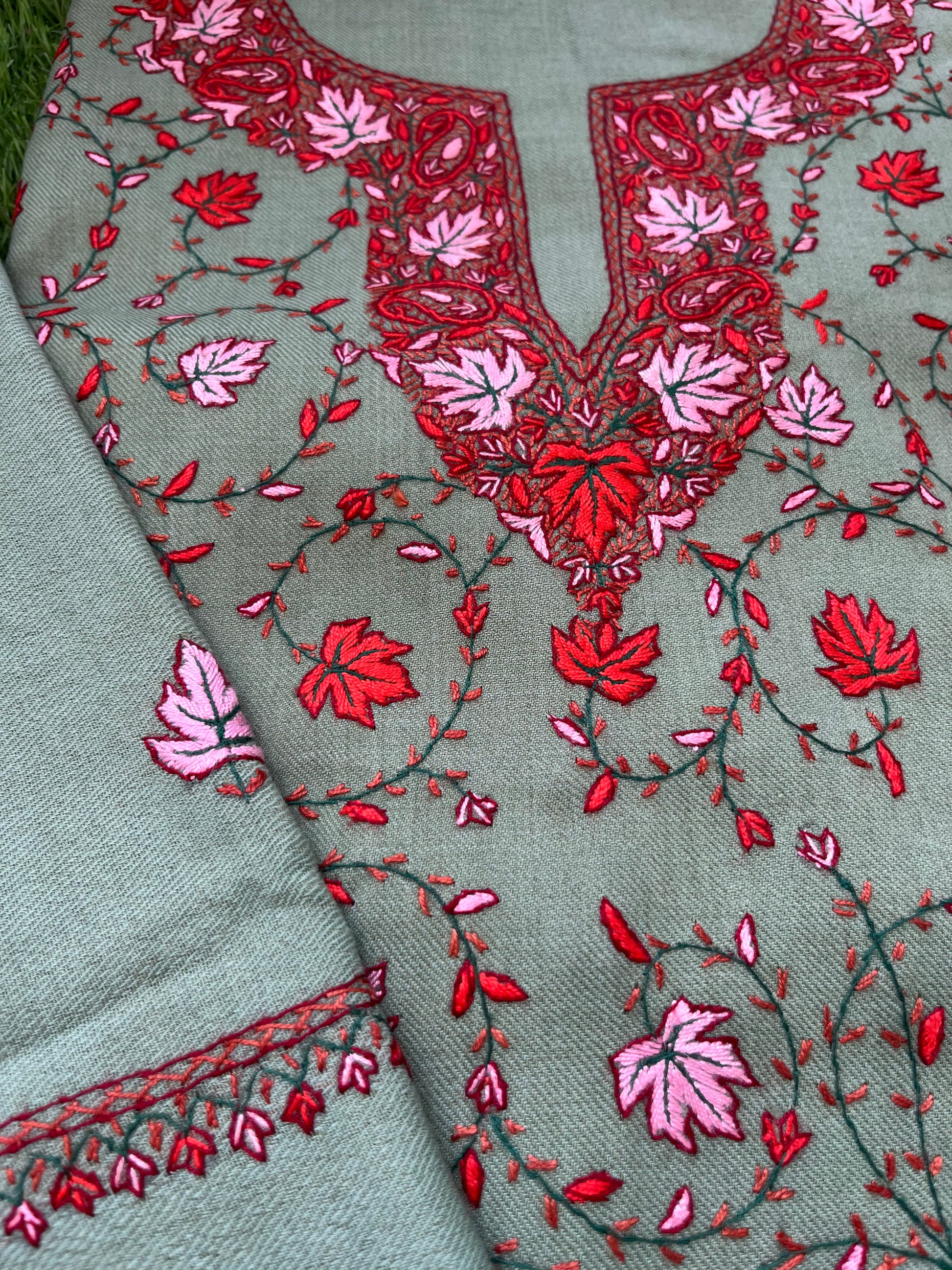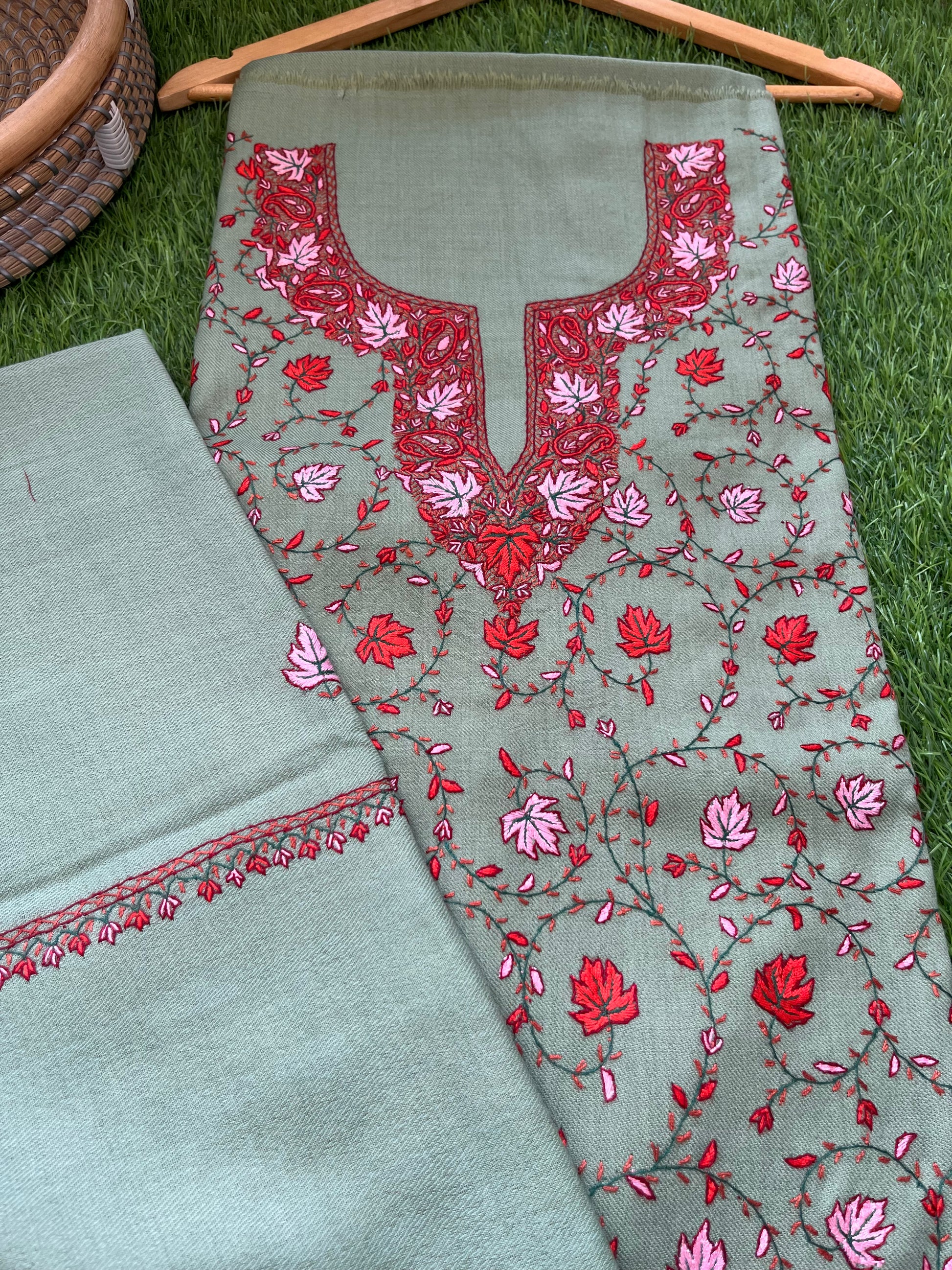Woollen hand embroidered kurta bottom fabric and a stole set