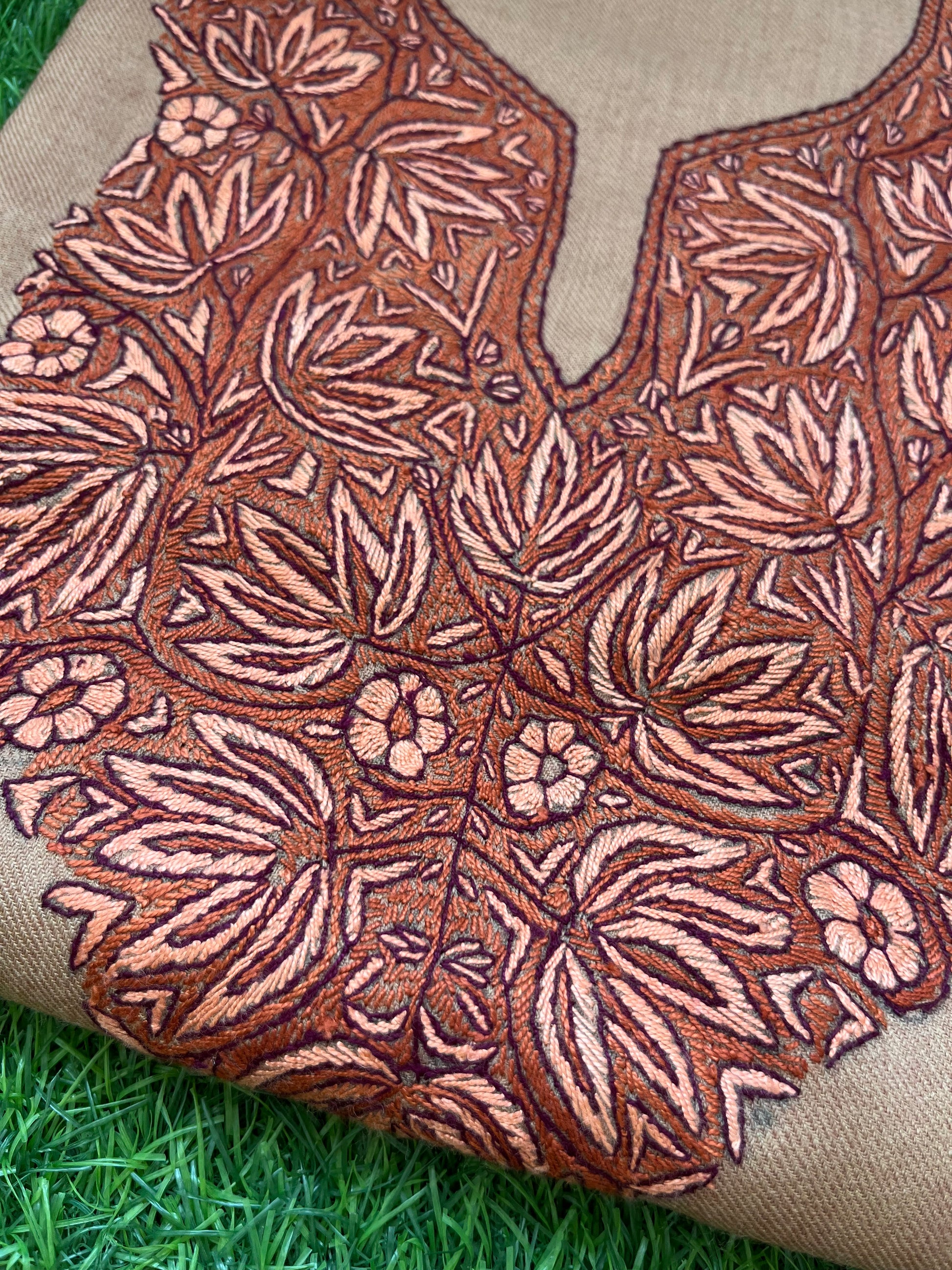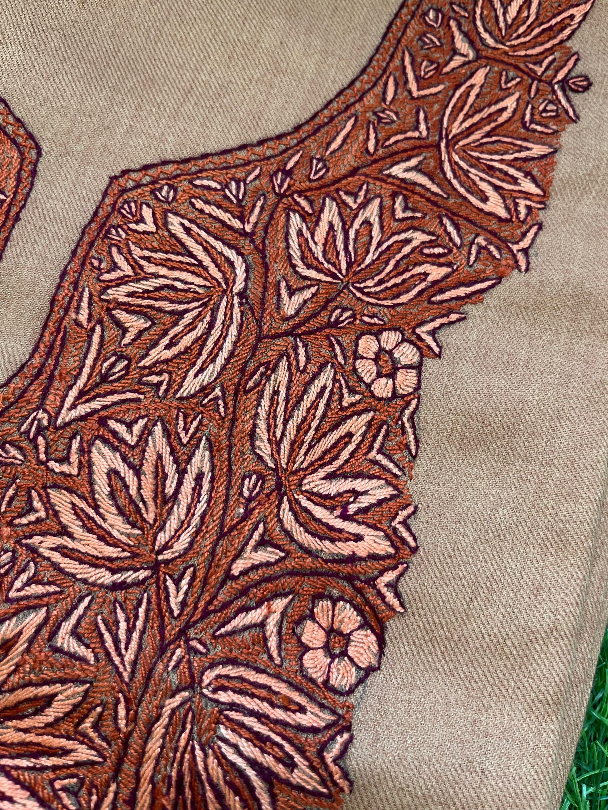 Woollen hand embroidered kurta bottom fabric and a stole set